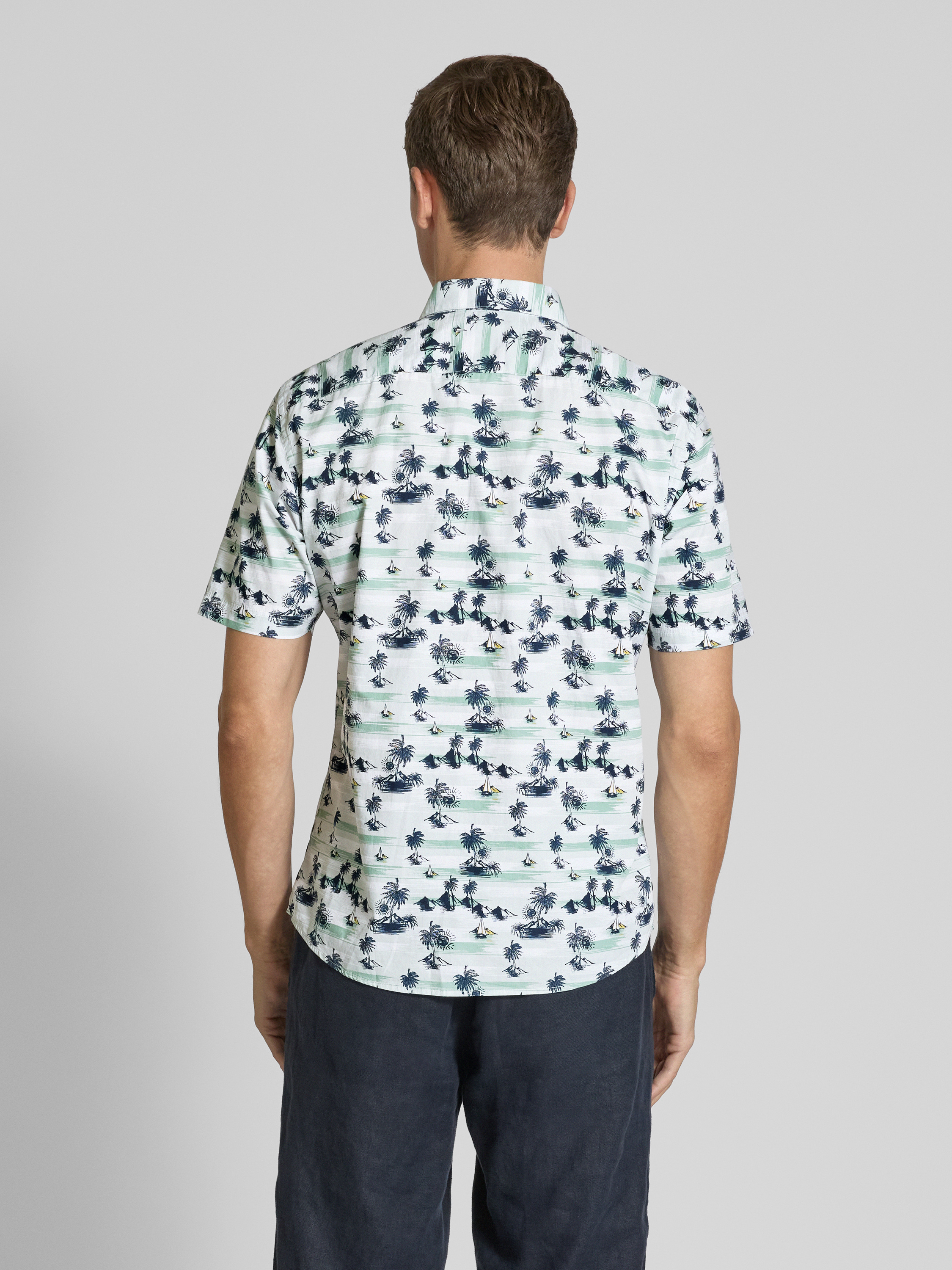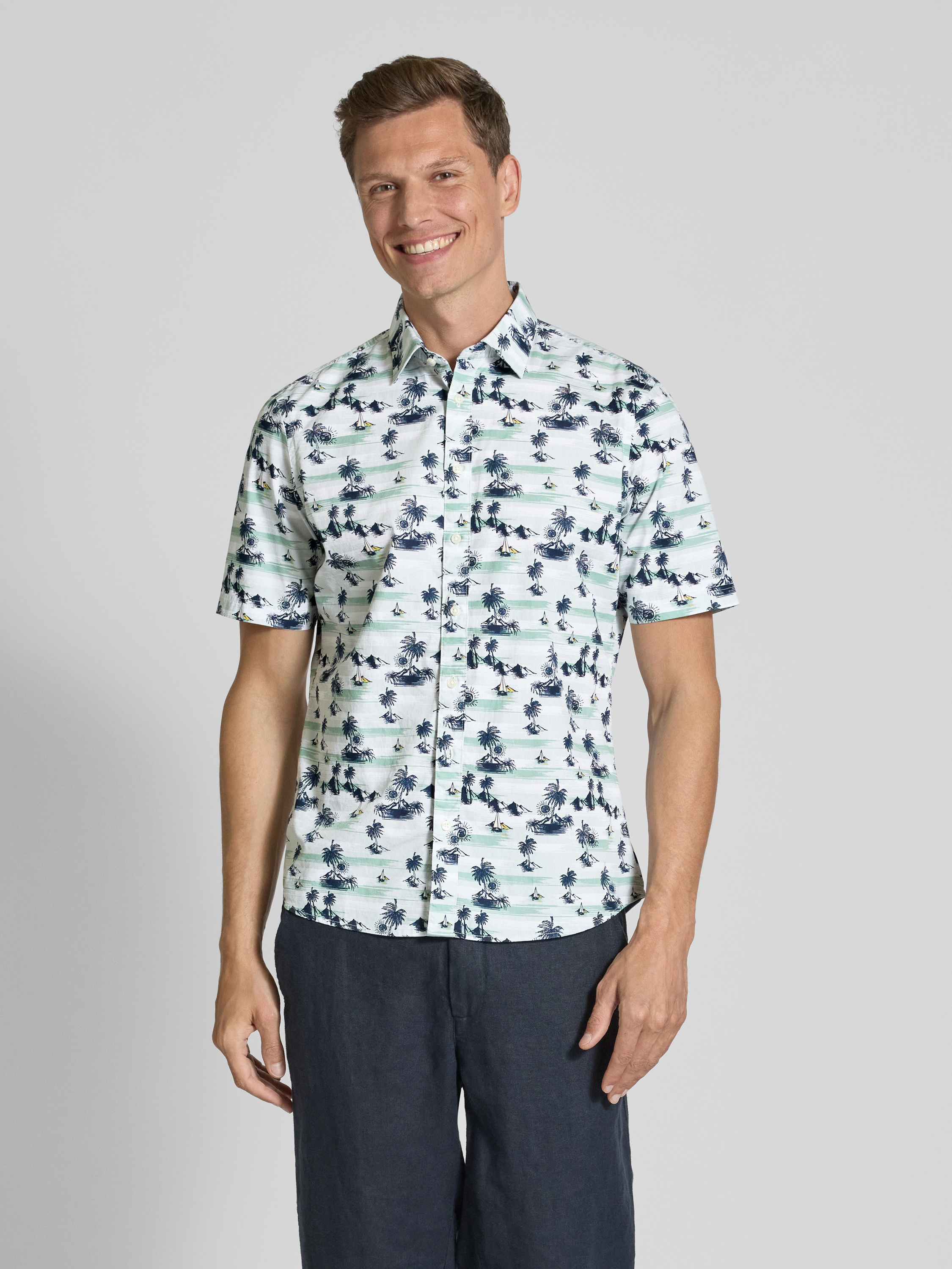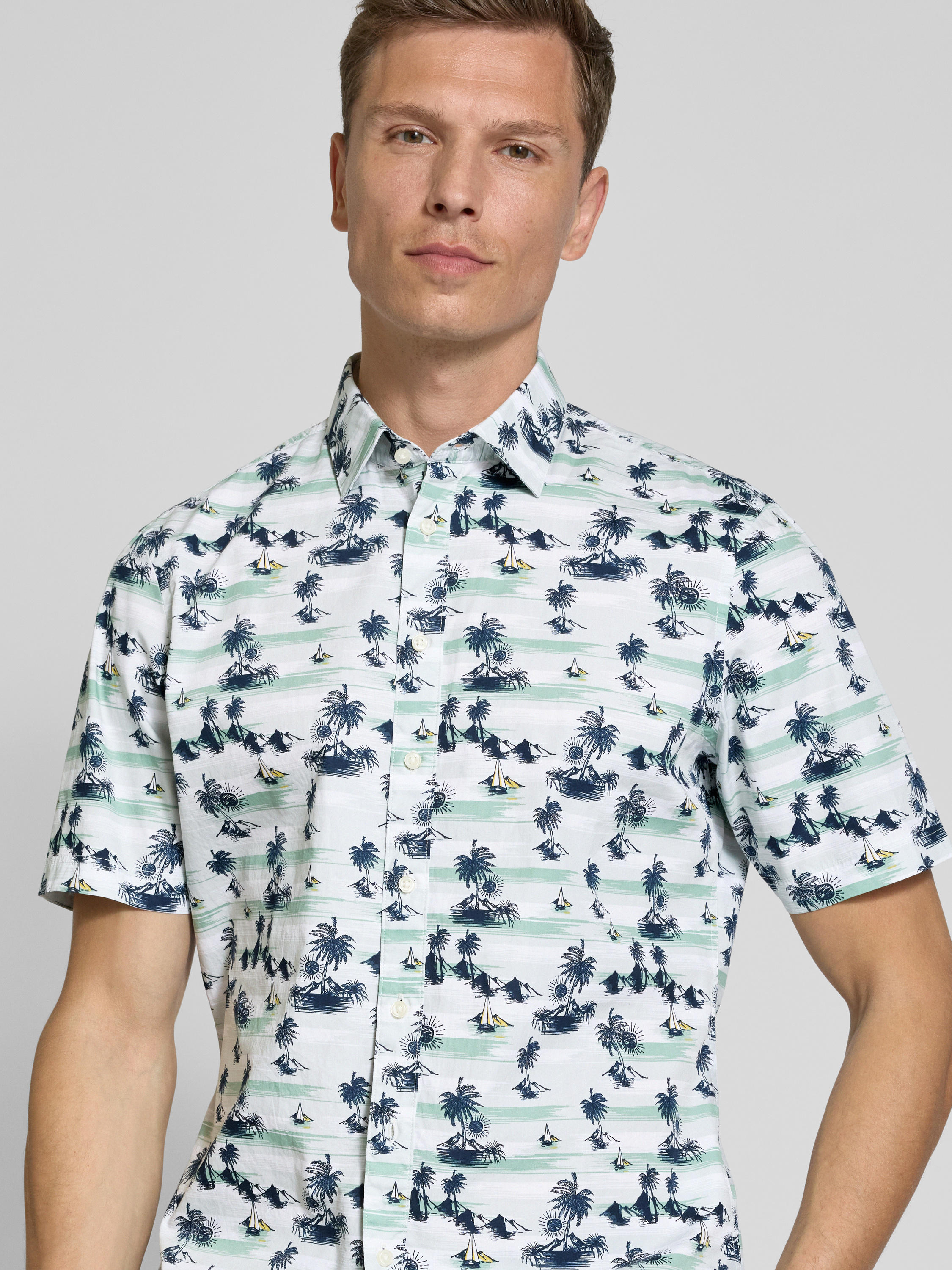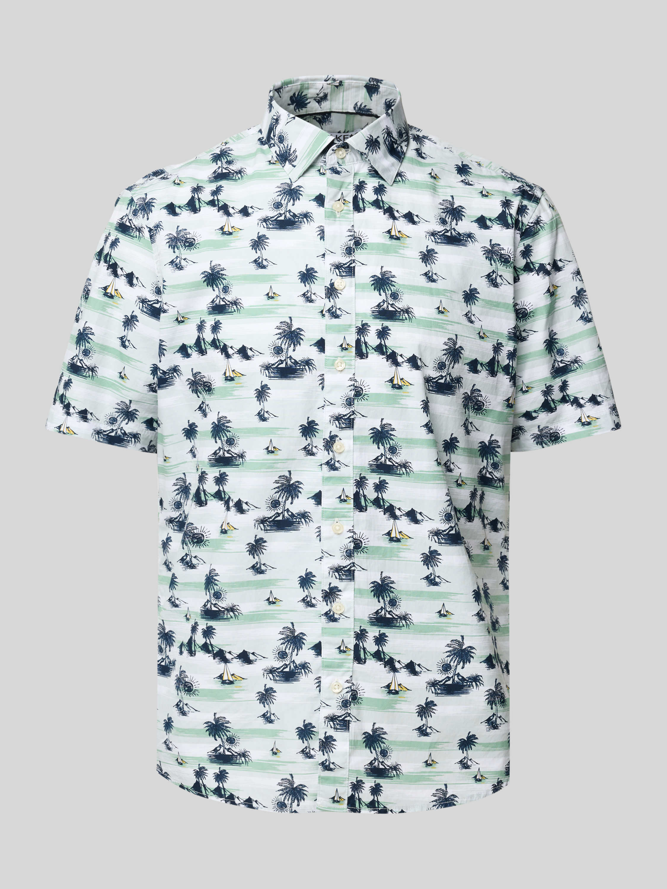 Das Slim Fit Kurzarmhemd von Jake*s, gefertigt aus reiner Baumwolle, vereint Komfort und Stil in einem eleganten Design. Der Kentkragen und die schmal geschnittene Passform machen es zu einer ausgezeichneten Wahl für lässige und formelle Anlässe. Dank der kurzen Ärmel bietet es angenehme Bewegungsfreiheit an warmen Tagen.