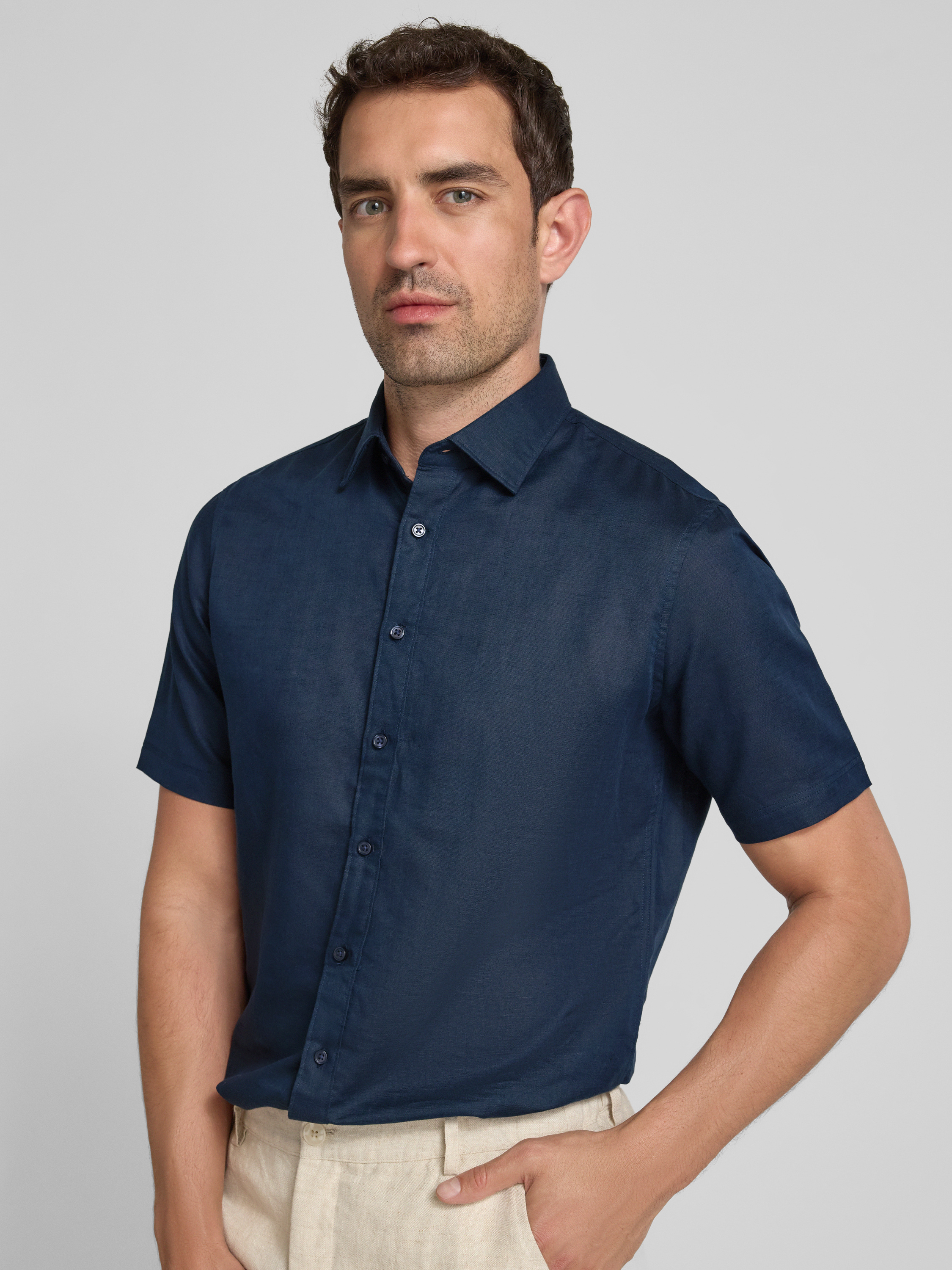 Jake*sSlim Fit Leinenhemd mit Knopfleiste in marine