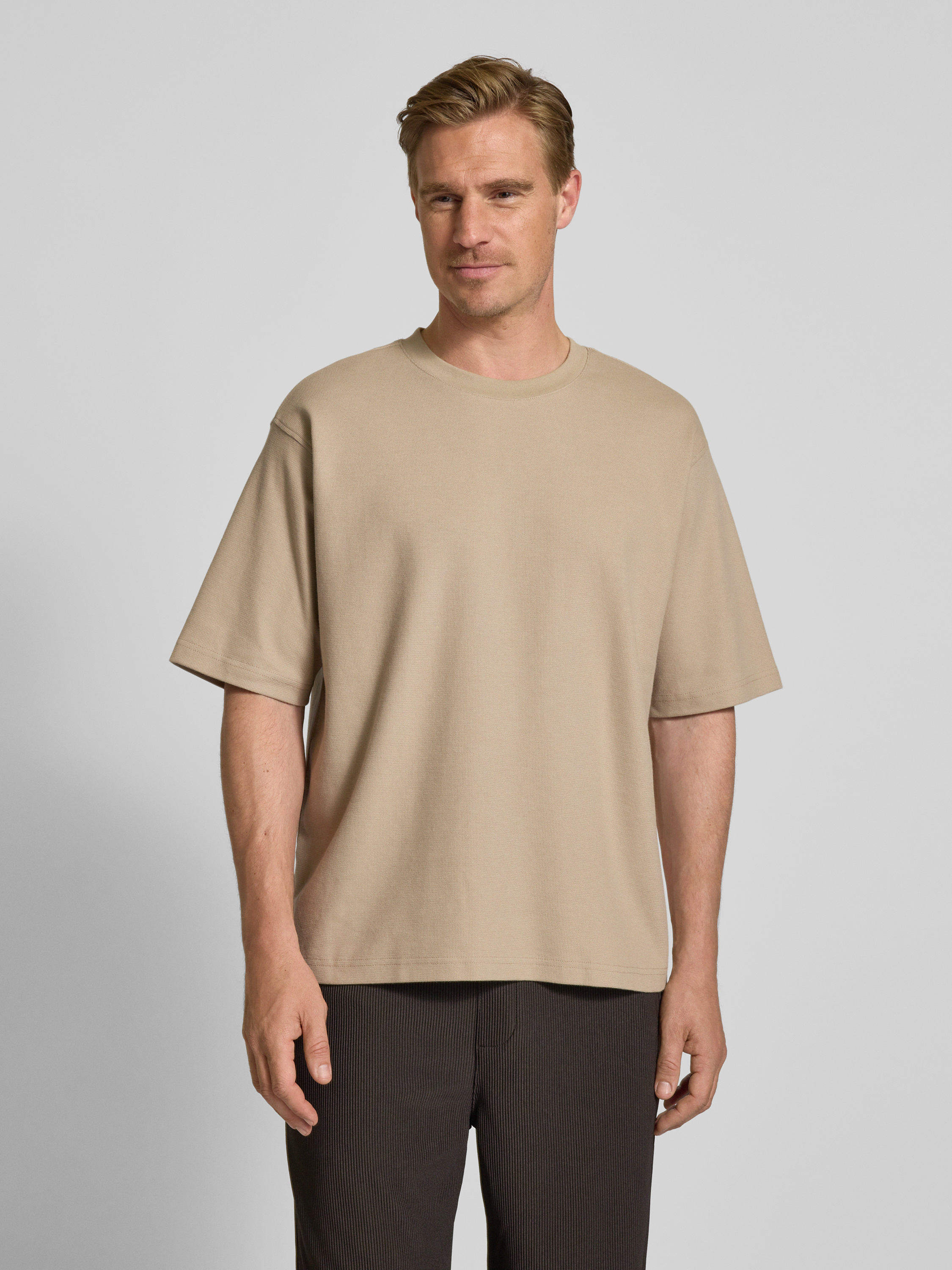 JAKE*S STUDIO MENRelaxed Fit T-Shirt mit Rundhalsausschnitt in beige