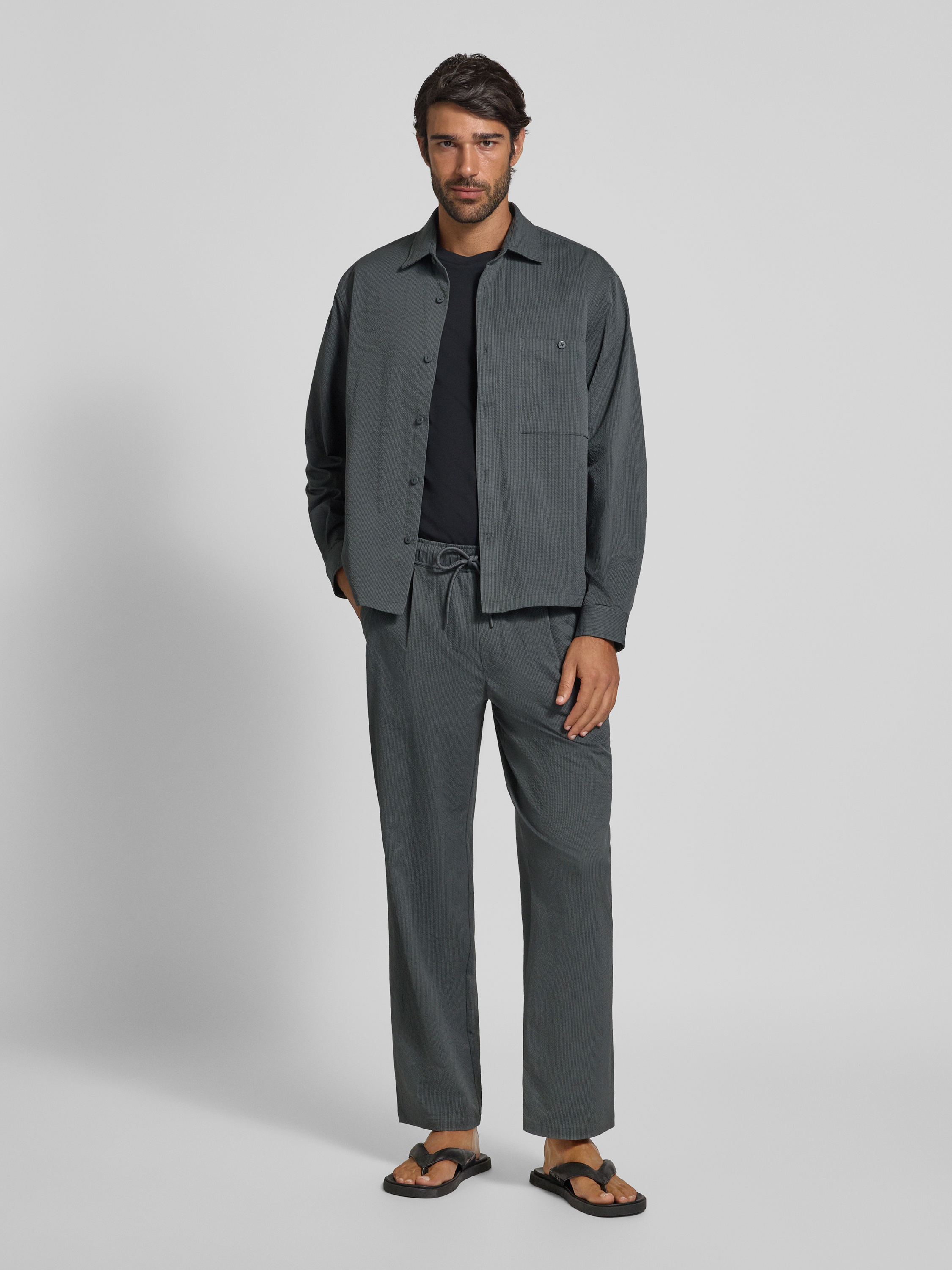 Die Herrenhose von JAKE*S STUDIO MEN fällt durch ihren entspannten Schnitt auf, der Bewegungsfreiheit im Alltag schafft. Mit elastischem Bund und Tunnelzug passt sie sich individuell an, während französische Eingrifftaschen praktische Details bieten. Dank dezenter Gesäßtaschen bleibt der Look angenehm zurückhaltend.