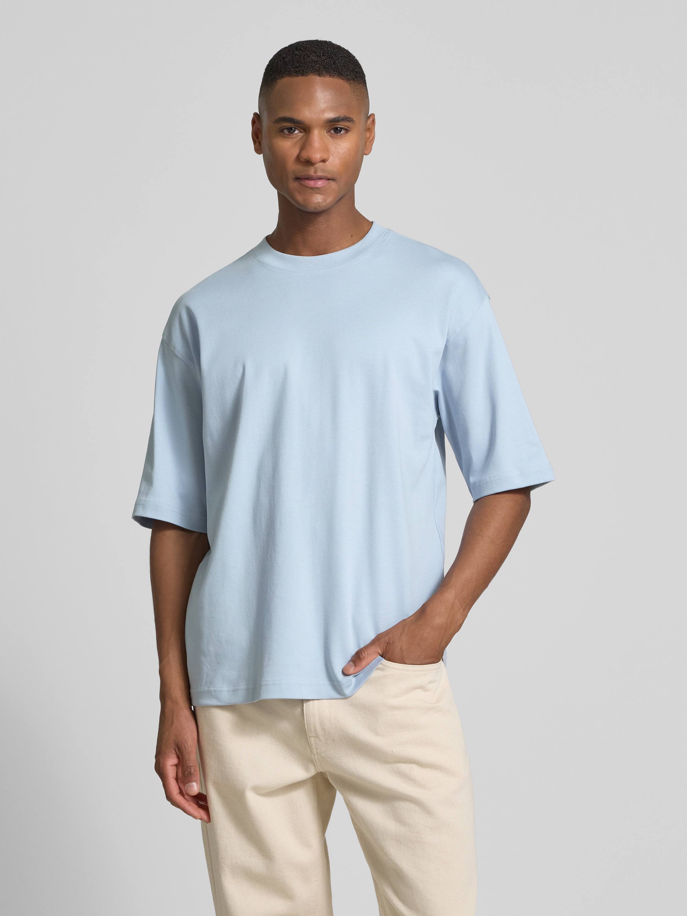 JAKE*S STUDIO MENT-Shirt aus Bio-Baumwolle mit geripptem Rundhalsausschnitt in eisblau