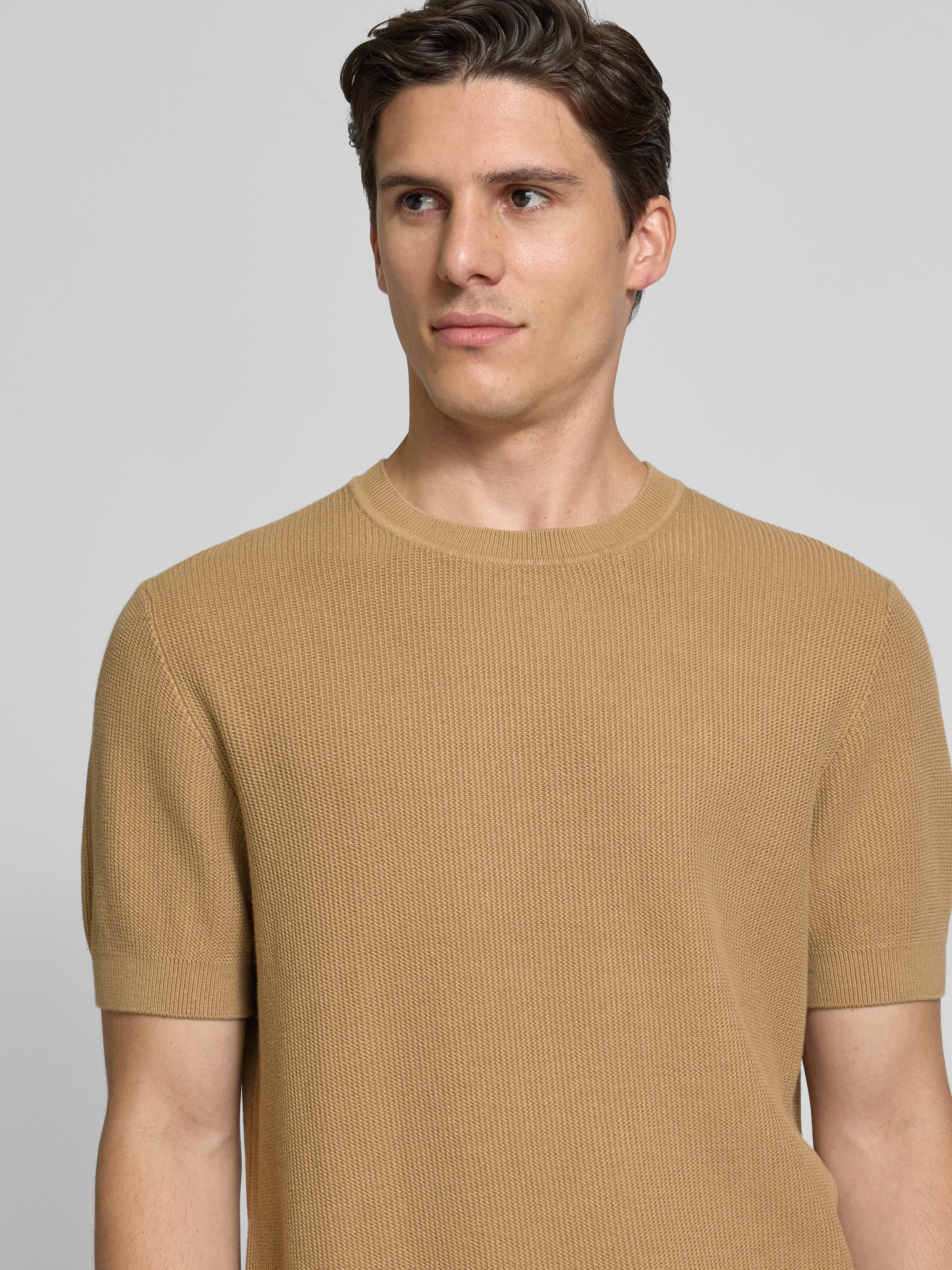 JAKE*S STUDIO MENT-Shirt mit gerippten Abschlüssen in camel
