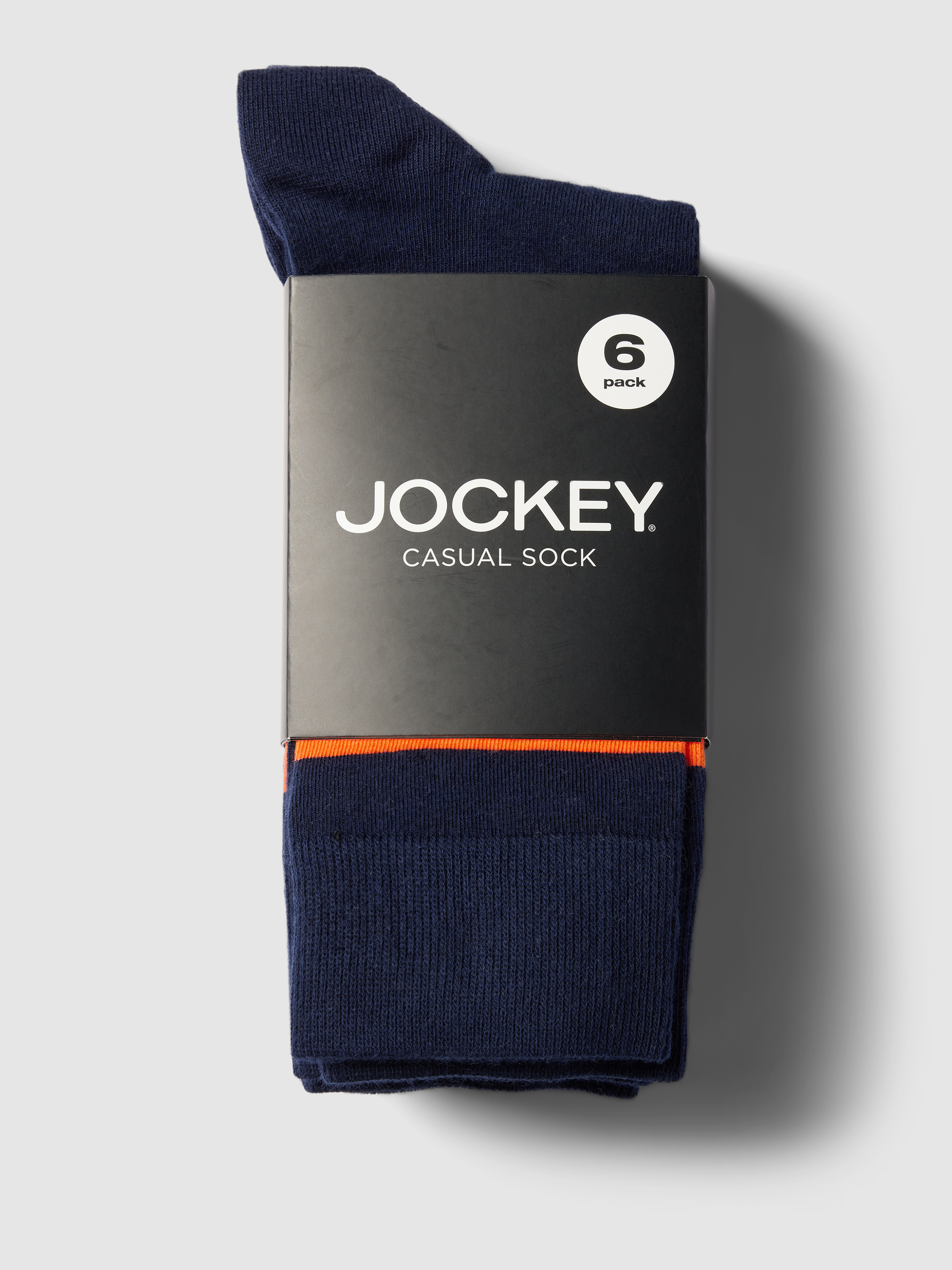 Der 6er-Pack Socken von Jockey bietet dank des Baumwoll-Mix mit Stretch-Anteil angenehmen Tragekomfort und Flexibilität im Alltag. Die unifarbenen Designs mit dezenten Kontraststreifen setzen modische Akzente, während der gerippte Bund für einen sicheren Halt sorgt. Ideal für verschiedene Gelegenheiten.