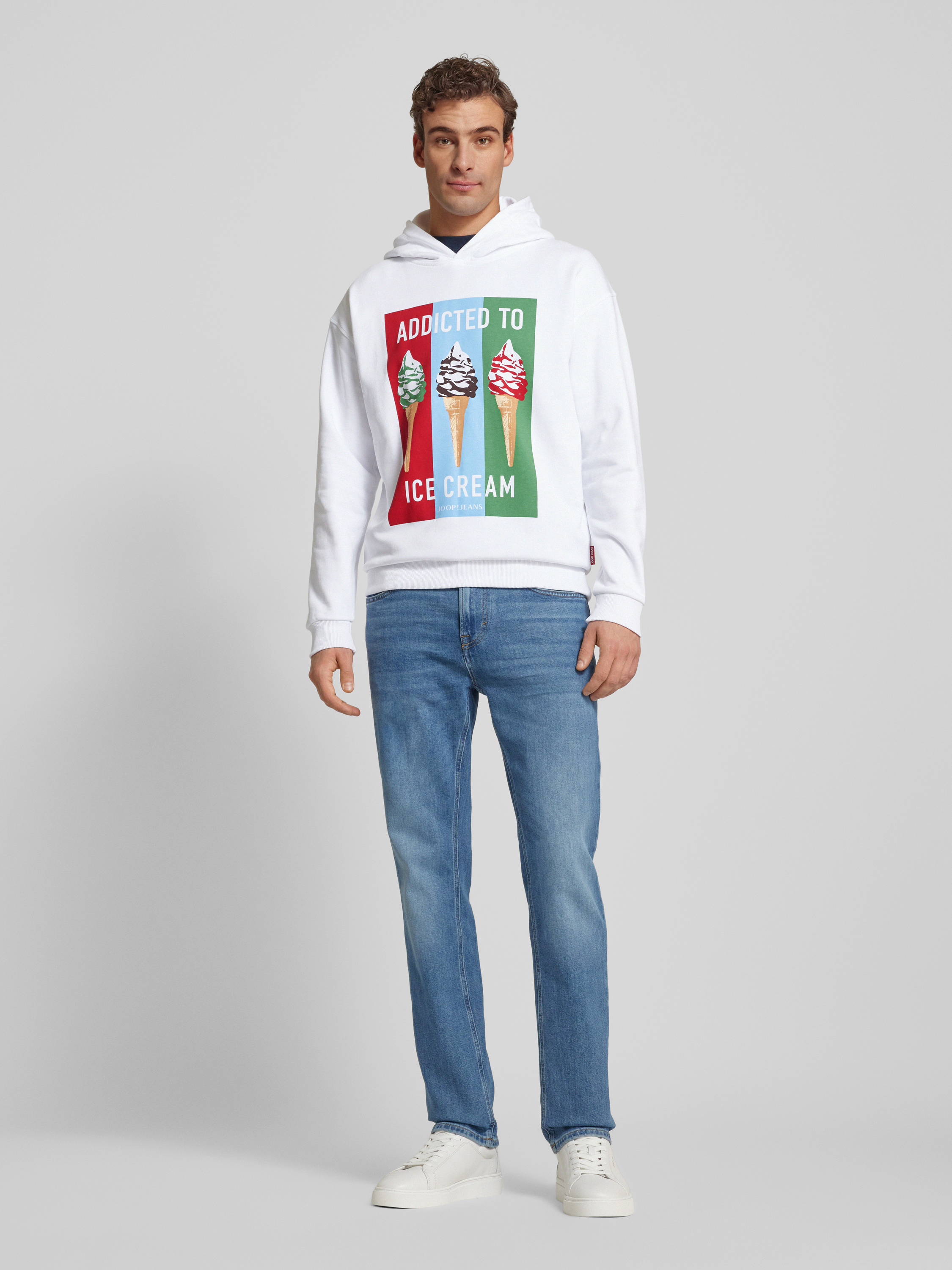 Der Hoodie 'Erol' von JOOP! Jeans kombiniert lässigen Stil mit hohem Tragekomfort. Gefertigt aus reiner Baumwolle, fühlt er sich angenehm weich auf der Haut an und eignet sich ideal für entspannte Freizeitaktivitäten. Der gerade Schnitt und die Kapuze bieten Bewegungsfreiheit und Komfort.