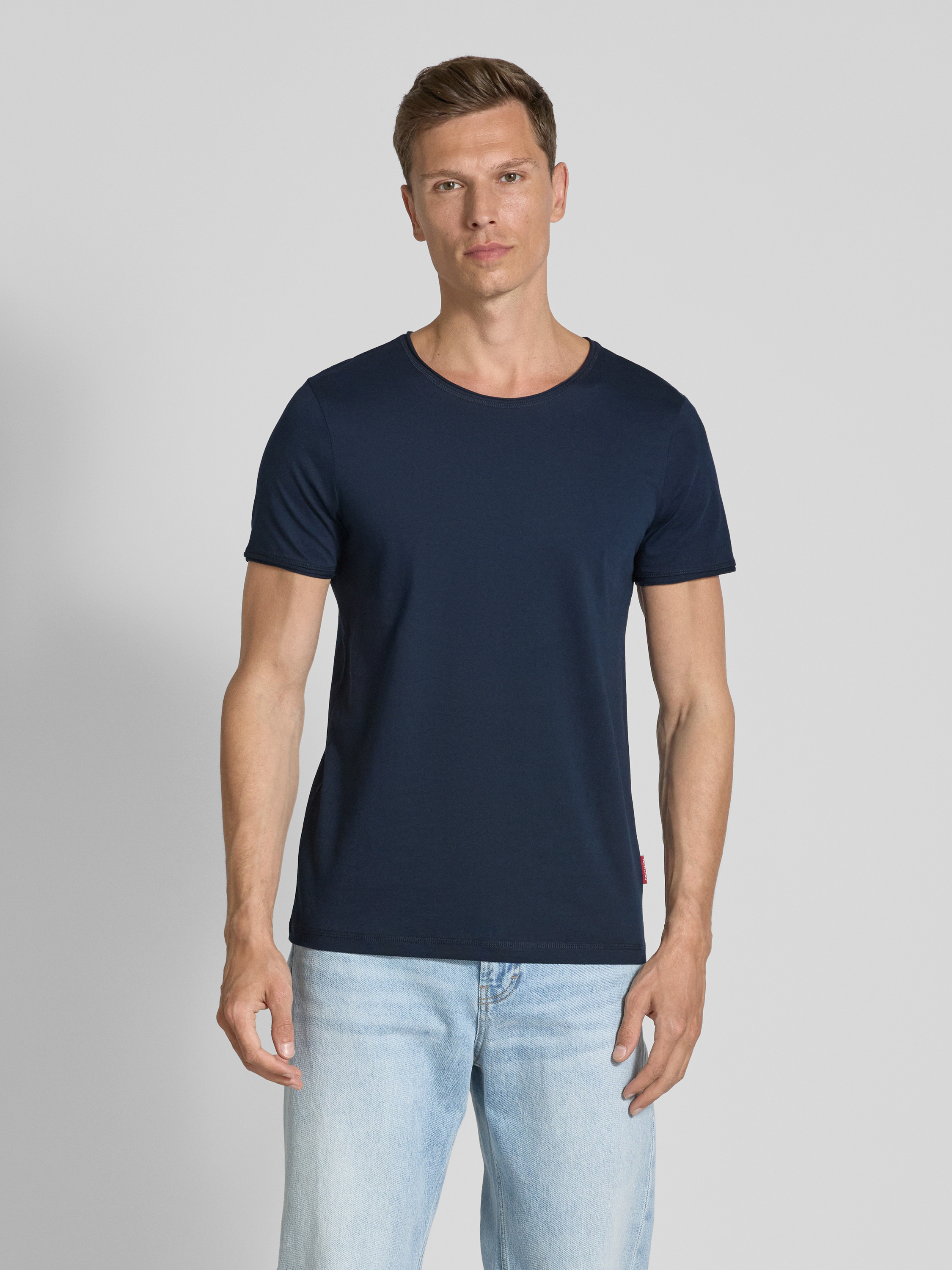 JOOP! JeansT-Shirt mit geripptem Rundhalsausschnitt Modell 'Caspian' in marine