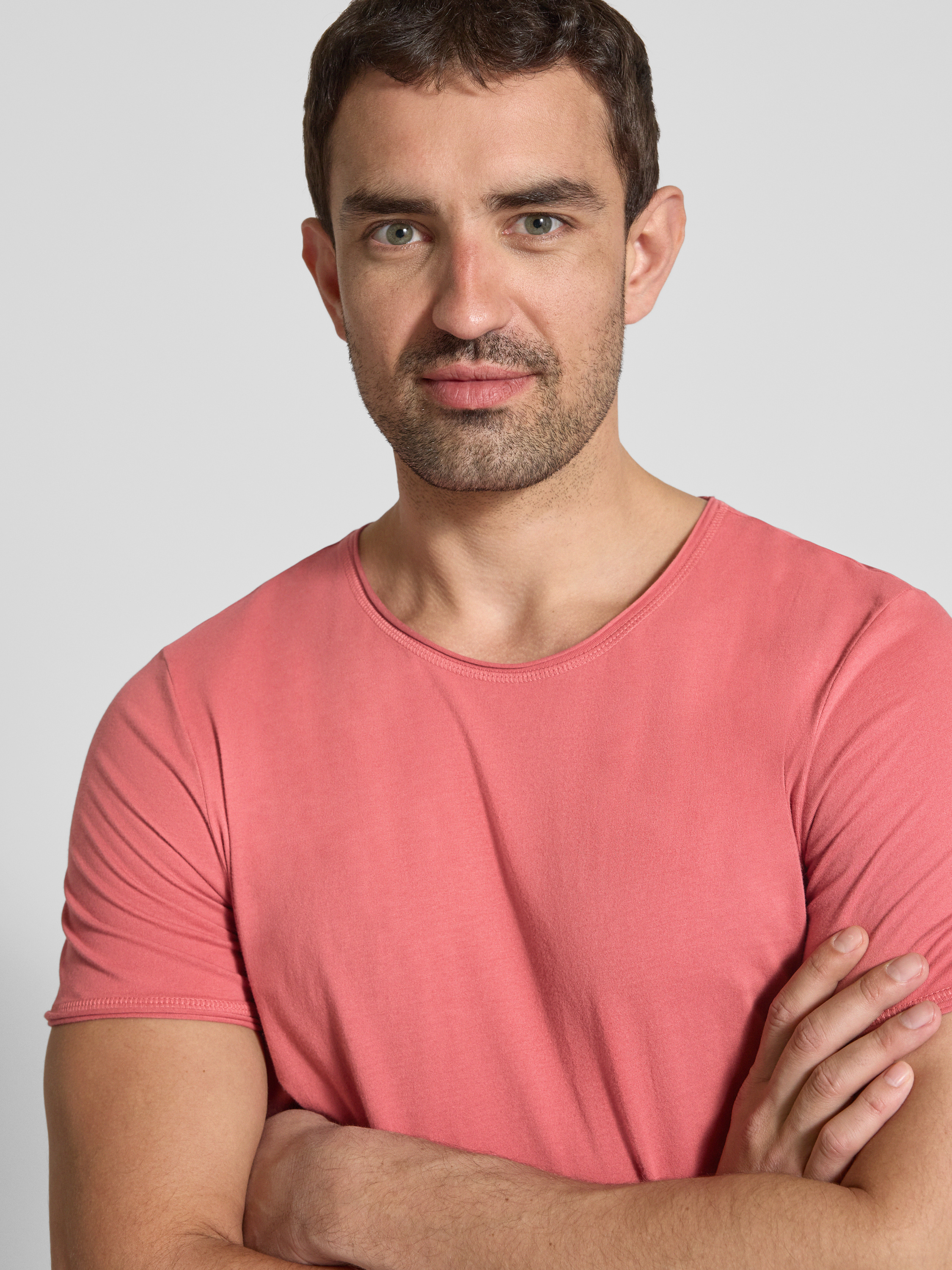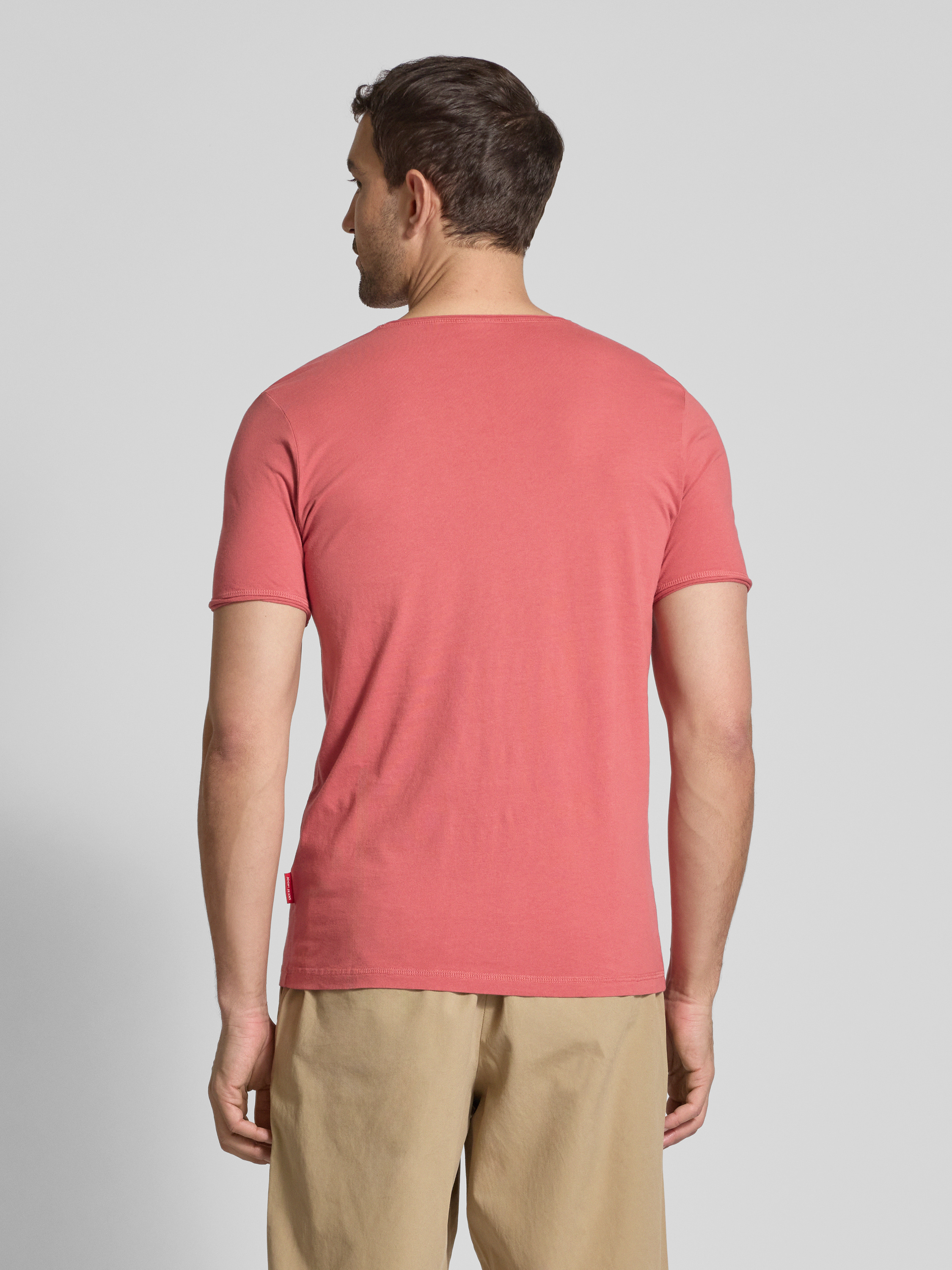 JOOP! JeansT-Shirt mit geripptem Rundhalsausschnitt Modell 'Cesare' in lachs