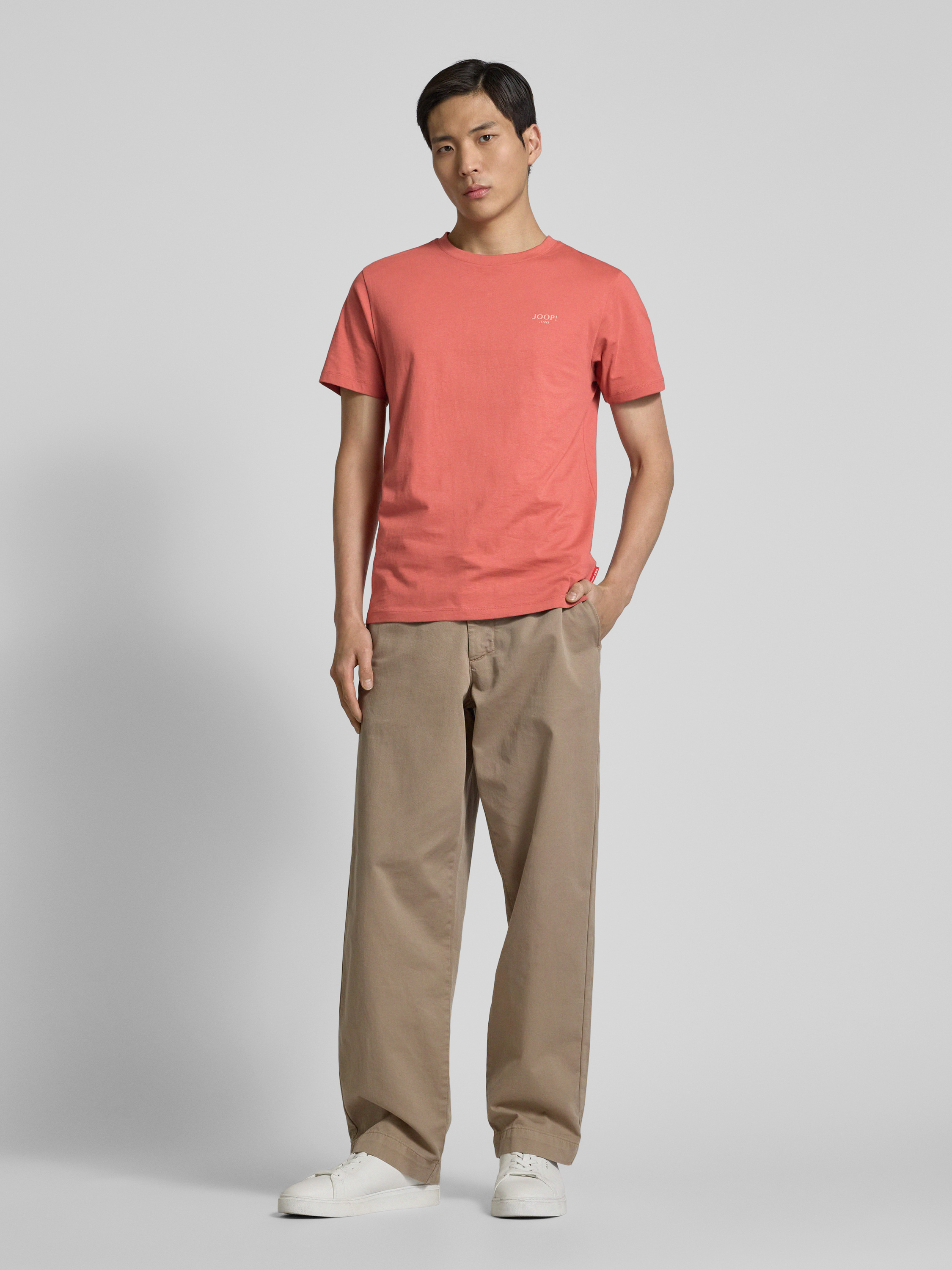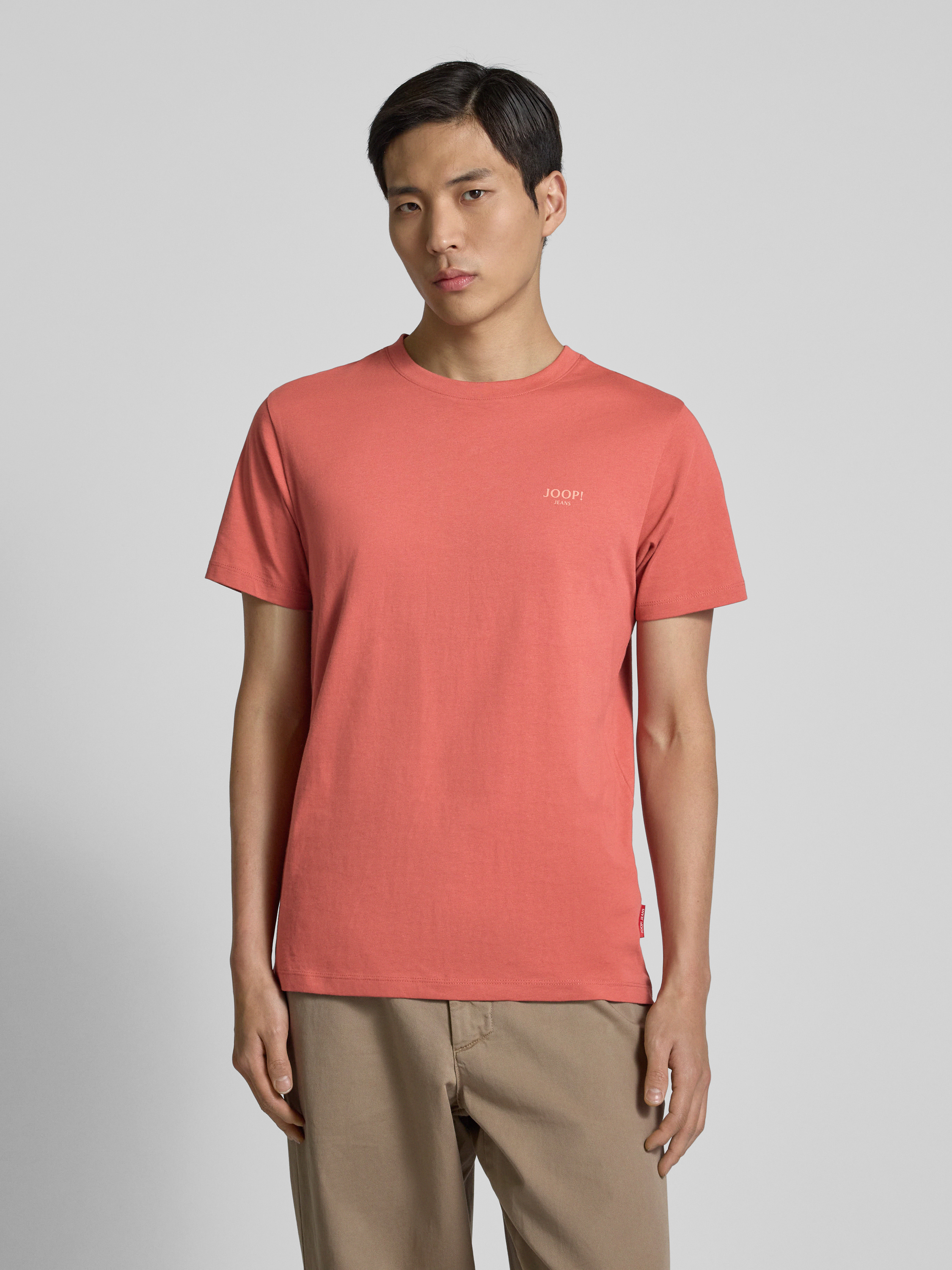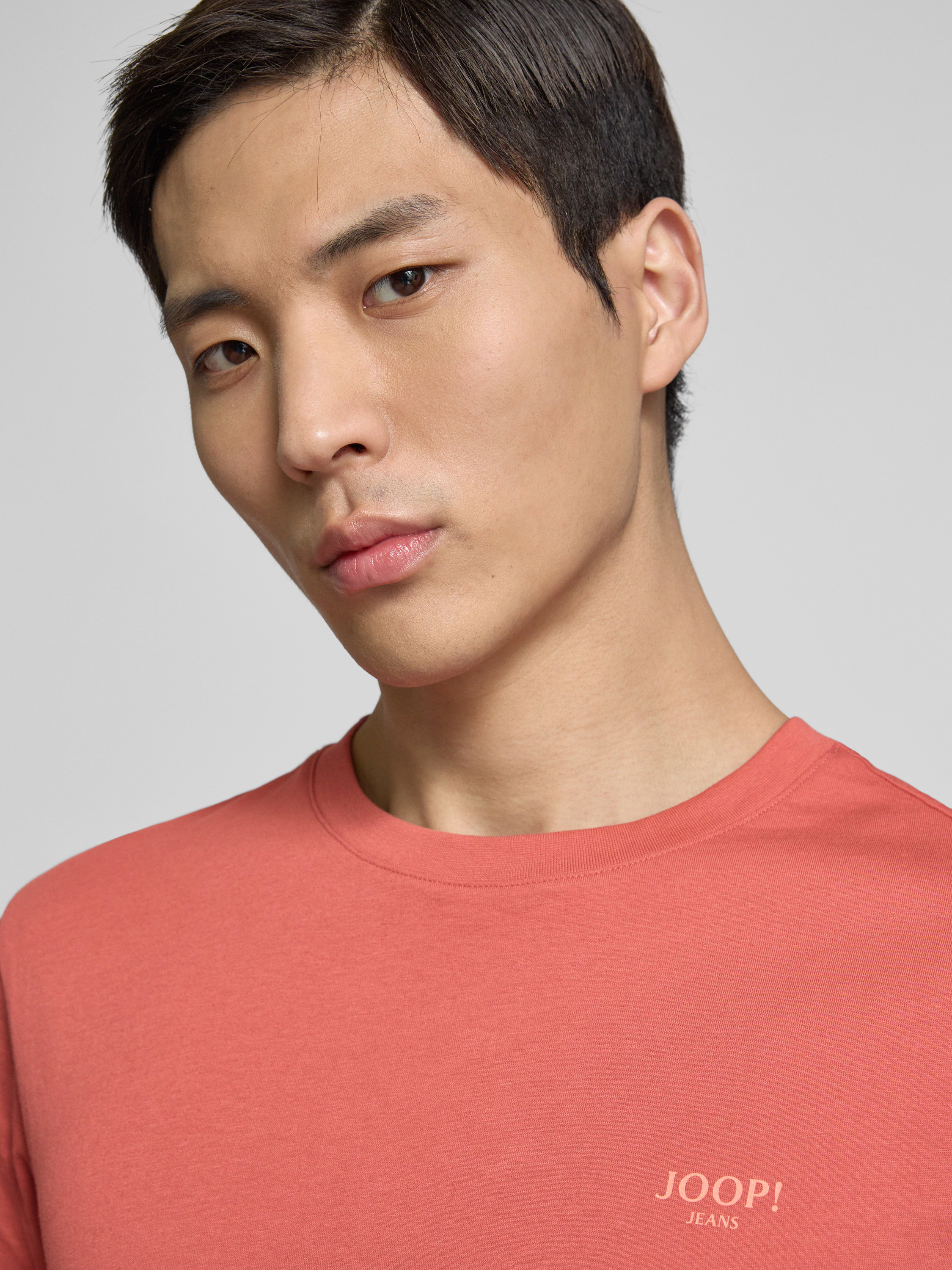 Das Herren T-Shirt von JOOP! Jeans, Modell 'Alphis', kombiniert einen geraden Schnitt mit reiner Baumwolle und bietet so ein angenehmes Tragegefühl. Der Rundhalsausschnitt und der markante Label-Print verleihen dem T-Shirt eine lässige Note, die sich ideal für vielfältige Anlässe eignet.