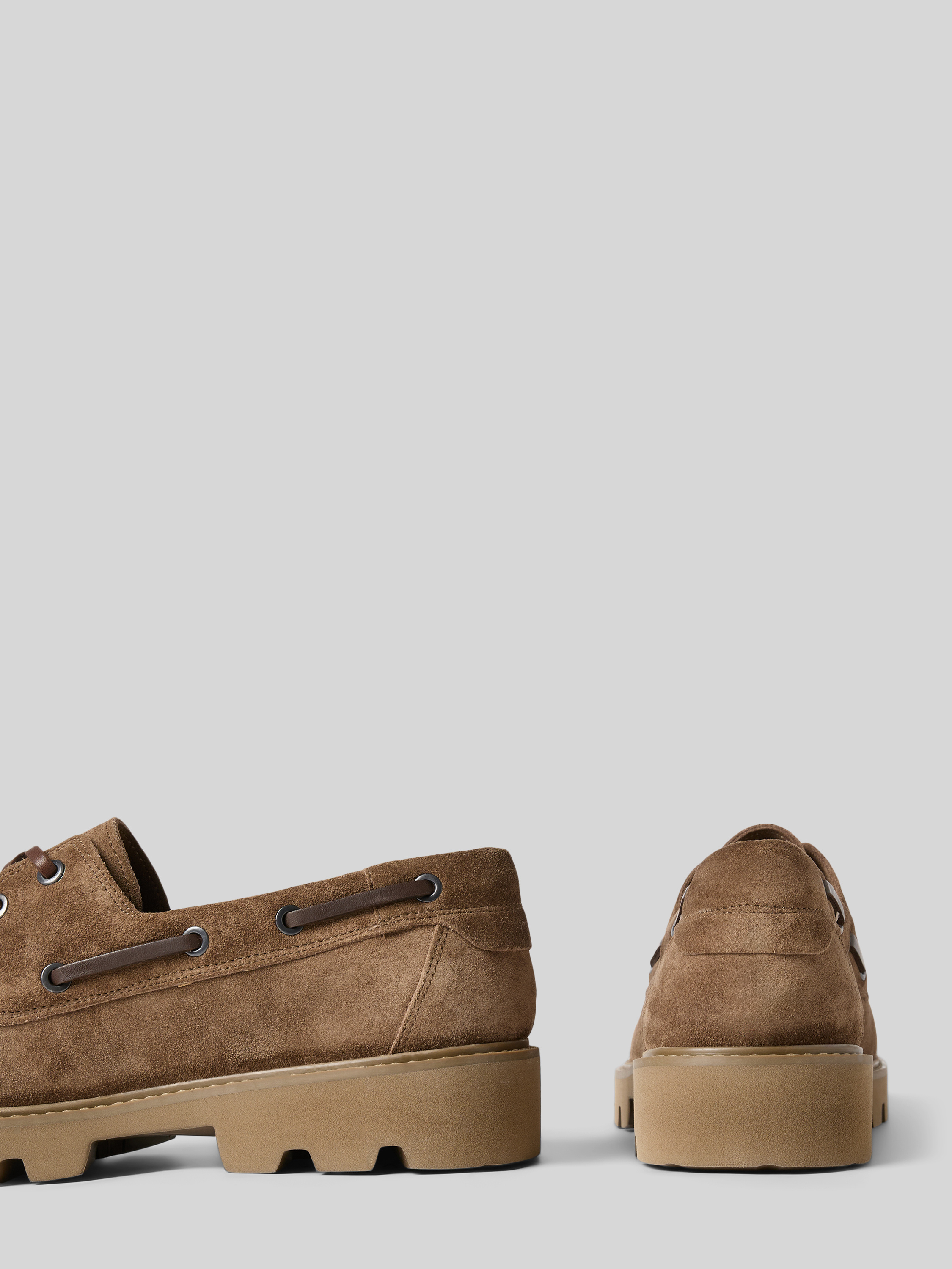 Die Herren Loafers von JOOP! SHOES zeigen sich aus echtem Leder und setzen mit ihrer profilierten Sohle auf einen ausdrucksstarken Auftritt. Durch die abgerundete Spitze und die dezente Schnürung erhält das Modell velluto melo lace up eine klassische Form, die vielseitig kombiniert werden kann. Man profitiert von einem angenehmen Tragegefühl und einer robusten Ausführung, die sich im Alltag bewährt.