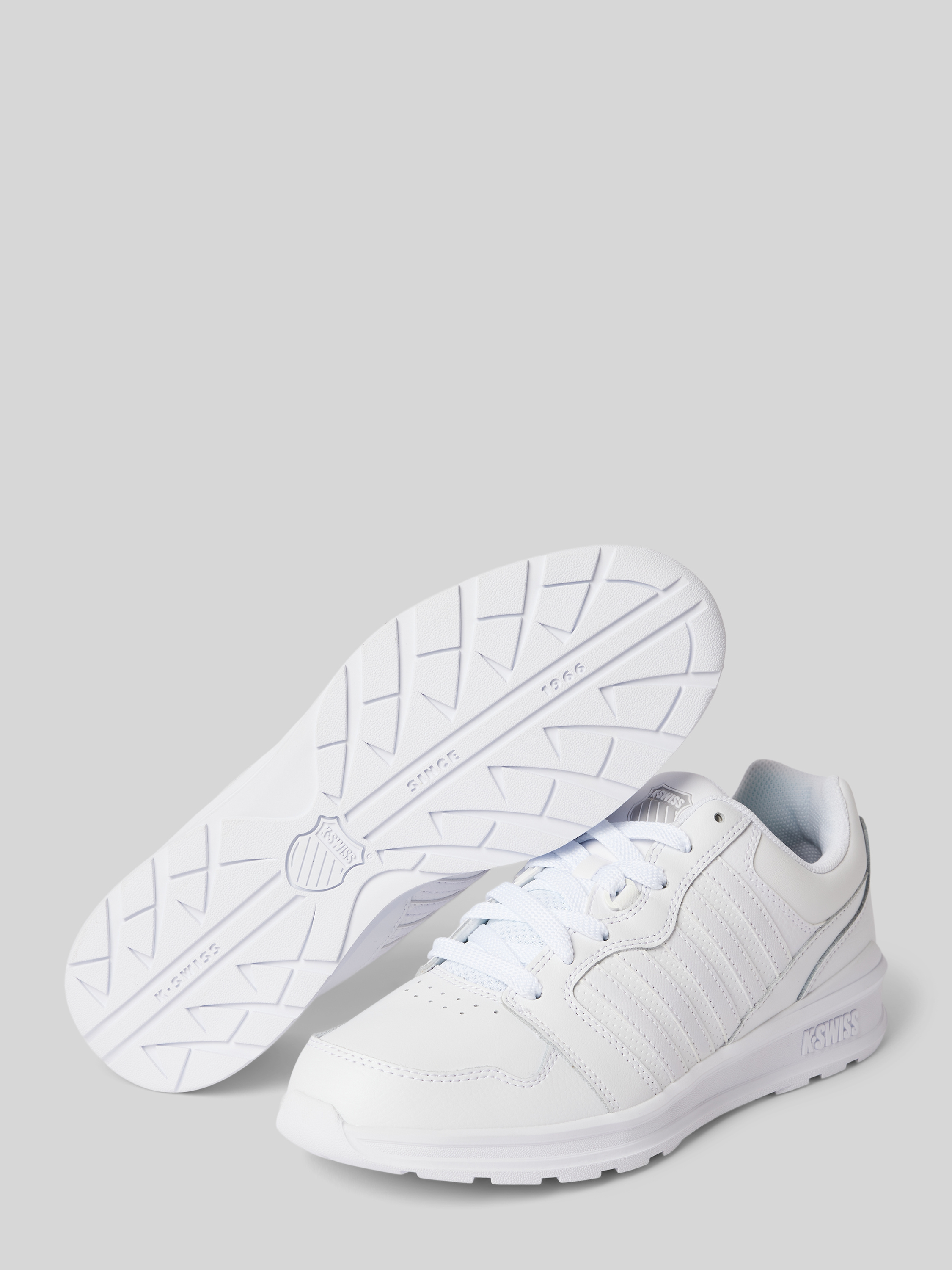 Der Herren Sneaker von K-SWISS beeindruckt durch eine abgerundete Spitze und ein dezentes Label-Detail. Die strukturierte Sohle sorgt für einen sicheren Tritt, während der Schnürverschluss eine individuelle Passform ermöglicht. Ein bequemer Begleiter für vielseitige Anlässe.