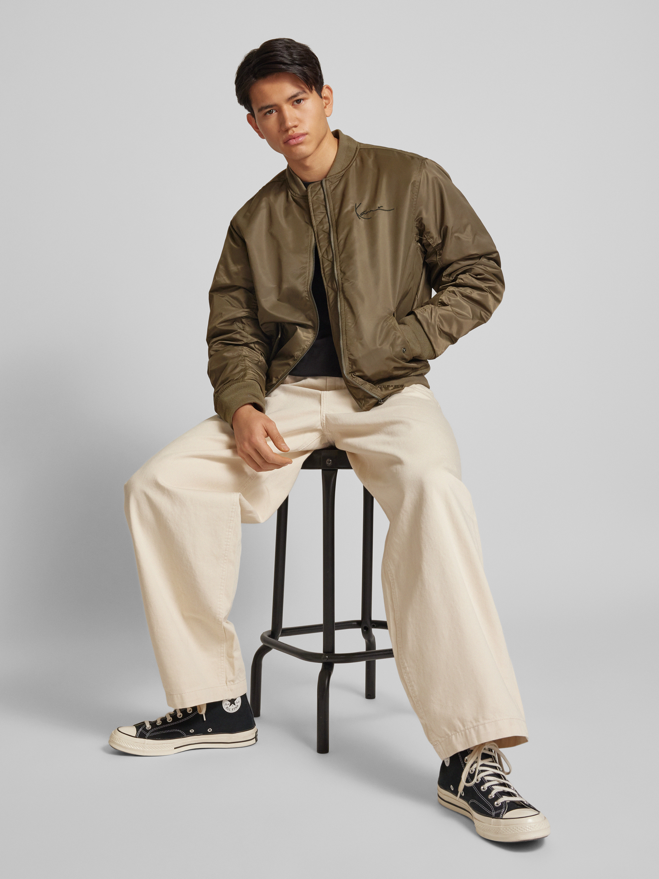 Die Herren Bomberjacke von Karl Kani vereint einen lockeren Schnitt mit einem modischen Stehkragen, wodurch sie vielseitig einsetzbar ist. Das Label-Stitching setzt dezente Akzente, während Pattentaschen praktische Aufbewahrungsmöglichkeiten bieten. Der lässige Stil macht sie ideal für entspannte Freizeitaktivitäten.