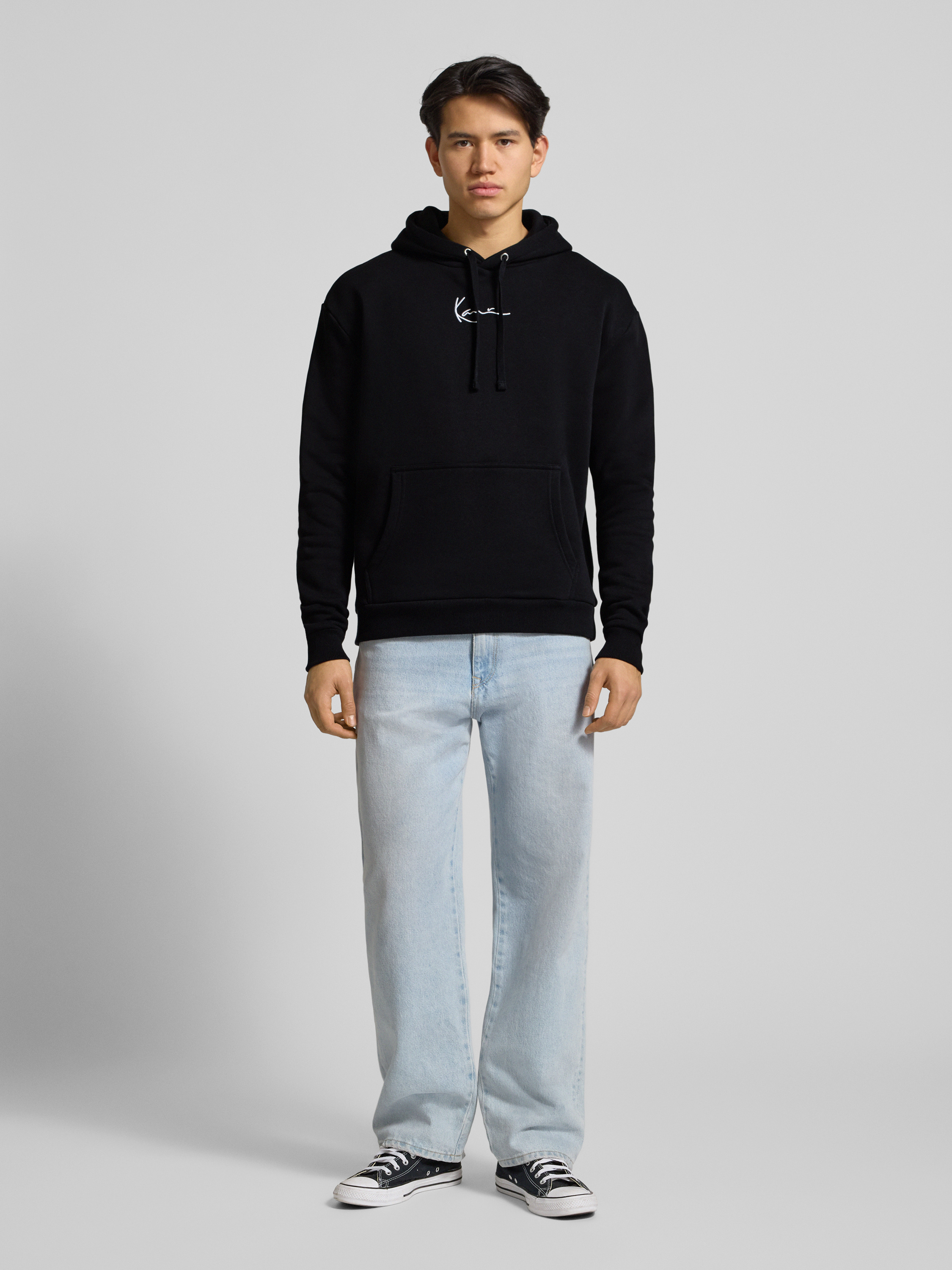 Der Herren Hoodie von KARL KANI aus einem Baumwoll-Mix fällt durch seinen lockeren Schnitt auf und sorgt so für ein angenehmes Tragegefühl im Alltag. Die Kapuze mit Tunnelzug bietet zusätzlichen Komfort, während die Känguru-Tasche praktisch ist, um kleine Dinge zu verstauen. Dezentes Label-Stitching und gerippte Abschlüsse runden das Gesamtbild ab.