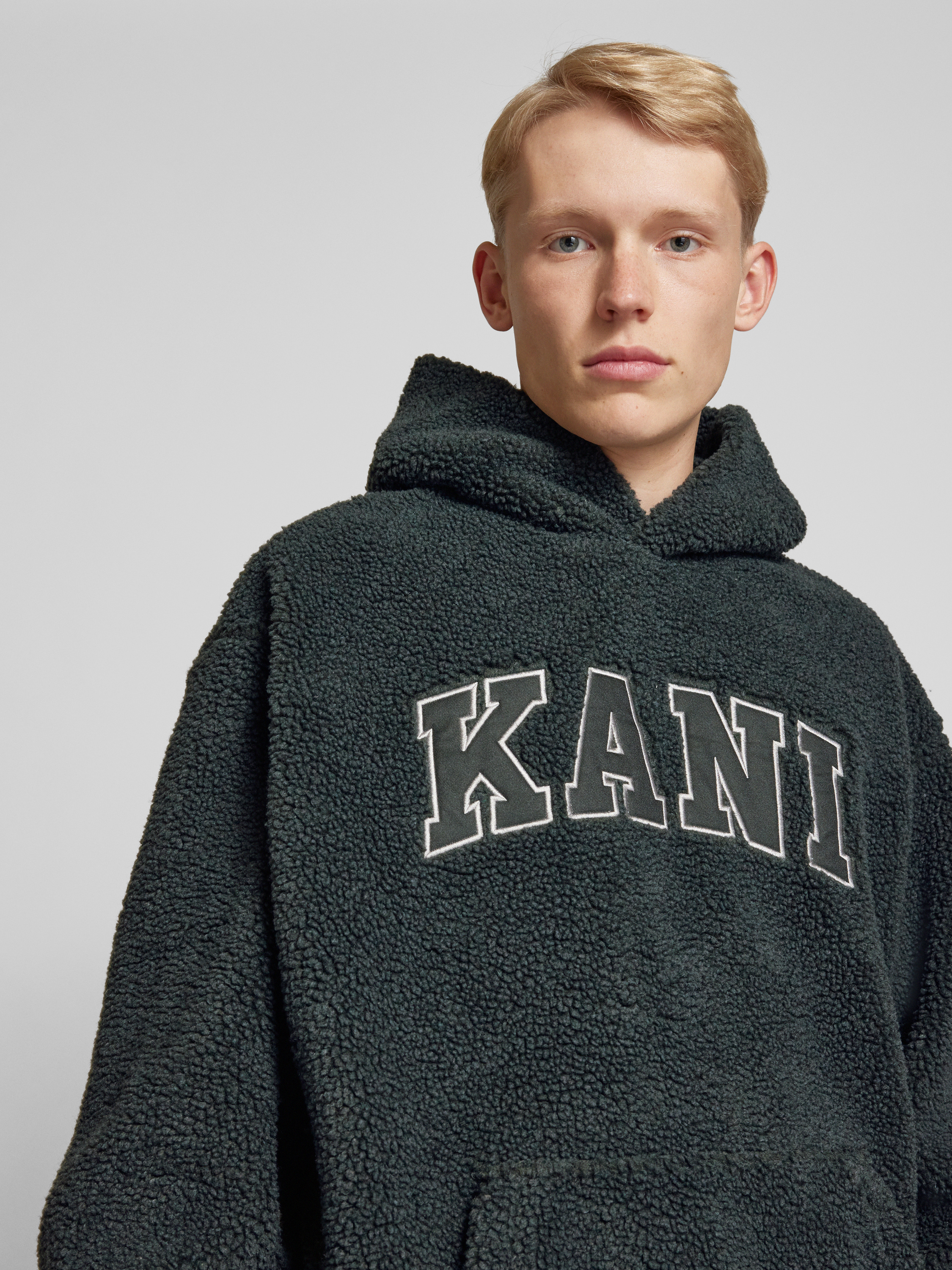 Der Karl Kani Hoodie mit Label-Patches kombiniert einen lockeren Schnitt mit kuscheligem Teddyfell, was ihn ideal für gemütliche Tage macht. Die großzügige Kapuze und die praktische Känguru-Tasche bieten zusätzlichen Komfort. Das auffällige Design wird durch die markanten Patches stilvoll ergänzt.