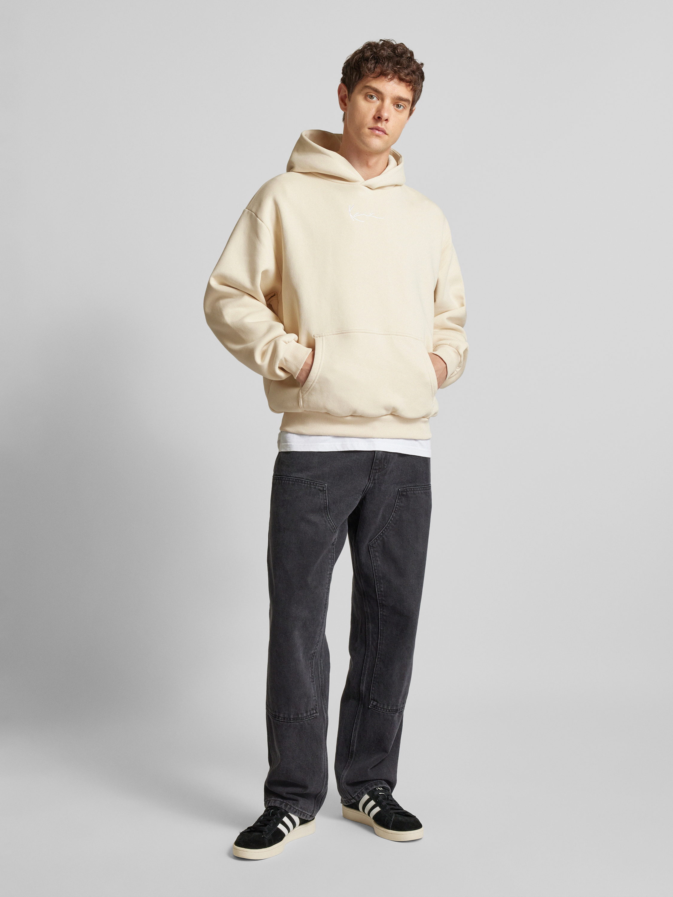 Der Hoodie von Karl Kani, gefertigt aus einem weichen Baumwoll-Mix, bietet mit seinem lockeren Schnitt und der großzügigen Kapuze bequemen Tragekomfort. Praktische Details wie die Känguru-Tasche und das subtile Label-Stitching verleihen dem Stück eine lässige Note. Gerippte Abschlüsse runden das Design stimmig ab.