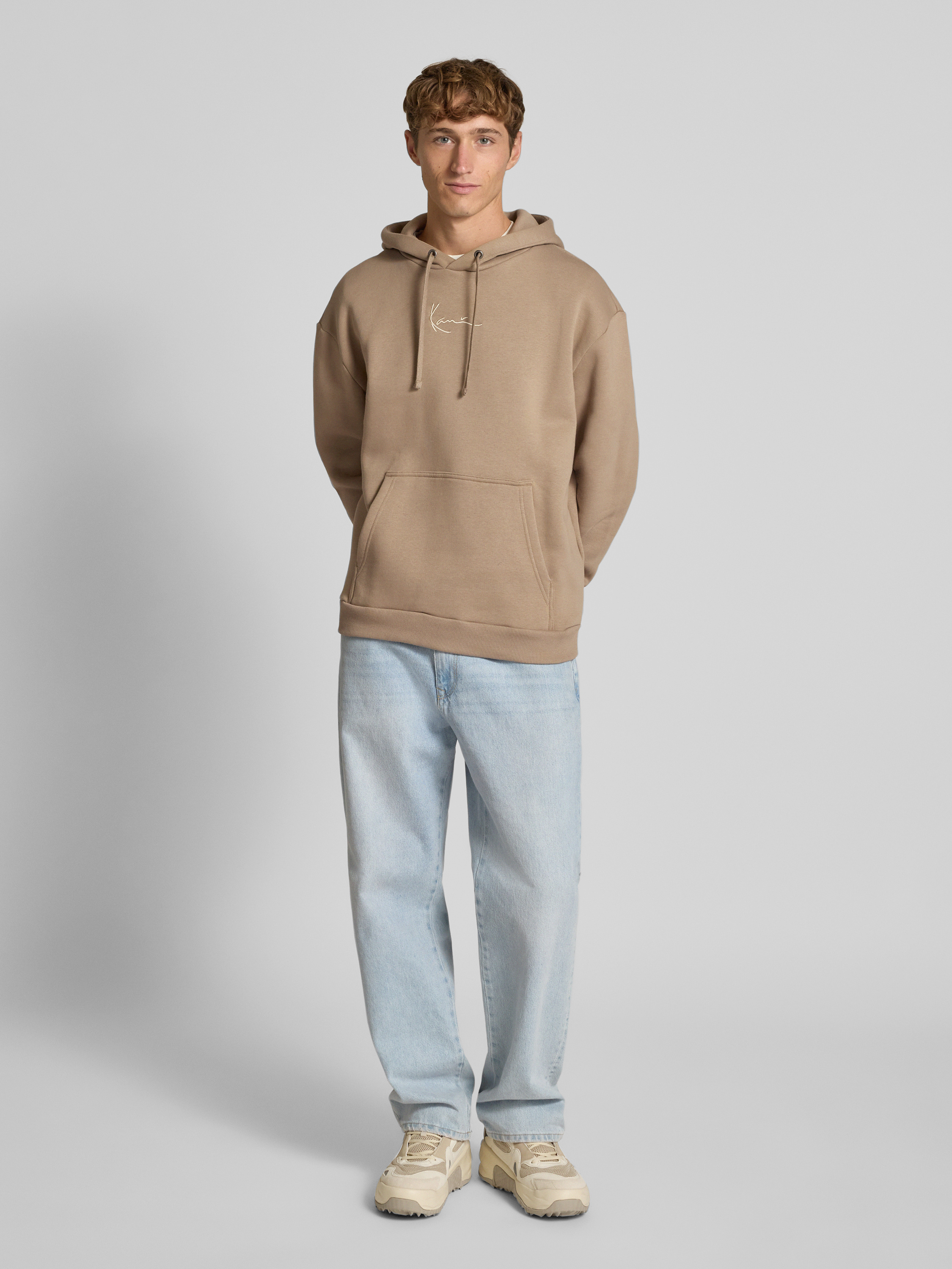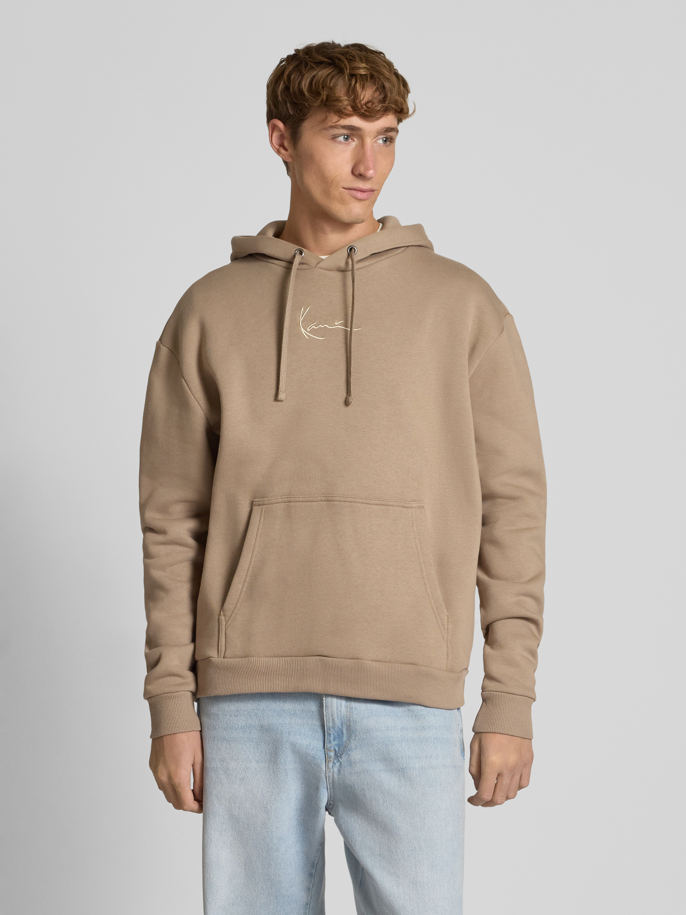 Der Herren Hoodie von KARL KANI zeigt sich im lässigen Schnitt und fühlt sich durch den Baumwoll-Mix angenehm auf der Haut an. Die geräumige Kapuze und die Känguru-Tasche unterstützen einen entspannten Stil im Alltag. Dezentes Label-Stitching rundet das Gesamtbild sportlich ab.