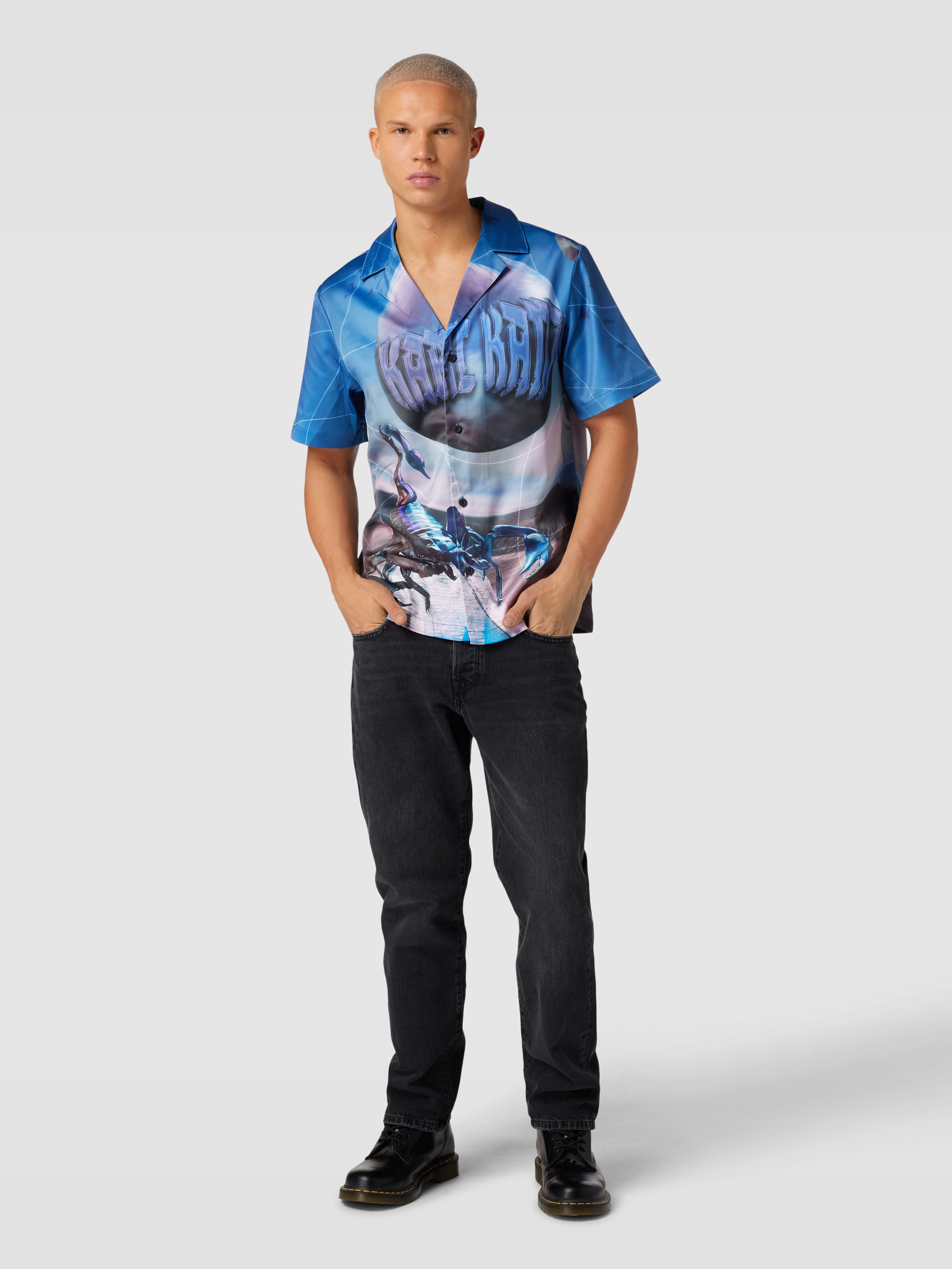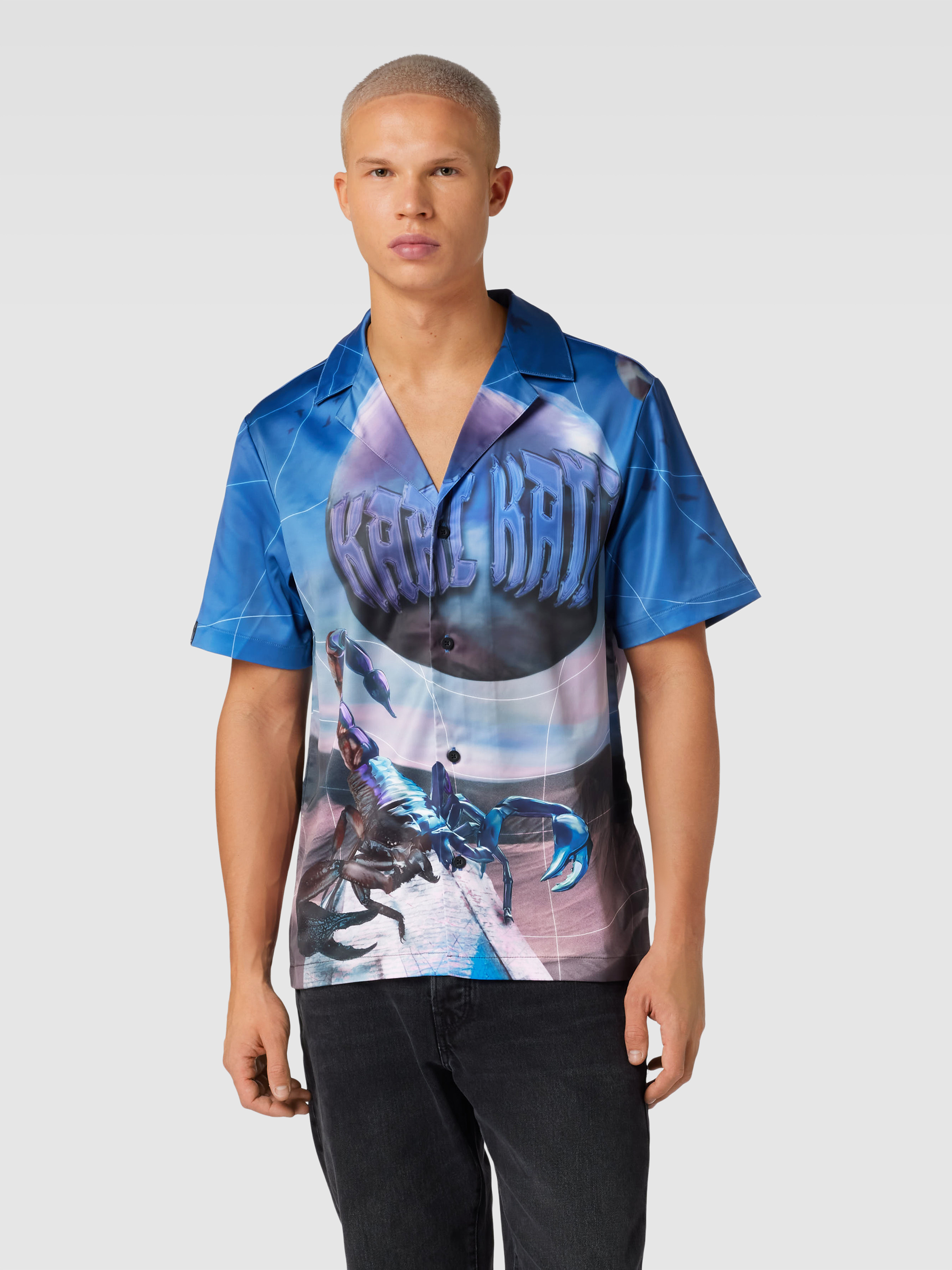 Das Herren Freizeithemd 'Signature Metave' von Karl Kani kombiniert einen Material-Mix mit Stretch-Anteil und Regular Fit für angenehmen Tragekomfort. Der Umlegekragen und das lebendige Allover-Muster sorgen für einen modernen, lässigen Look, der sich vielseitig im Alltag einsetzen lässt. Ein dezentes Label-Detail rundet das Design harmonisch ab.