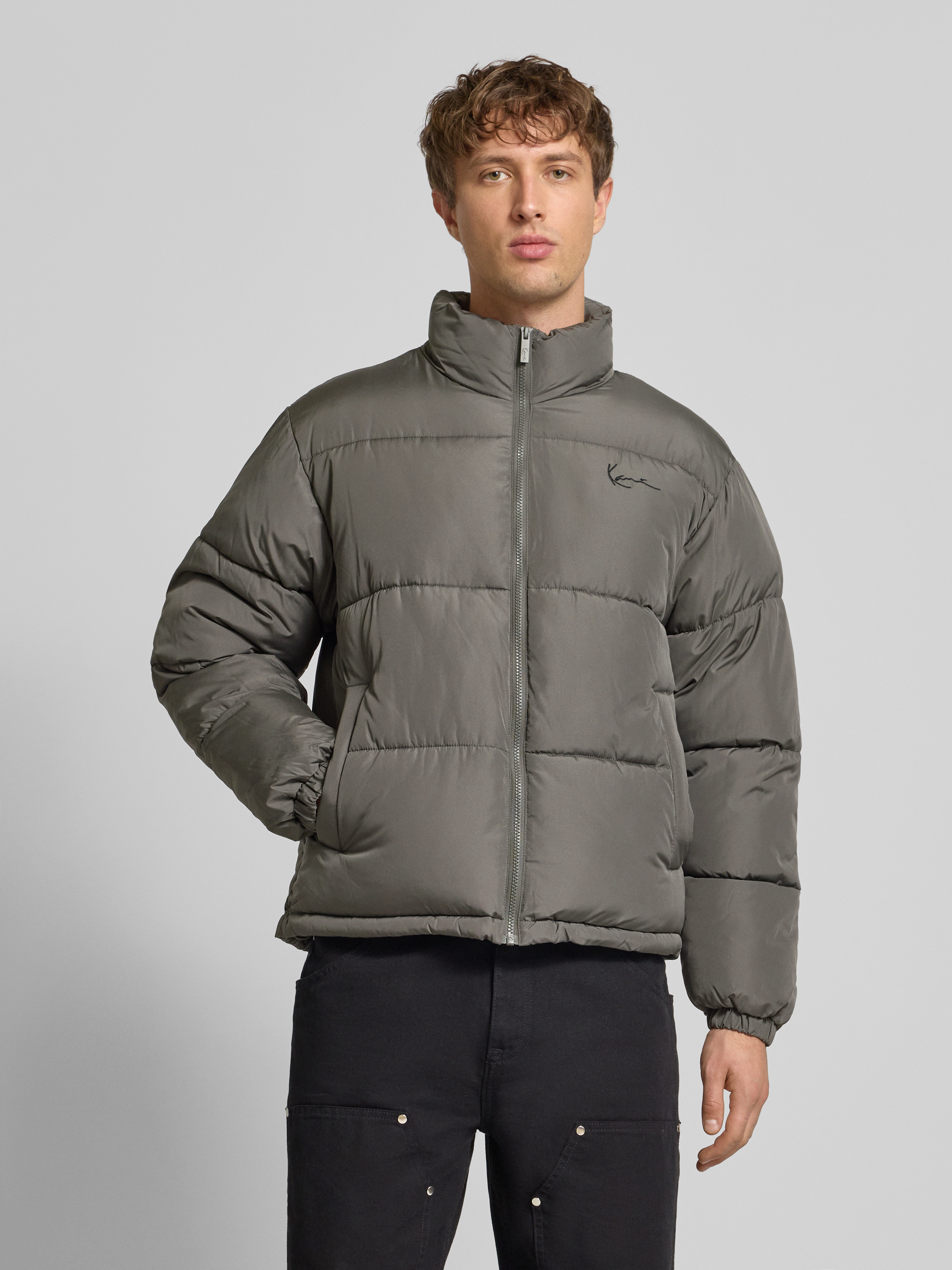 Die Herrenjacke von Karl Kani im Regular Fit zeigt sich in markanter Stepp-Optik und setzt mit dem Logo-Stitching dezente Akzente. Der gefütterte Stehkragen sorgt an kühleren Tagen für angenehmen Schutz. Praktische Eingrifftaschen erleichtern den Alltag, während elastische Abschlüsse Bewegungsfreiheit ermöglichen.