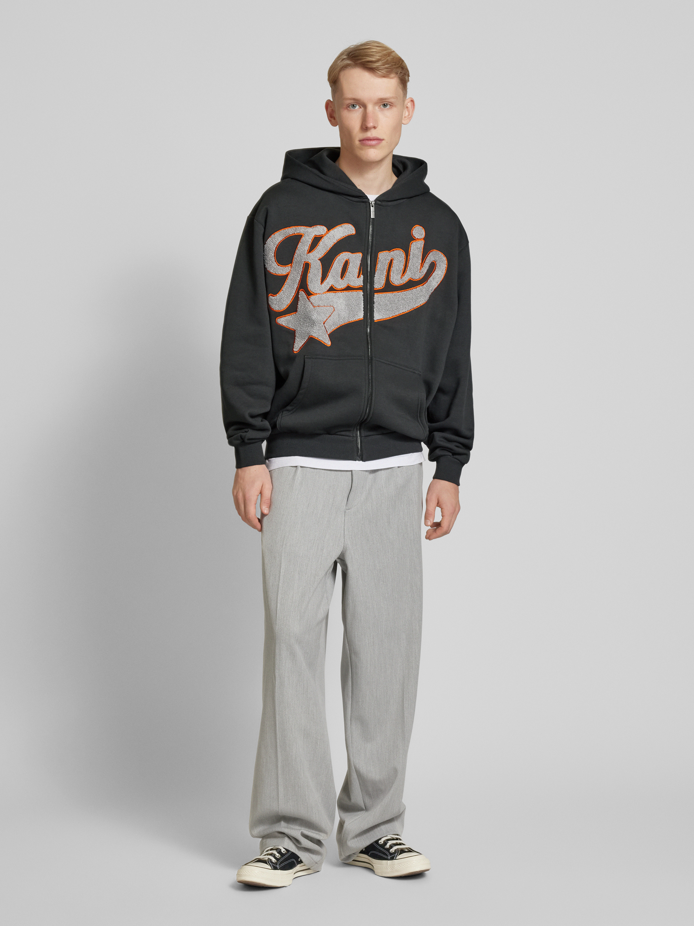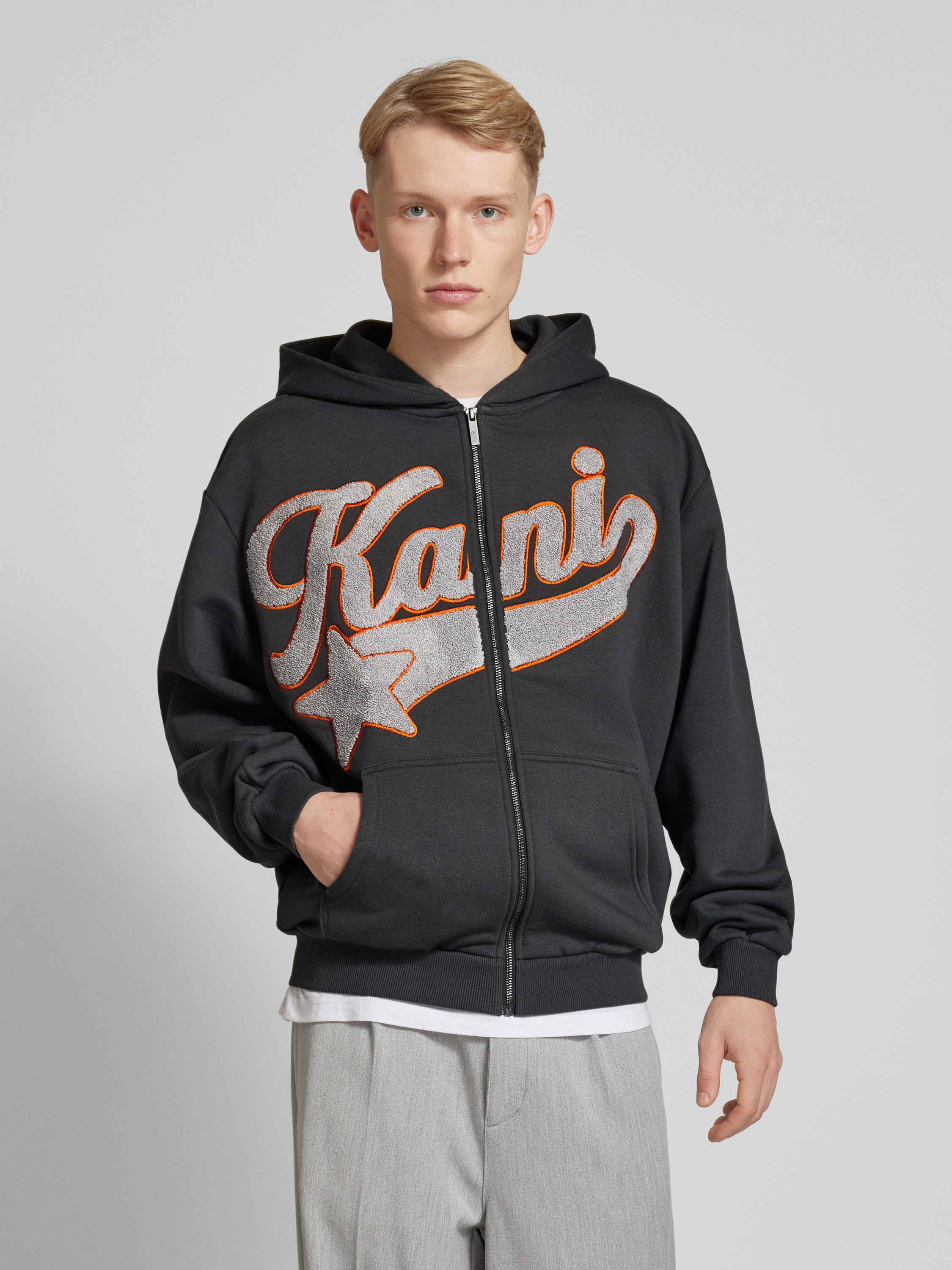 Die Herren Sweatjacke von Karl Kani kombiniert einen lockeren Schnitt mit einer Kapuze und Eingrifftaschen, die vielseitige Nutzungsmöglichkeiten eröffnen. Der Viskose-Mix sorgt für ein angenehmes Tragegefühl, während das Label-Stitching subtile Akzente setzt und dem Design eine besondere Note verleiht.