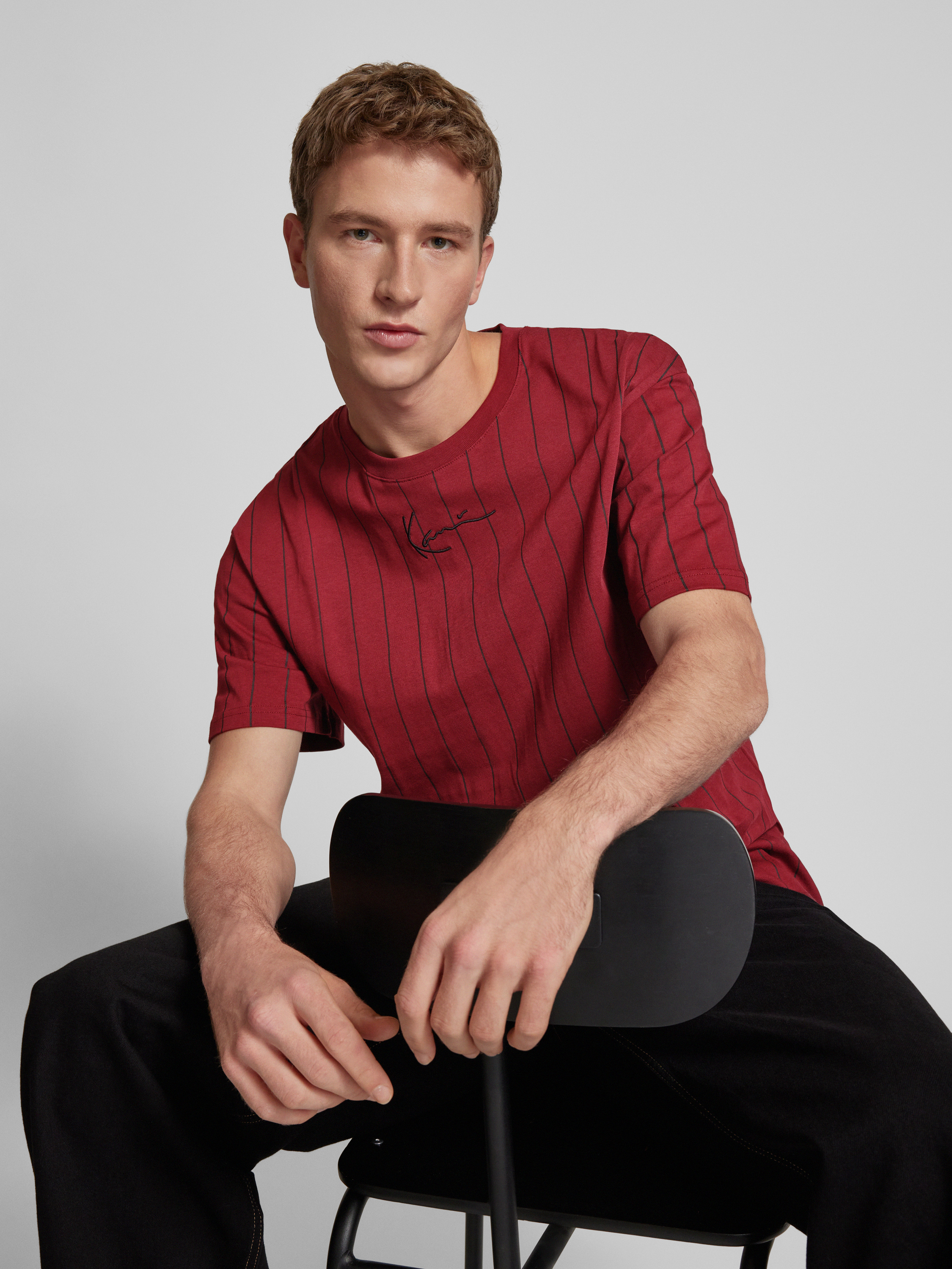 Das Herren T-Shirt von Karl Kani zeichnet sich durch seine angenehme Passform im Regular Fit aus. Gefertigt aus reiner Baumwolle, bietet es ein komfortables Tragegefühl. Der gerippte Rundhalsausschnitt und das dezente Label-Stitching verleihen dem T-Shirt eine lässige Note.