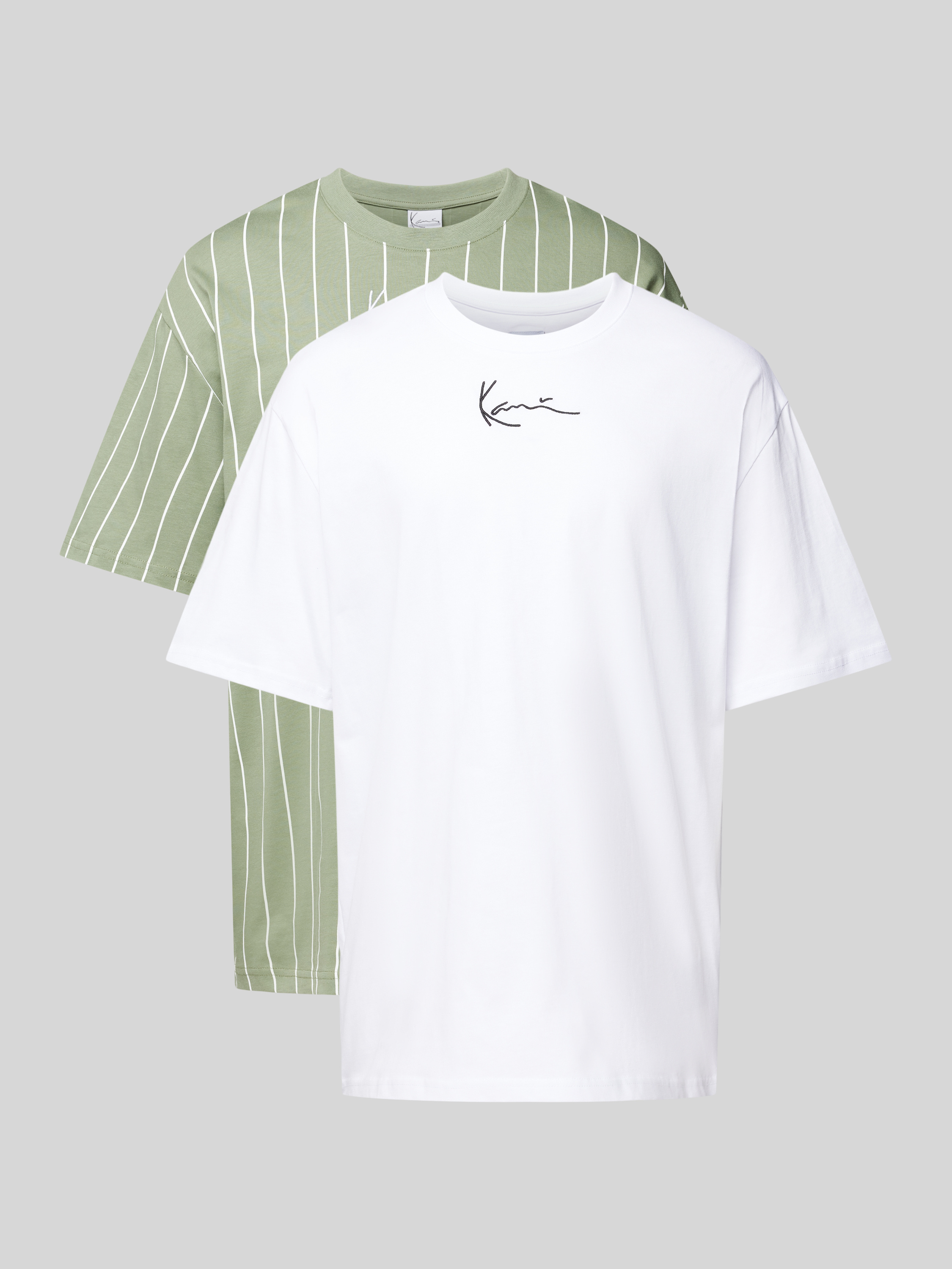 Das Herren T-Shirt von Karl Kani überzeugt durch seine reine Baumwolle, die für ein angenehmes Tragegefühl sorgt. Der gerade Schnitt und der klassische Rundhalsausschnitt machen es vielseitig kombinierbar. Im praktischen 2er-Pack bietet es eine stilvolle Option für den Alltag.
