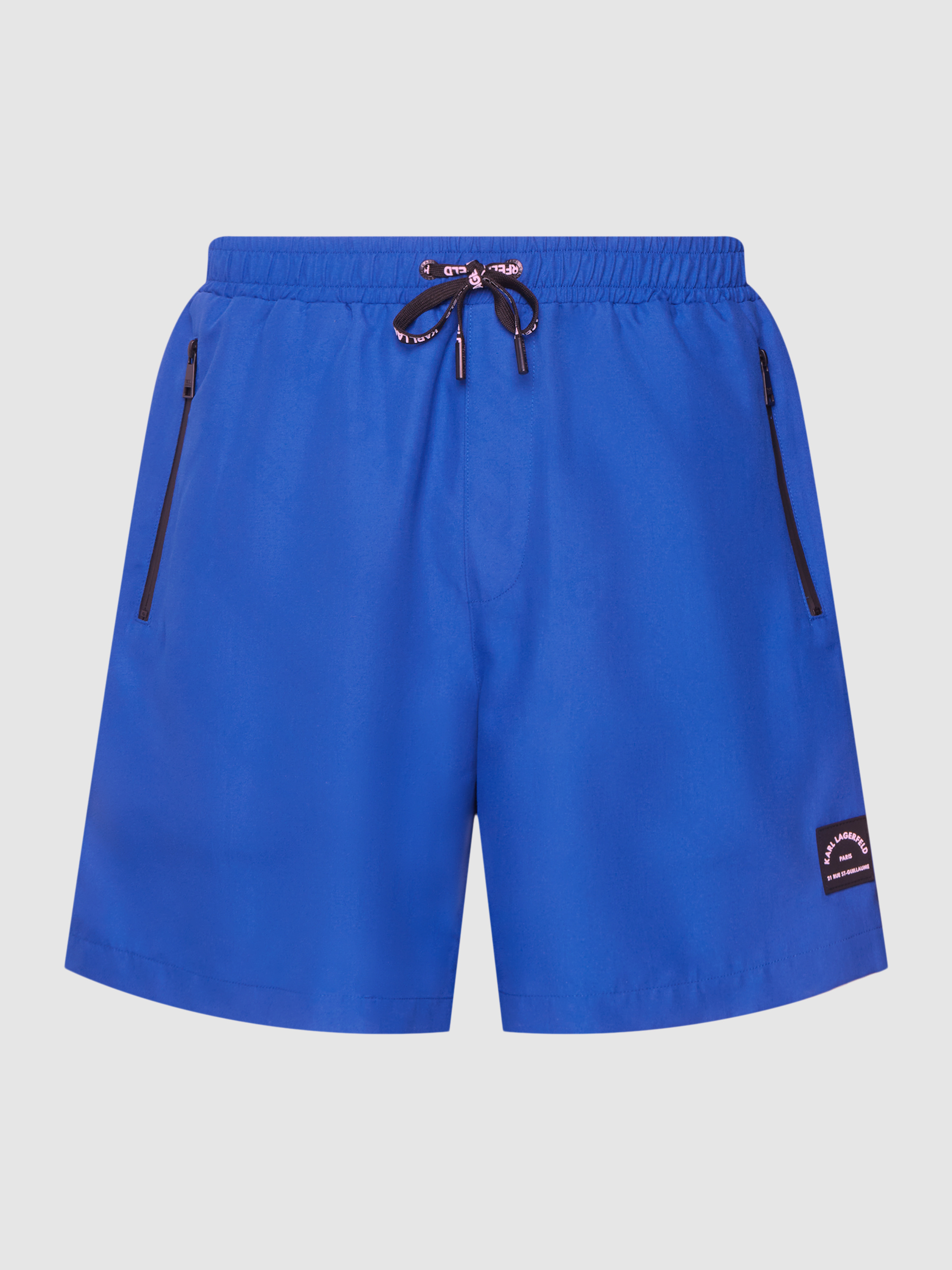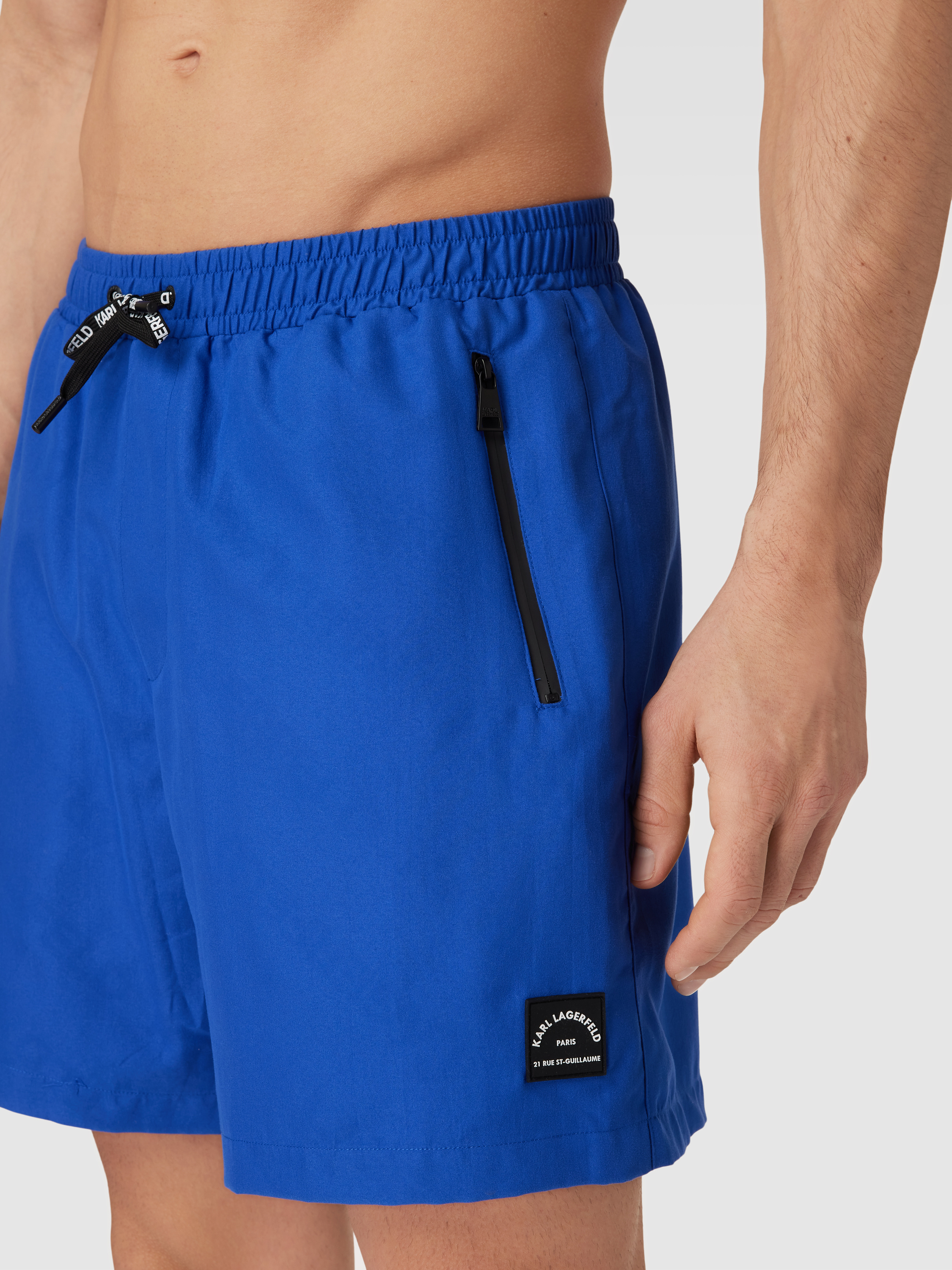 Die Badehose von KARL LAGERFELD zeichnet sich durch strapazierfähiges Material und einen geraden Schnitt aus, was sie ideal für aktive Tage am Strand macht. Ein dezentes Label-Patch rundet das unifarbene Design ab und verleiht der Hose eine subtile Eleganz. Dank der Reißverschlusstaschen bleibt alles sicher verstaut.
