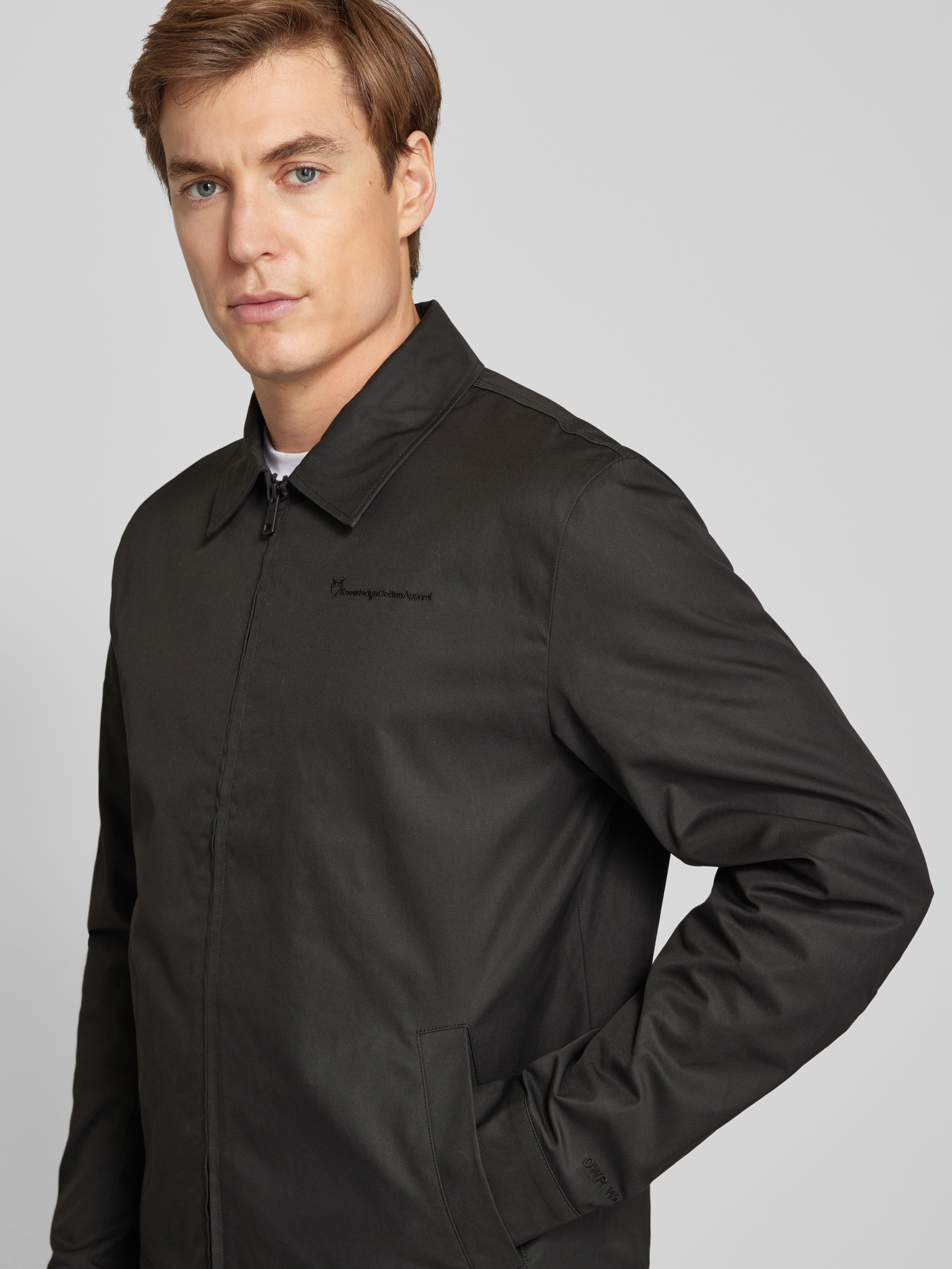 Die Herren Bomberjacke 'WAXED CANVAS' von KnowledgeCotton Apparel aus reiner Bio-Baumwolle überzeugt durch ihren geraden Schnitt und den praktischen Kentkragen. Das Modell punktet mit stilvollem Label-Stitching und bietet angenehmen Tragekomfort. Seitliche Eingrifftaschen runden das Design funktional ab.