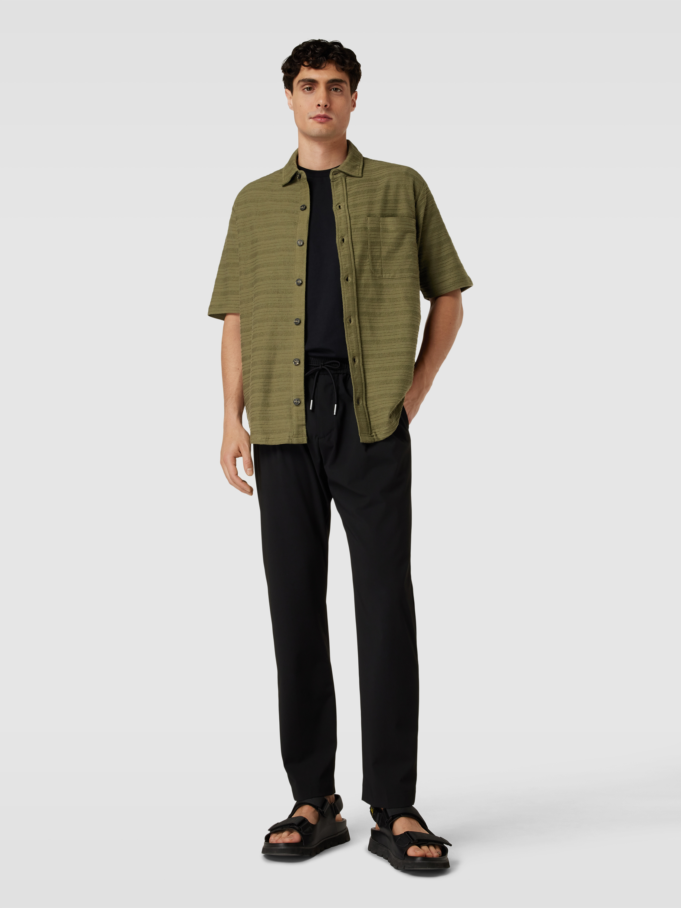 Das Loose Fit Freizeithemd von KnowledgeCotton Apparel kombiniert einen entspannten Schnitt mit einem angenehmen Baumwoll-Elasthan-Mix, der Bewegungsfreiheit ermöglicht. Das schlichte Design wird durch ein feines Strukturmuster und eine praktische Brusttasche ergänzt, was es vielseitig einsetzbar macht.