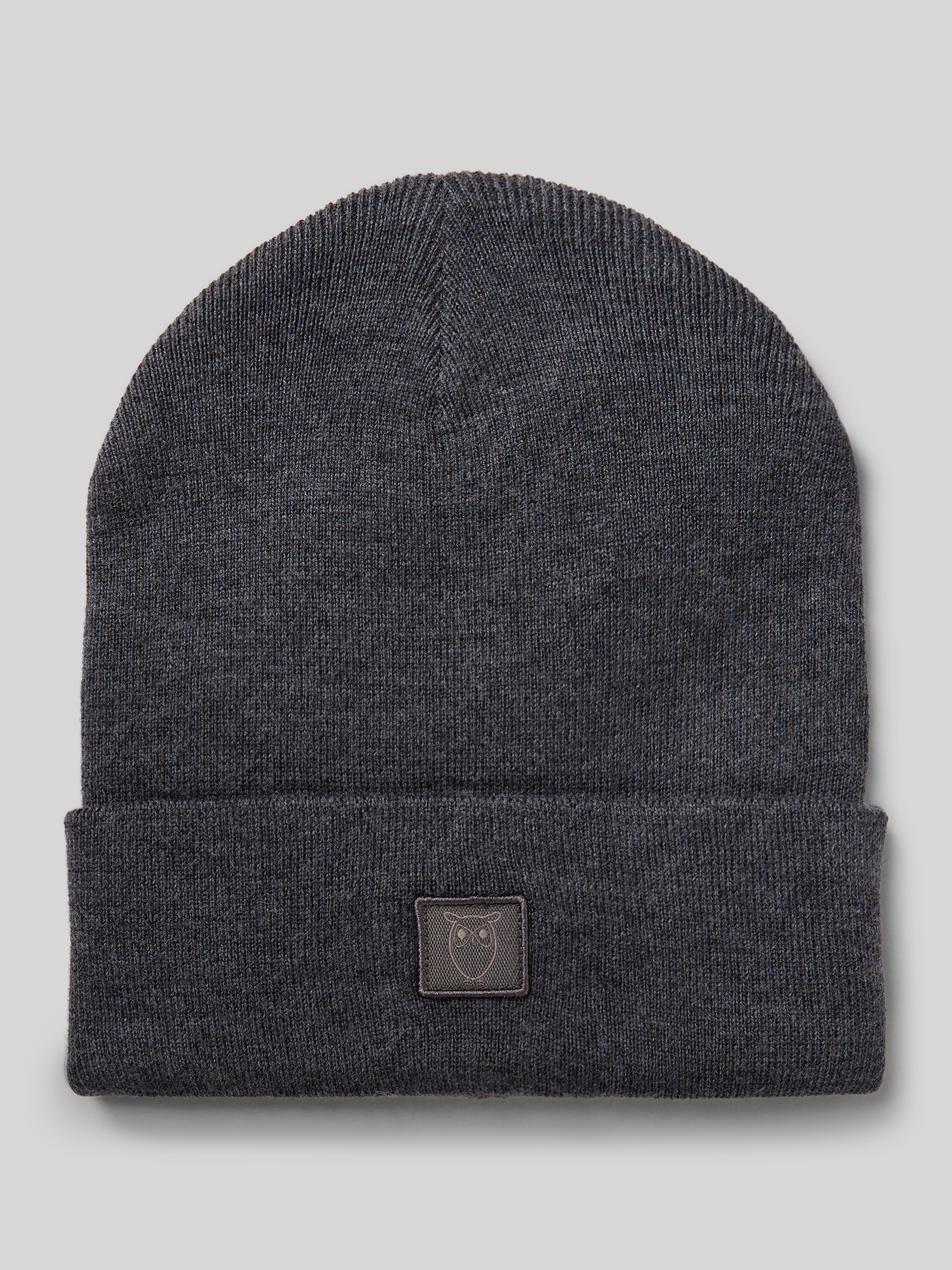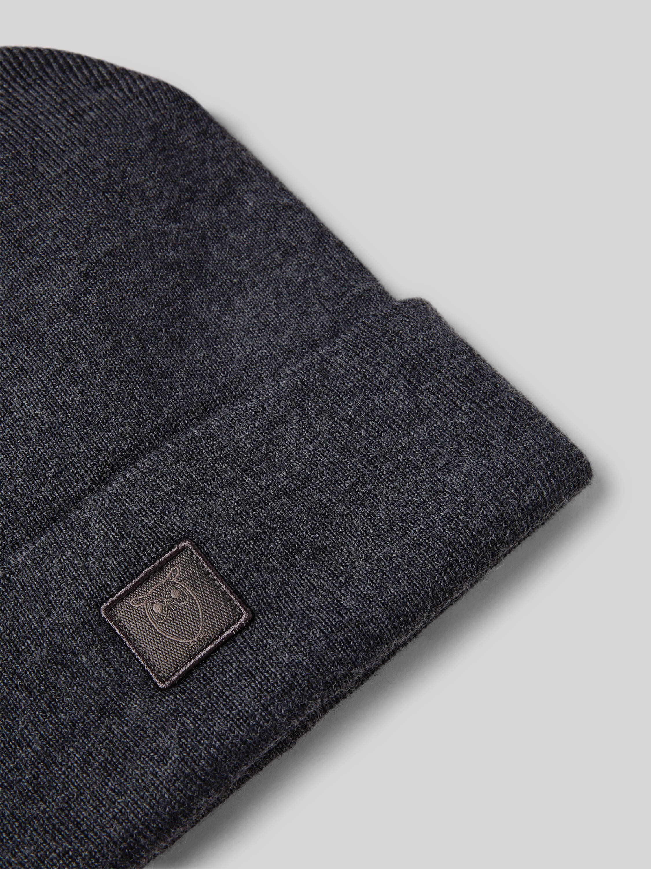 Knowledge Cotton ApparelMütze aus reiner Wolle Modell 'Merino' in anthrazit melange