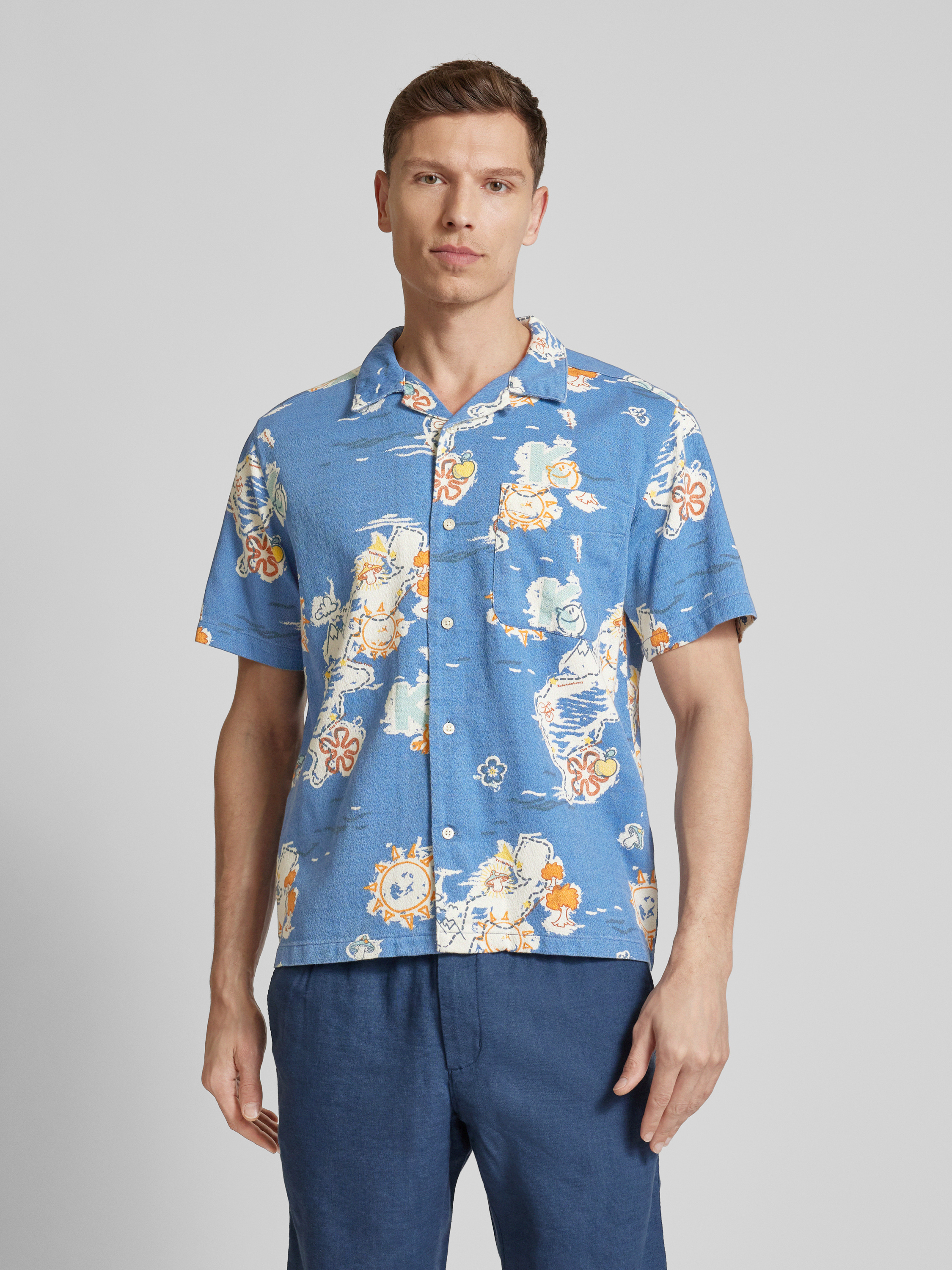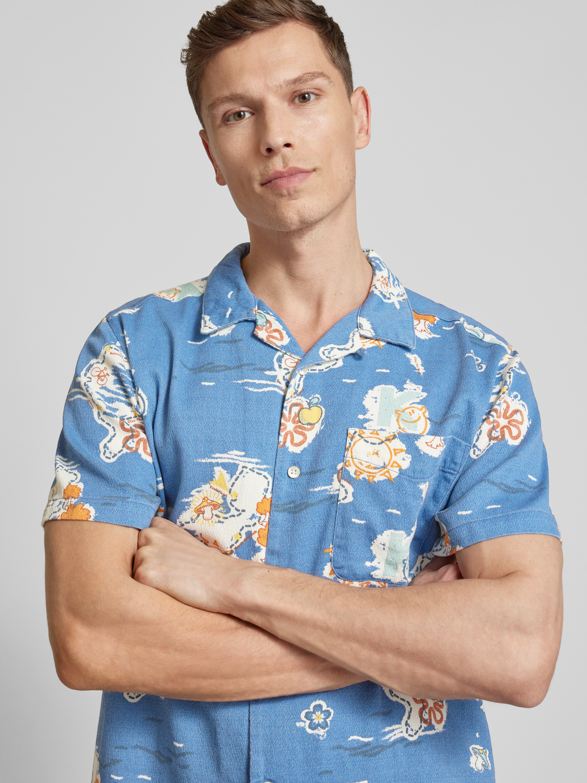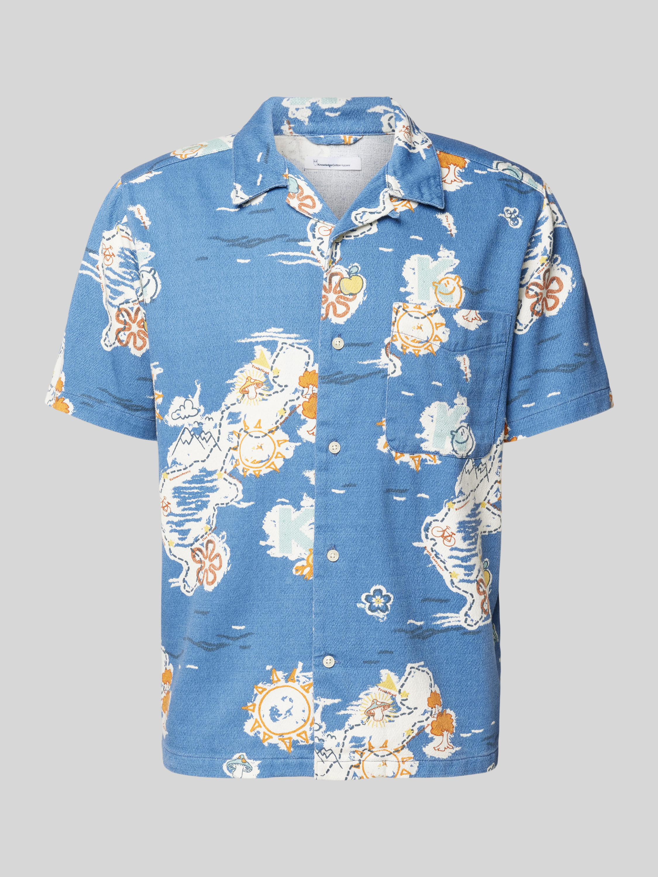 Das Regular Fit Freizeithemd von KnowledgeCotton Apparel besteht aus reiner Baumwolle und bietet mit seinem floralen Allover-Muster einen lockeren, aber eleganten Stil. Der Reverskragen und das kurzärmelige Design eignen sich ideal für warme Tage und sorgen für angenehmen Tragekomfort.
