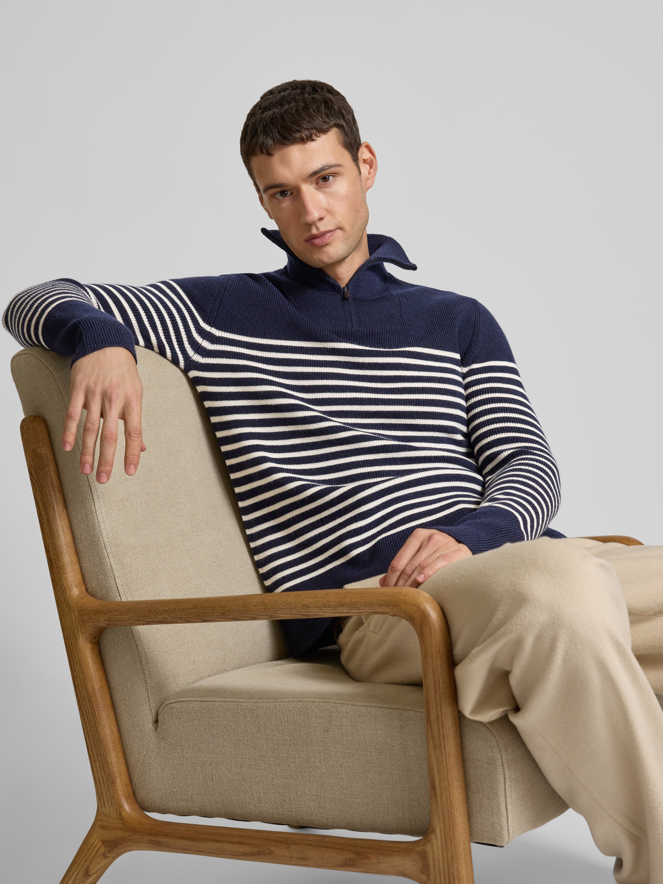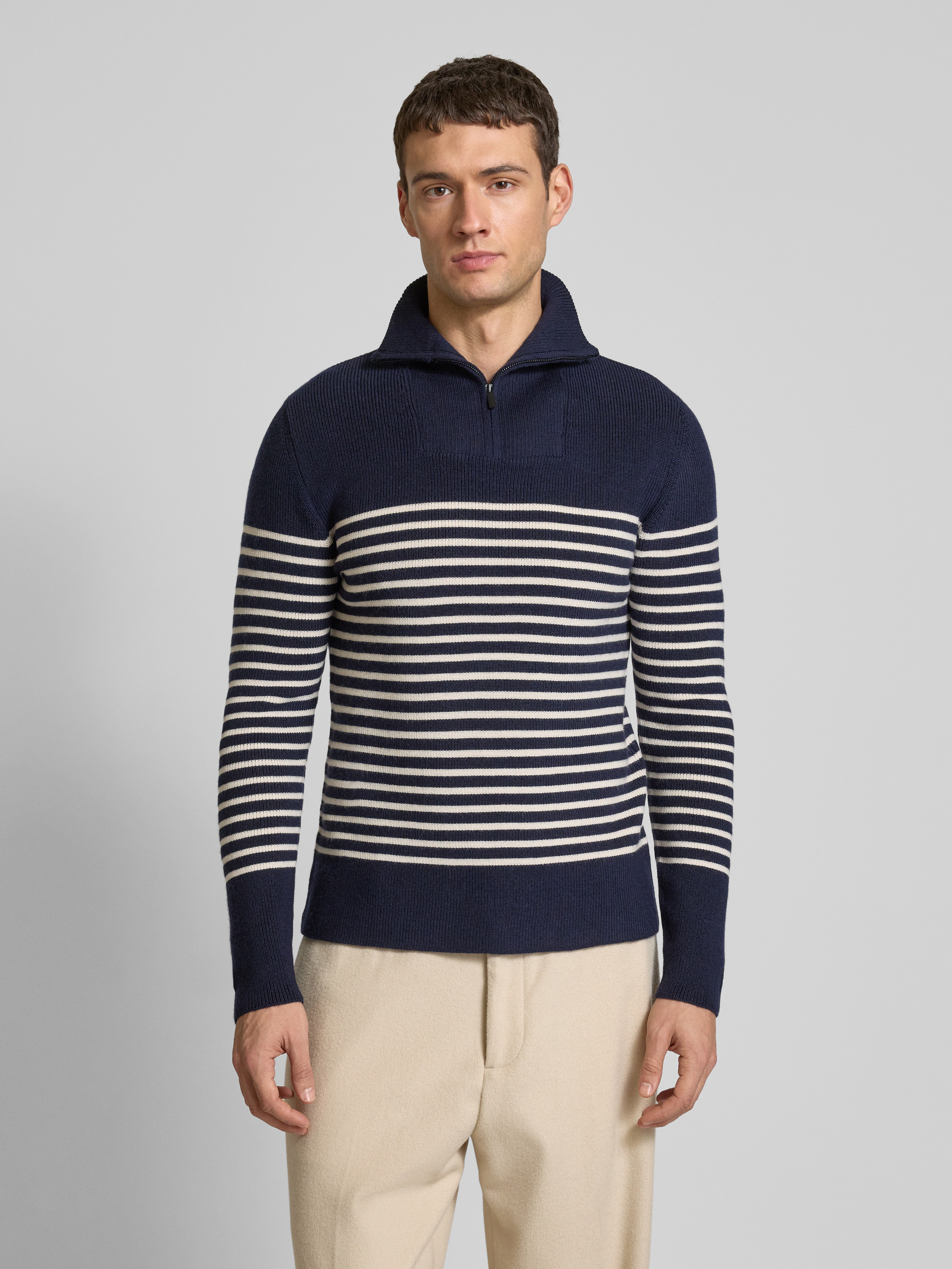 Der Herren Strickpullover von KnowledgeCotton Apparel kombiniert eine klassische Silhouette mit modernem Design. Aus reiner Wolle gefertigt, bietet er angenehme Wärme und Komfort. Der gerade Schnitt und der Stehkragen verleihen dem Pullover eine zeitgemäße Eleganz, die vielseitig einsetzbar ist.