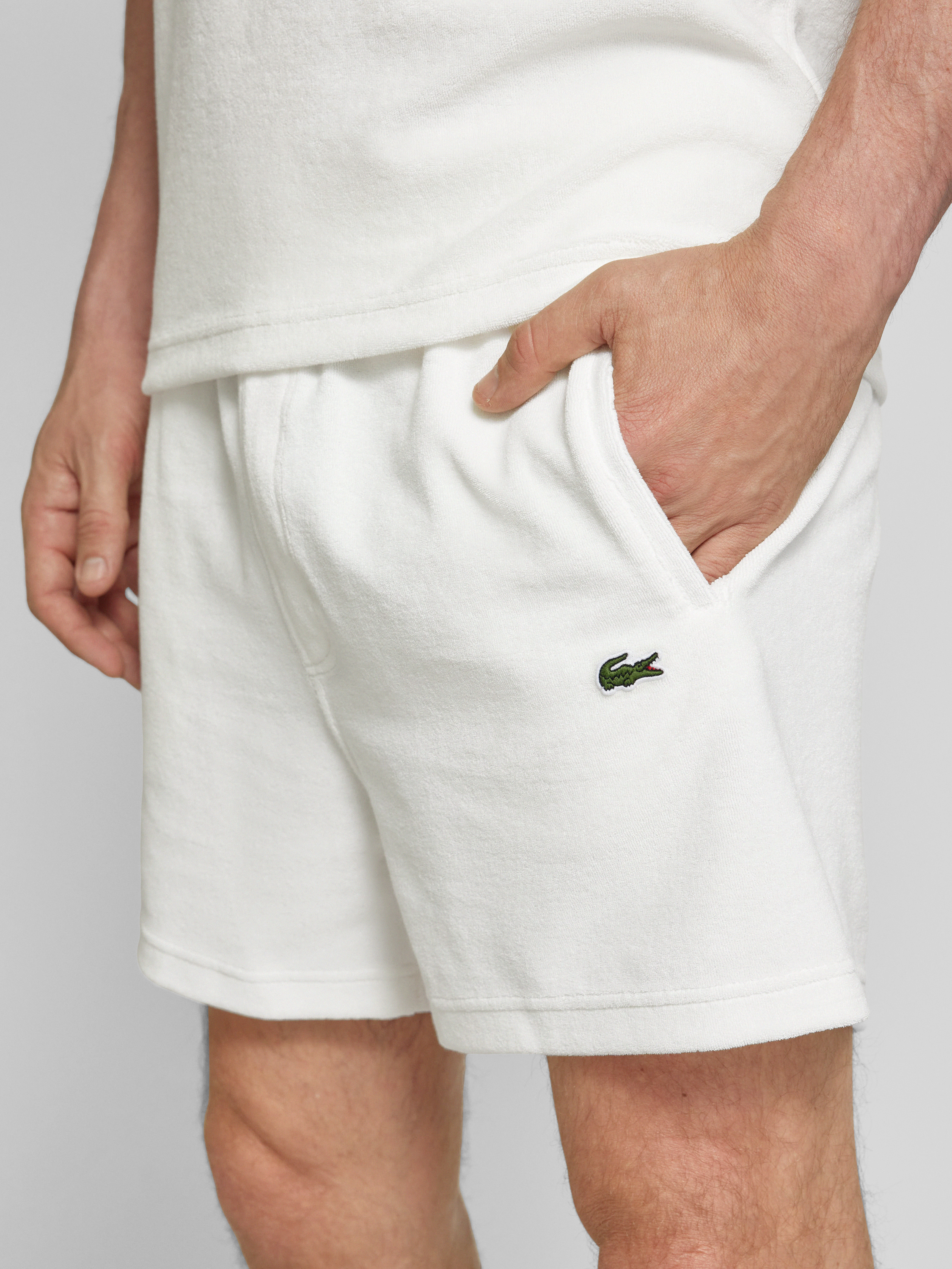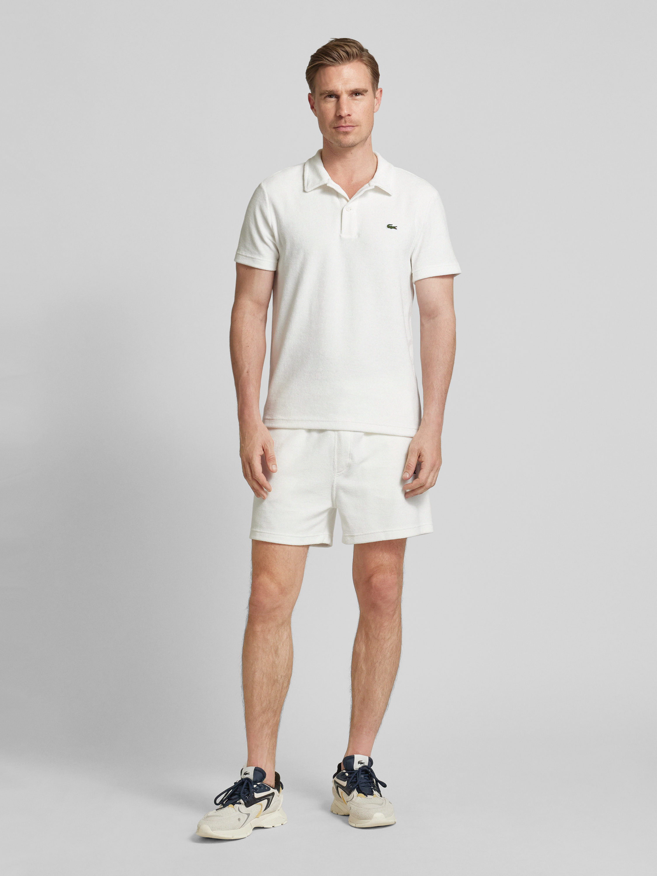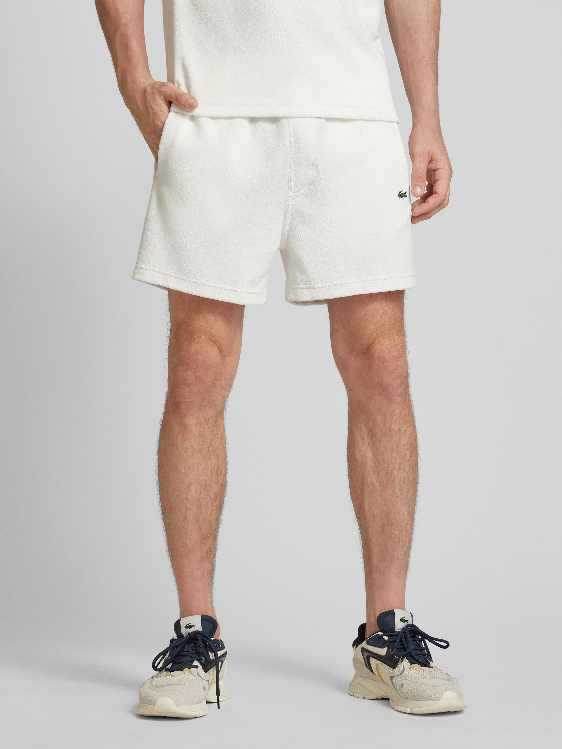 Die Regular Fit Shorts von LACOSTE kombinieren einen hochwertigen Baumwoll-Mix mit einer bequemen Passform. Das Strukturmuster verleiht den Shorts eine ansprechende Optik, während der elastische Bund für zusätzlichen Tragekomfort sorgt. Ideal für entspannte Anlässe und vielseitig kombinierbar.