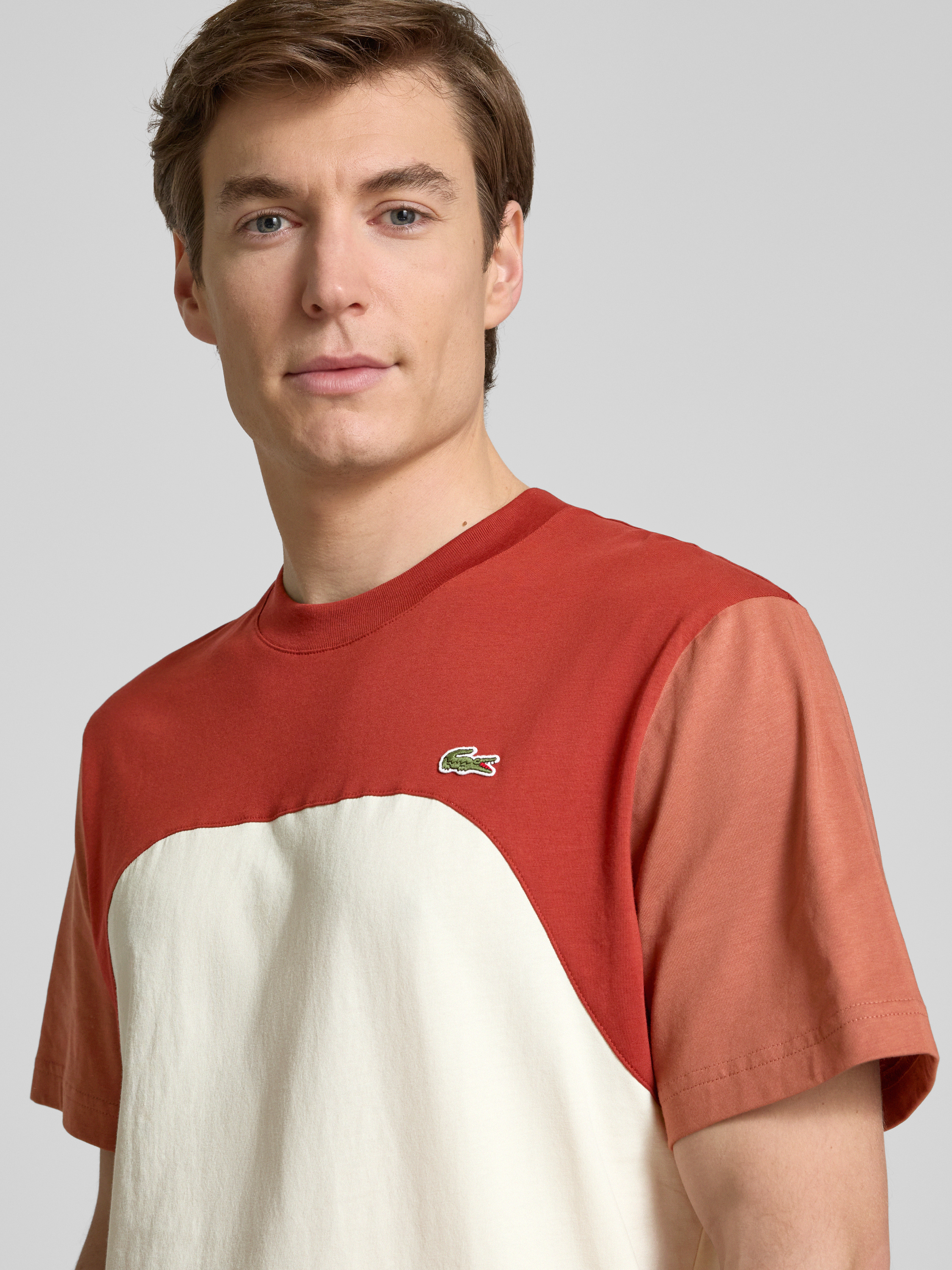 Das Herren T-Shirt von LACOSTE aus reiner Baumwolle überzeugt durch seinen geraden Schnitt und den klassischen Rundhalsausschnitt. Das dezente Label-Stitching verleiht ihm eine besondere Note. Mit seiner angenehmen Passform eignet es sich ideal für den Alltag und sorgt für ein komfortables Tragegefühl.