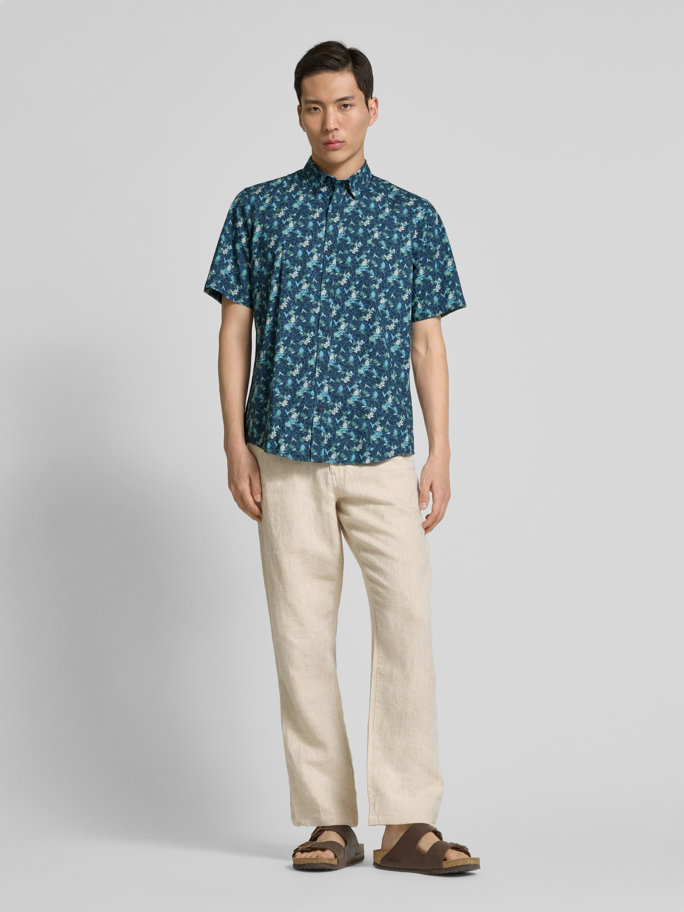 Das Herren Freizeithemd von LERROS, Modell 'CONCEALLED', aus reiner Baumwolle, bietet im Regular Fit eine angenehme Passform. Der Kentkragen und das kurzärmlige Design schaffen einen entspannten Look, der sich ideal für warme Tage eignet. Der dezente Motiv-Print rundet das Gesamtbild harmonisch ab.