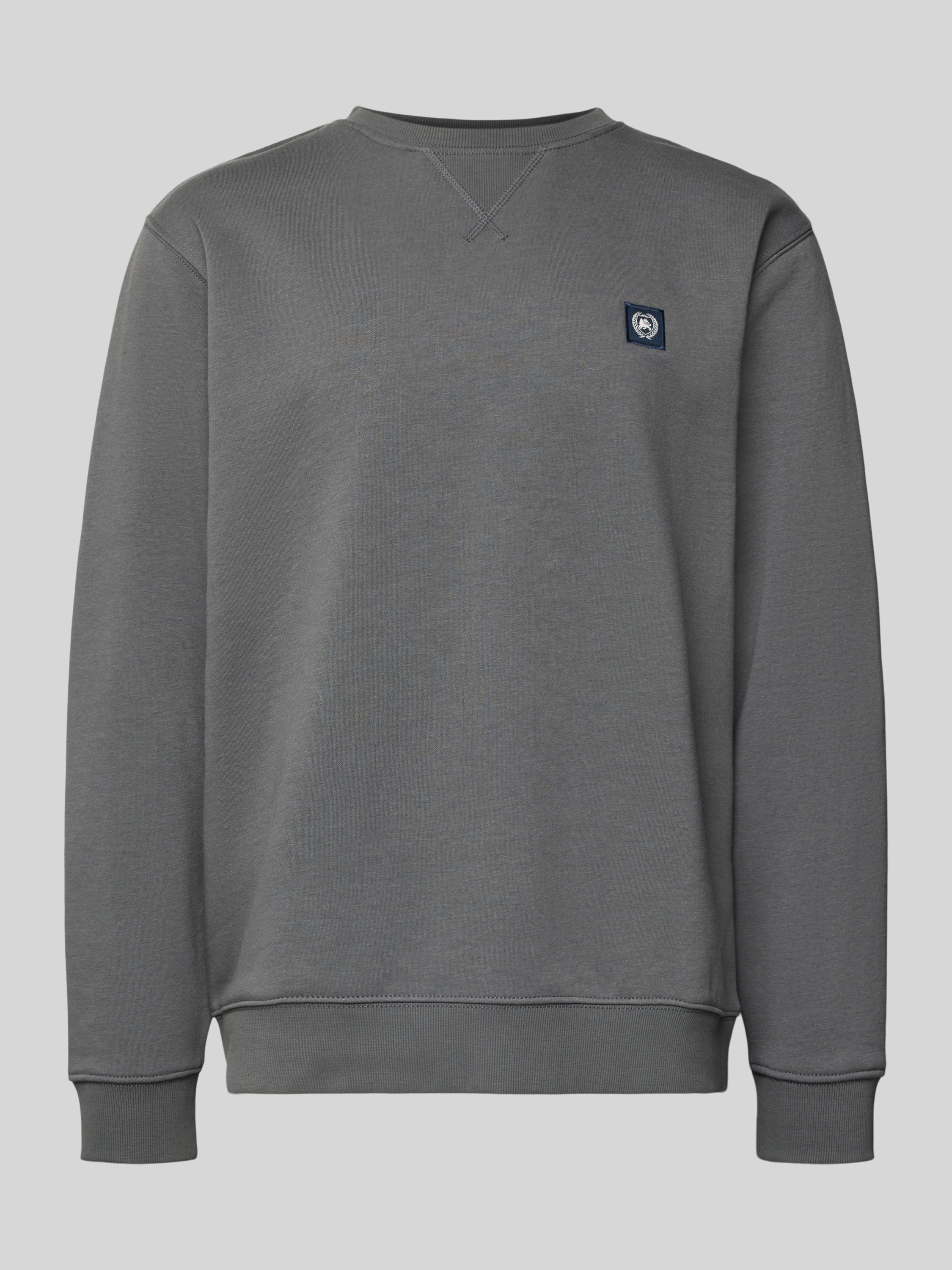 LerrosSweatshirt mit Rundhalsausschnitt und Label-Patch in dunkelgrau