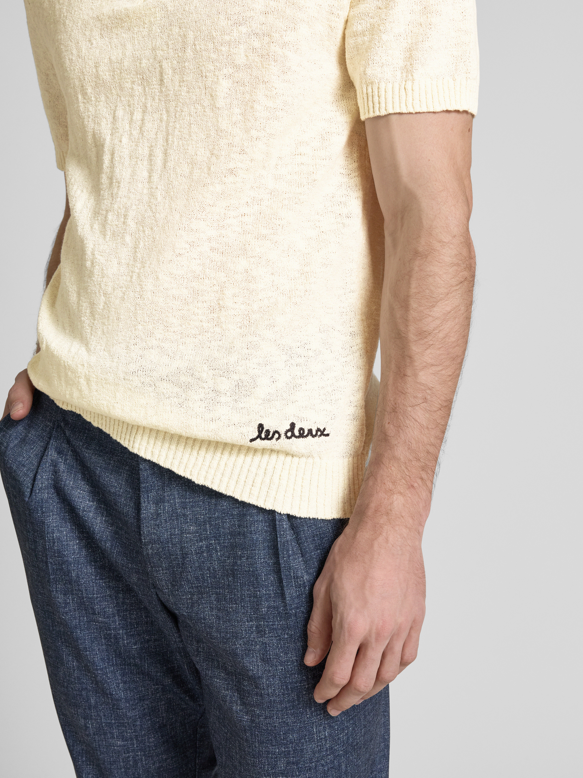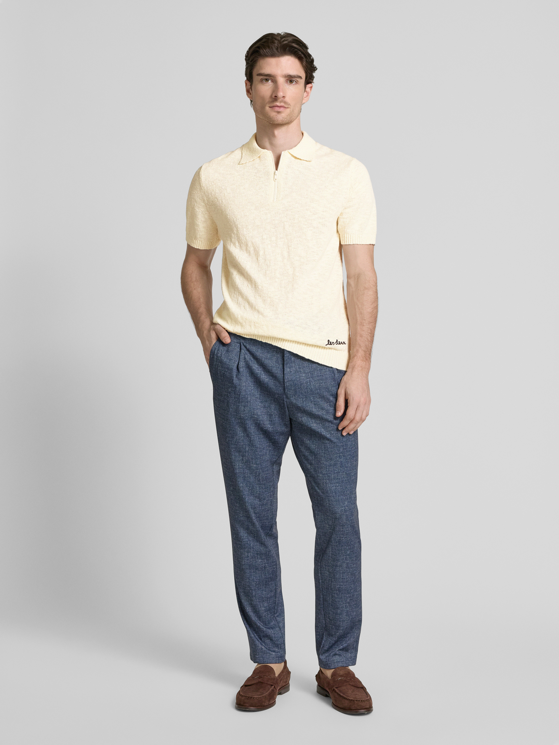 Das Poloshirt mit Strick-Optik von Les Deux kombiniert einen klassischen Polokragen mit einem modernen Baumwoll-Mix, der für ein angenehmes Tragegefühl sorgt. Der Regular Fit bietet eine bequeme Passform, während die gerippten Abschlüsse und das dezente Label-Stitching den Look abrunden. Ideal für einen stilvollen und entspannten Auftritt.