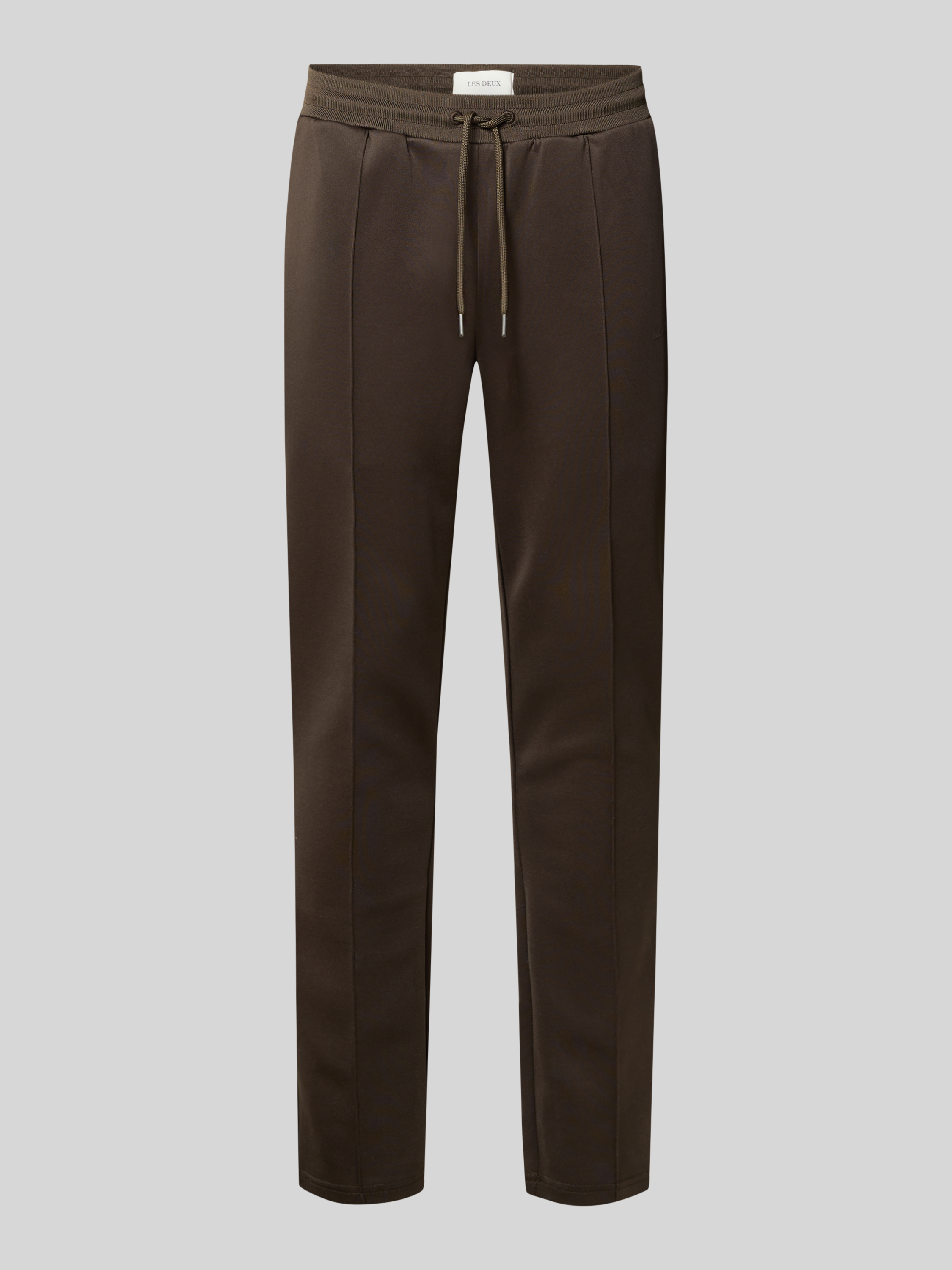 Die Herren Slim Fit Sweatpants von Les Deux verbinden einen schmalen Schnitt mit fixierten Bügelfalten, wodurch ein gepflegter Eindruck entsteht. Durch den Material-Mix mit Stretch-Anteil passt sich das Modell angenehm an verschiedene Bewegungen an. Ein elastischer Bund mit Tunnelzug sorgt für zusätzlichen Tragekomfort.