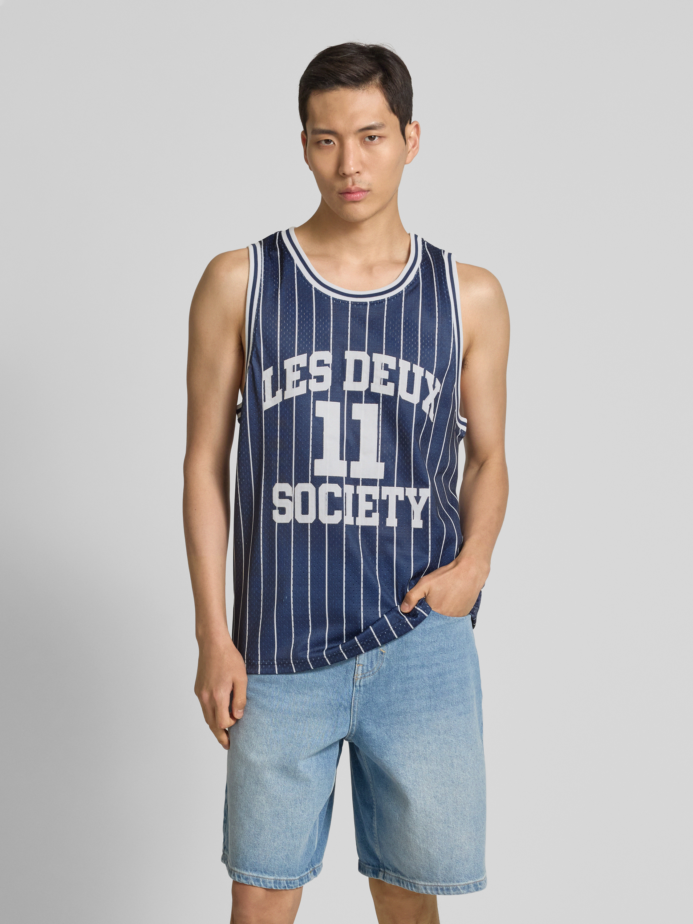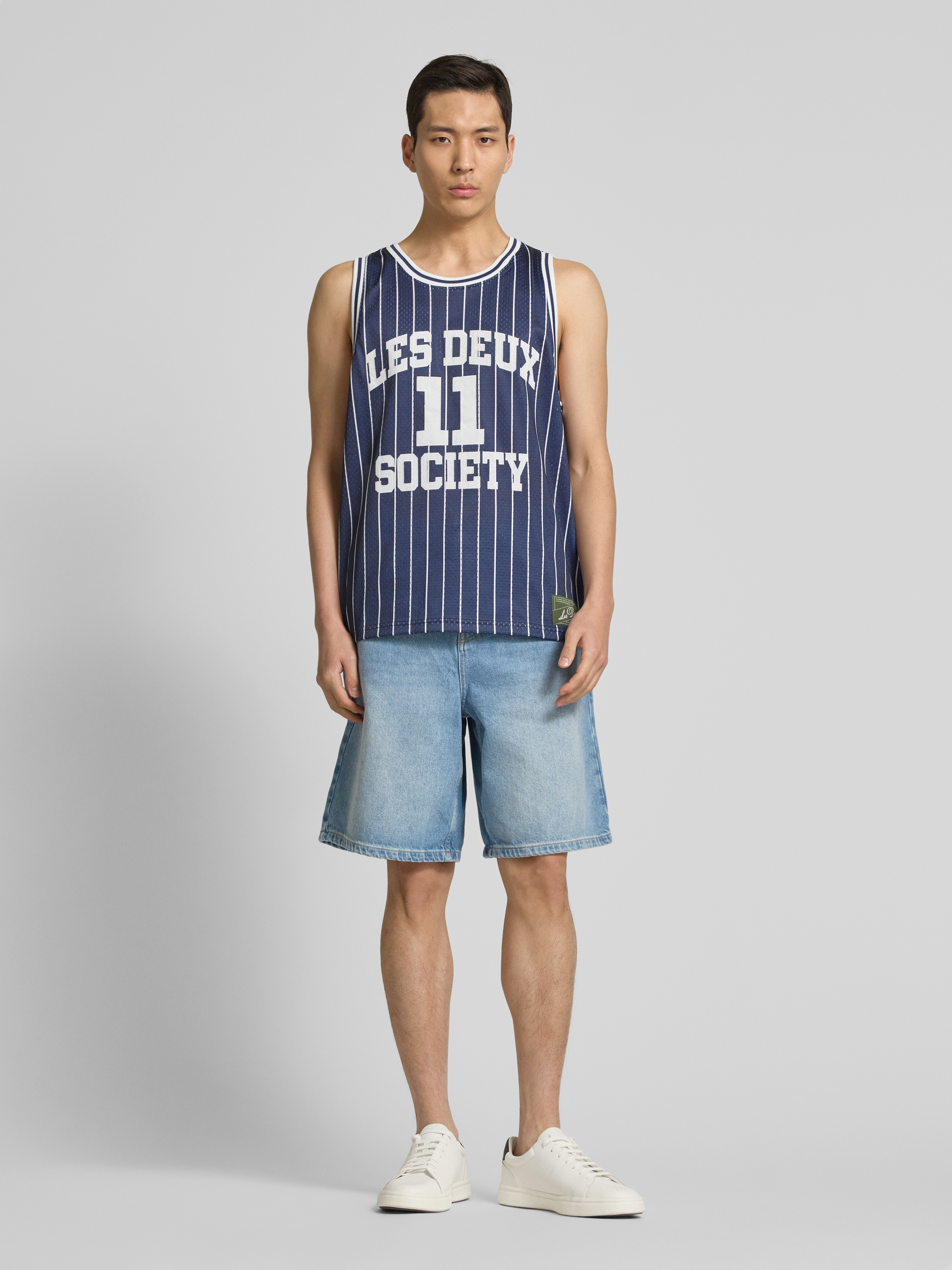 Les DeuxTanktop mit Label-Print Modell 'Silas' in dunkelblau