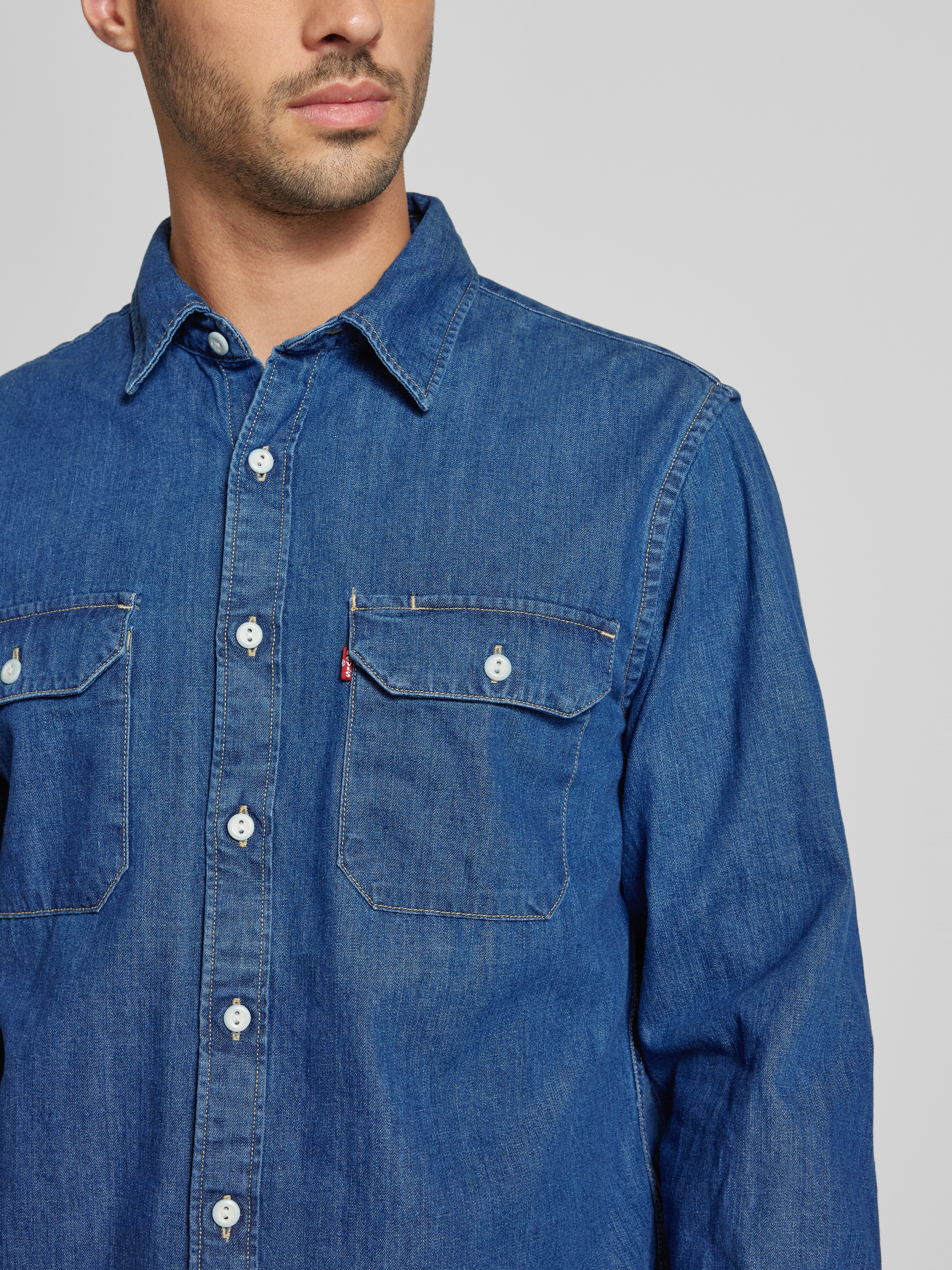 Das Levi's® Jeanshemd aus reiner Baumwolle bietet durch seinen Regular Fit eine bequeme Passform und punktet mit einem klassischen Kentkragen. Mit praktischen Brusttaschen und einem unifarbenen Design erweist es sich als vielseitig kombinierbares Kleidungsstück für den Alltag.