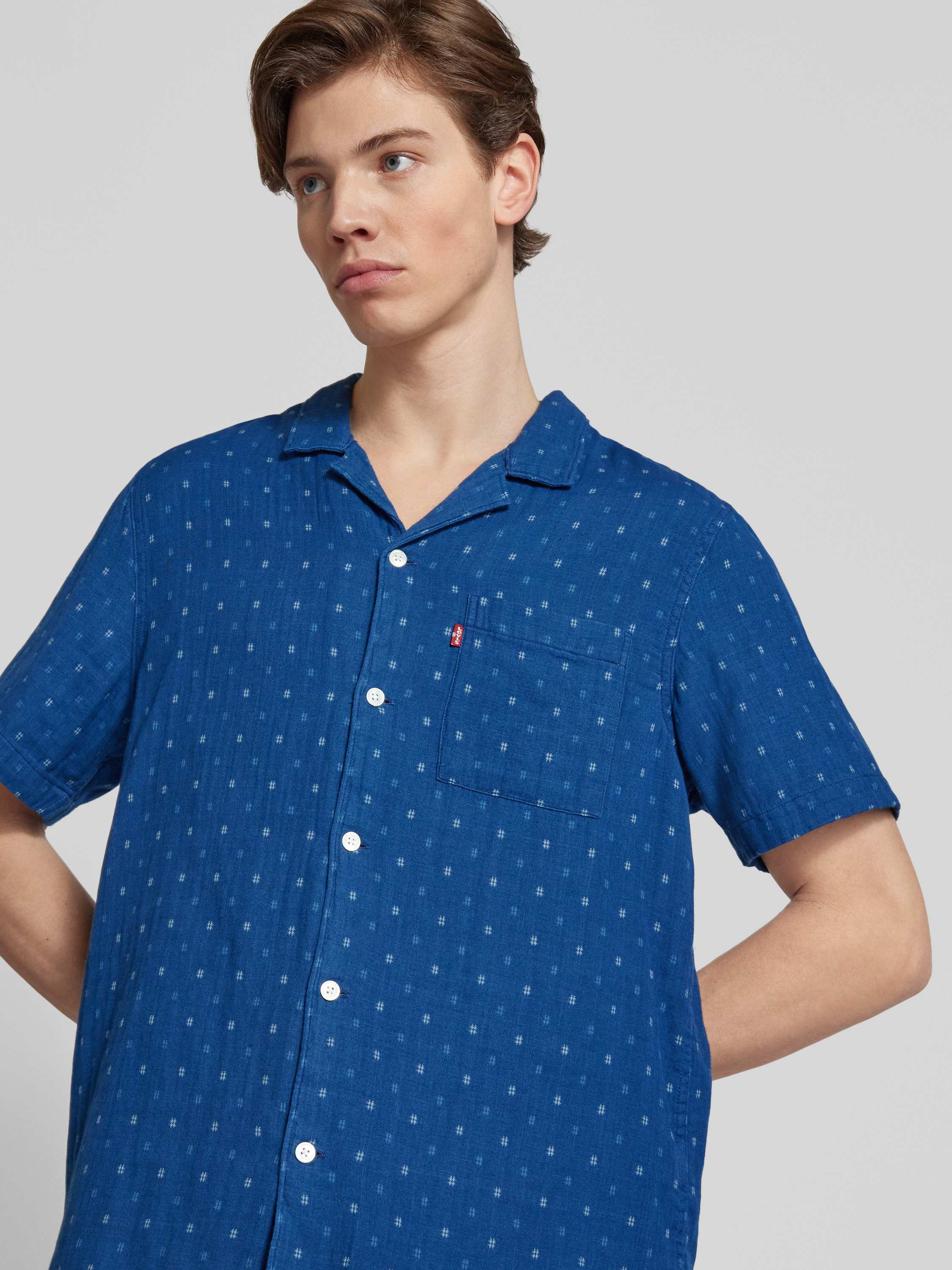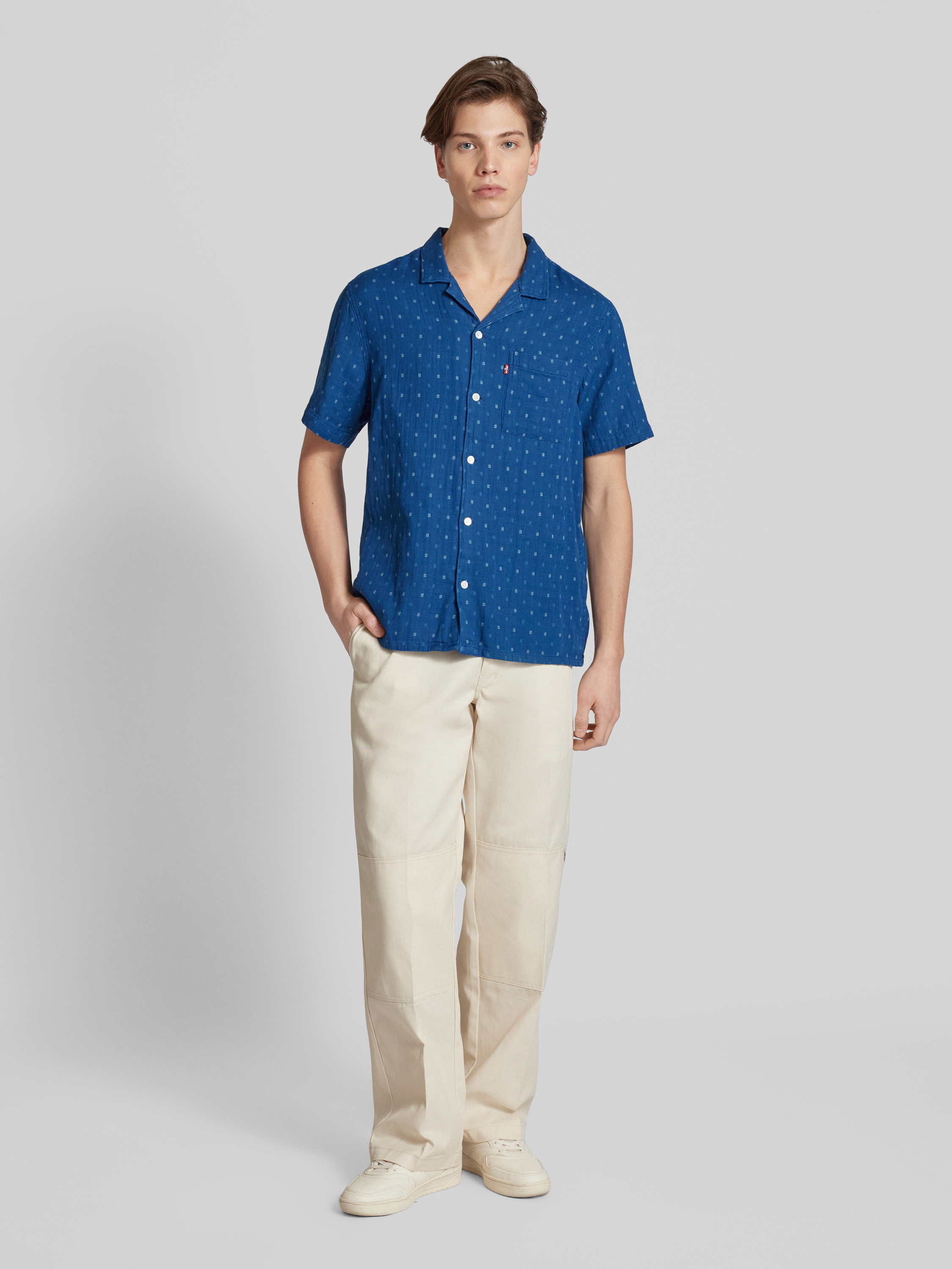 Das Herrenhemd 'THE SUNSET CAMP' von Levi's® kombiniert lässigen Komfort mit stilvollem Design. Gefertigt aus reiner Baumwolle, sorgt der Relaxed Fit für eine angenehme Passform. Der Reverskragen und das Allover-Muster verleihen dem Hemd eine moderne Note, während die Brusttasche funktional bleibt.