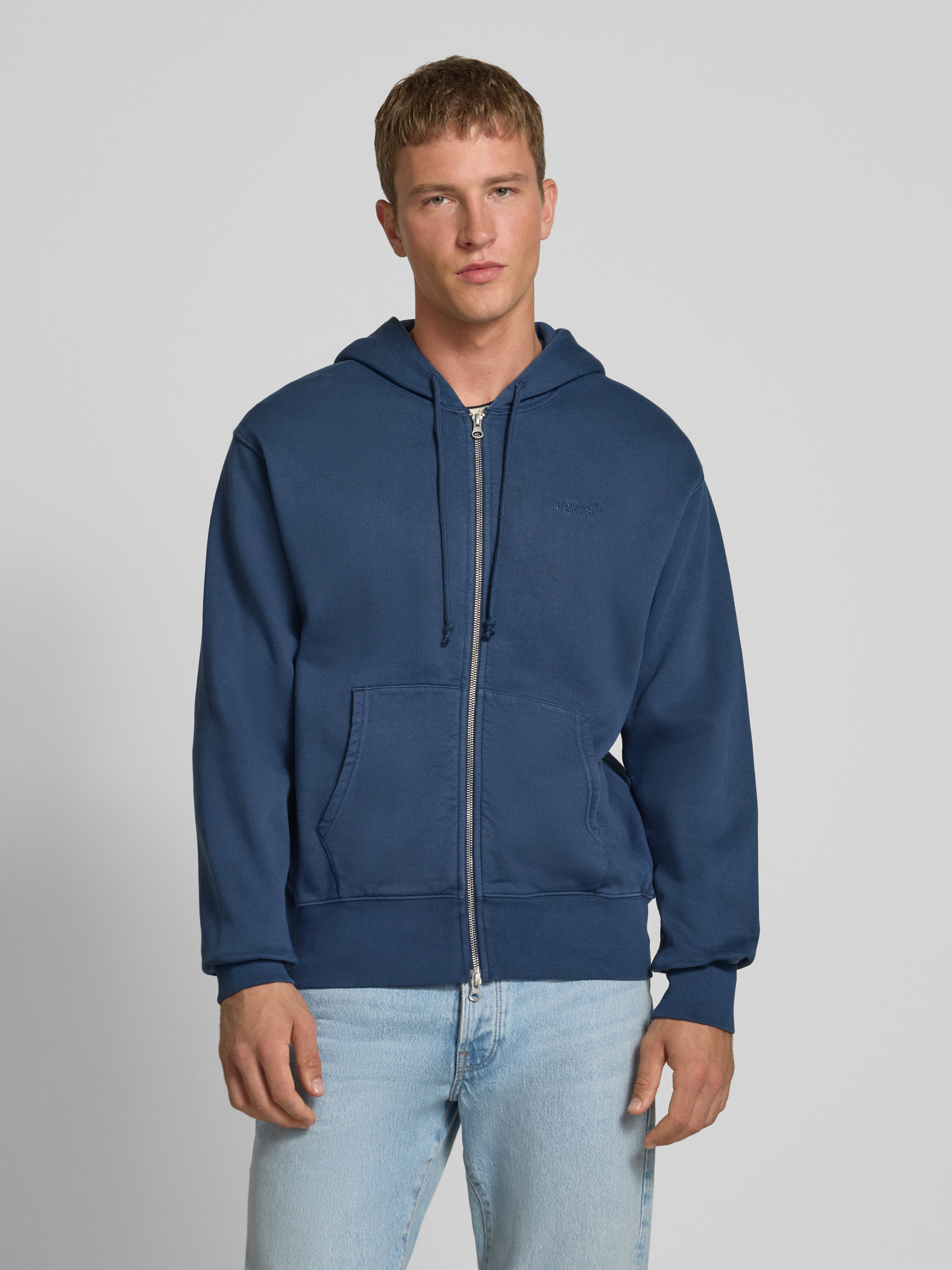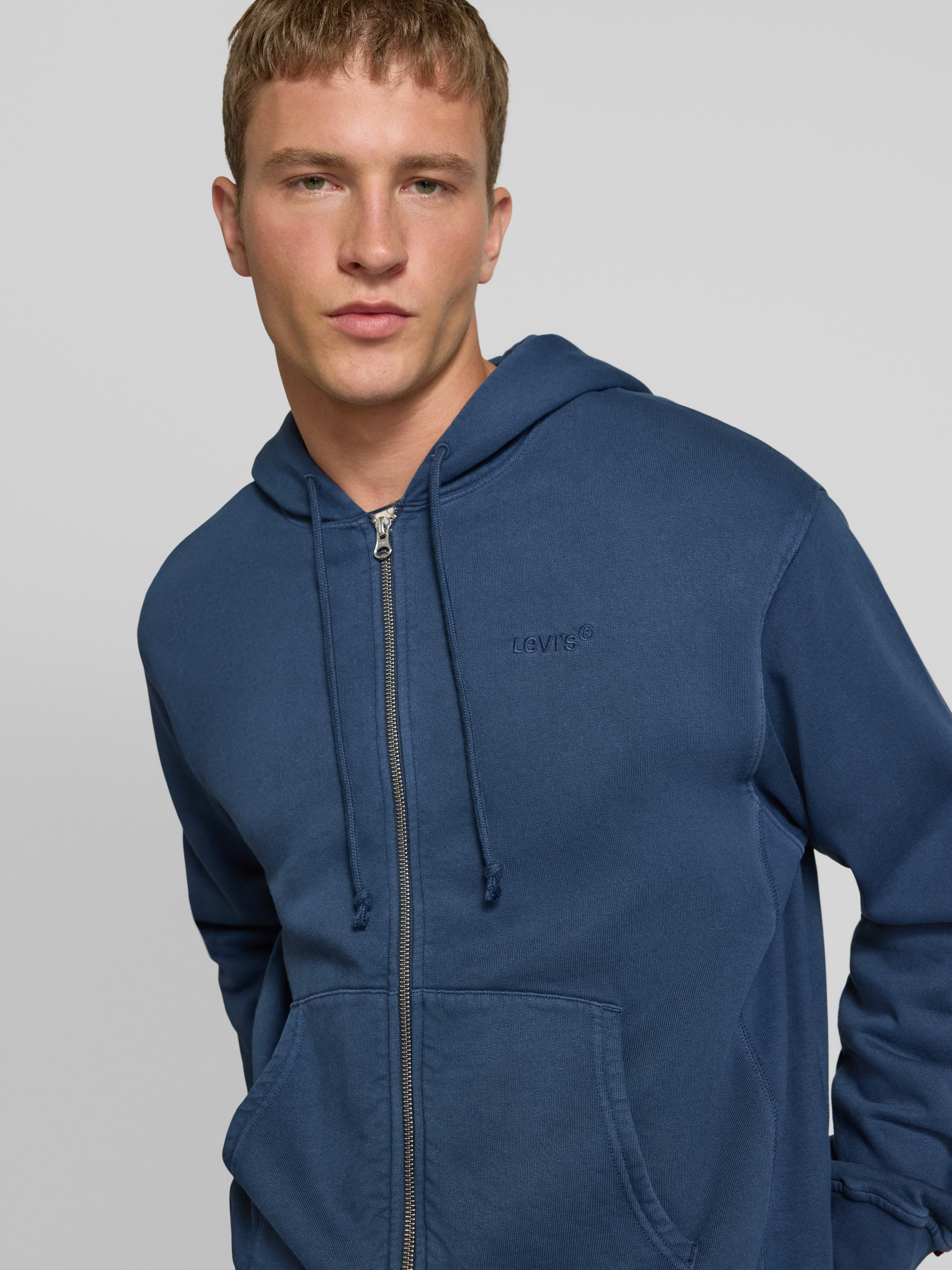 Die Herren Sweatjacke von Levi's® aus reiner Baumwolle bietet mit ihrem lockeren Schnitt und den gerippten Abschlüssen ein angenehmes Tragegefühl. Die Kapuze mit Tunnelzug sorgt für zusätzlichen Komfort, während die praktischen Eingrifftaschen Platz für kleinere Gegenstände bieten. Ideal für entspannte Tage.