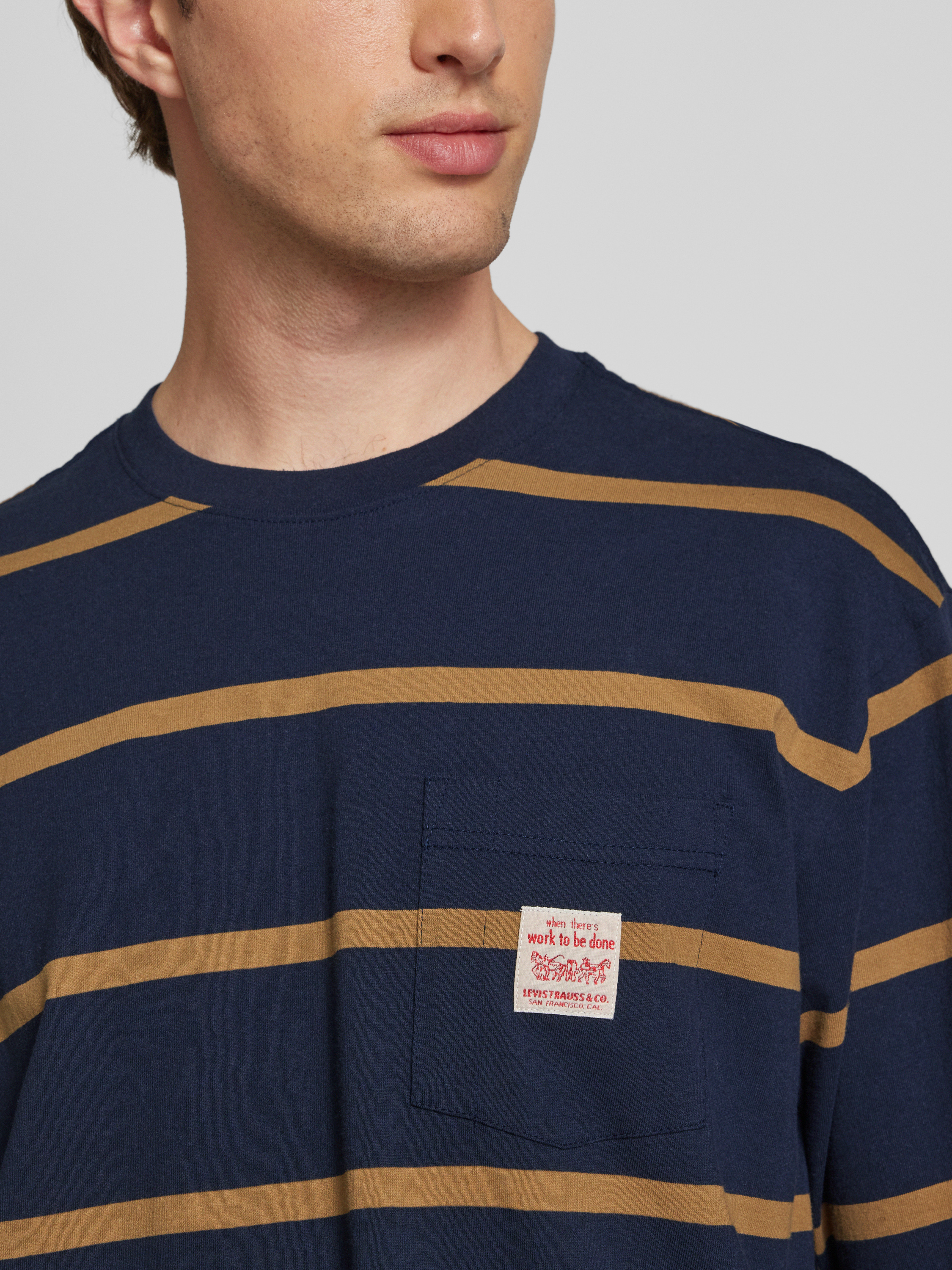 Das Herren T-Shirt von Levi's® aus reiner Baumwolle bietet dank seines lockeren Schnitts und des Rundhalsausschnitts ein angenehmes Tragegefühl. Die praktische Brusttasche verleiht dem Design eine funktionale Note, während das dezente Label-Detail subtilen Stil hinzufügt. Ideal für vielseitige, entspannte Outfits.
