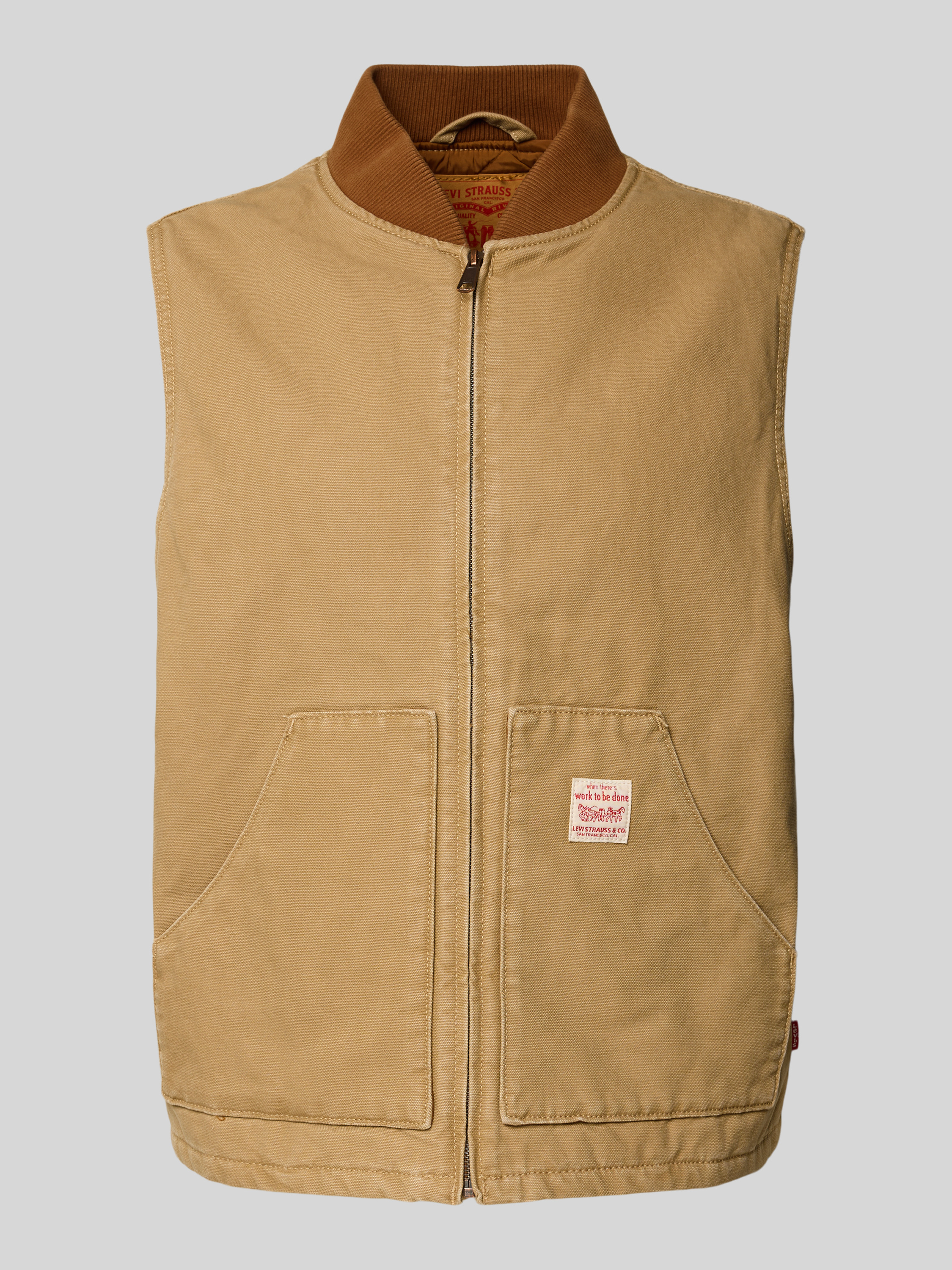 Die Levi's® Weste mit Stehkragen Modell 'SANSOME' zeichnet sich durch reine Baumwolle und einen angenehm geraden Schnitt aus, wodurch sie vielseitig kombinierbar bleibt. Durch die klare Linienführung entsteht ein zeitloses Gesamtbild, das sich unkompliziert in verschiedene Outfits einfügt. Dank praktischer Eingrifftaschen gelingt es, Kleinigkeiten griffbereit unterzubringen.