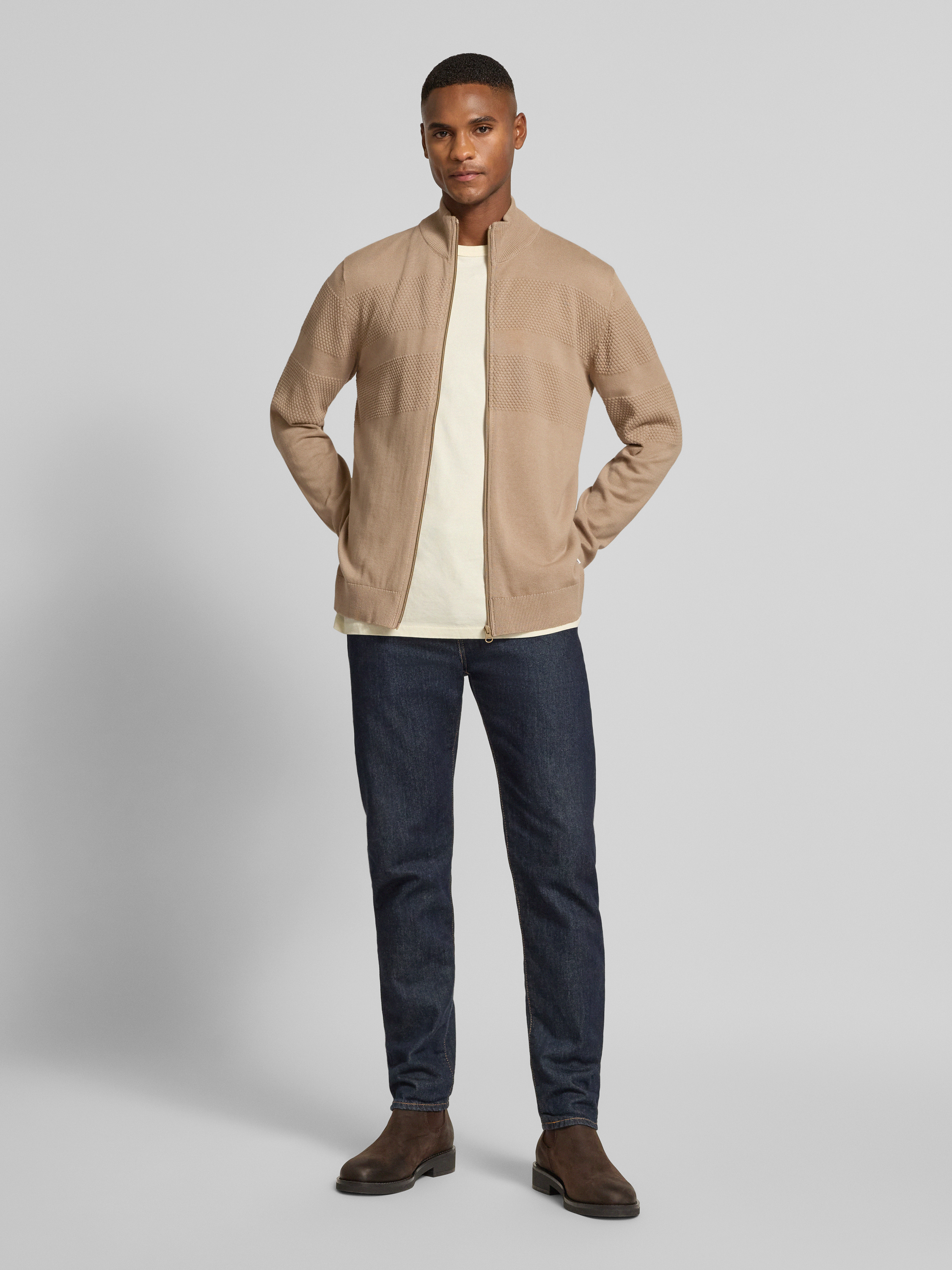Der Herren Cardigan von Lindbergh zeichnet sich durch reine Baumwolle aus, was für ein angenehmes Tragegefühl im Alltag sorgt. Der Regular Fit und der Stehkragen schaffen eine unkomplizierte, moderne Silhouette, die sich vielseitig kombinieren lässt. Dank des Reißverschlusses gestaltet sich das An- und Ausziehen besonders praktisch.