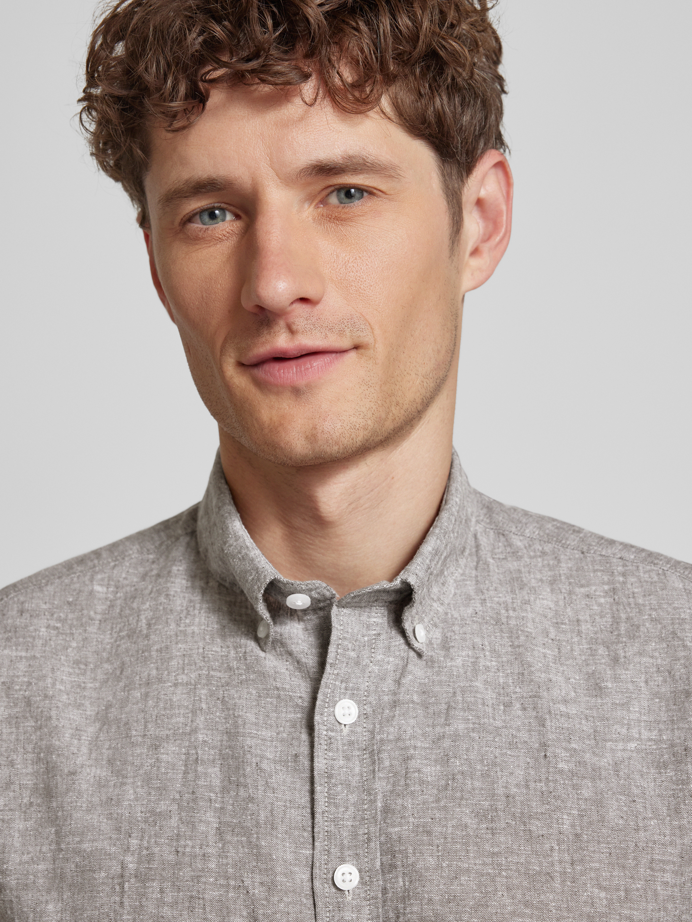 LindberghRegular Fit Freizeithemd aus Leinen-Baumwoll-Mix in mittelbraun