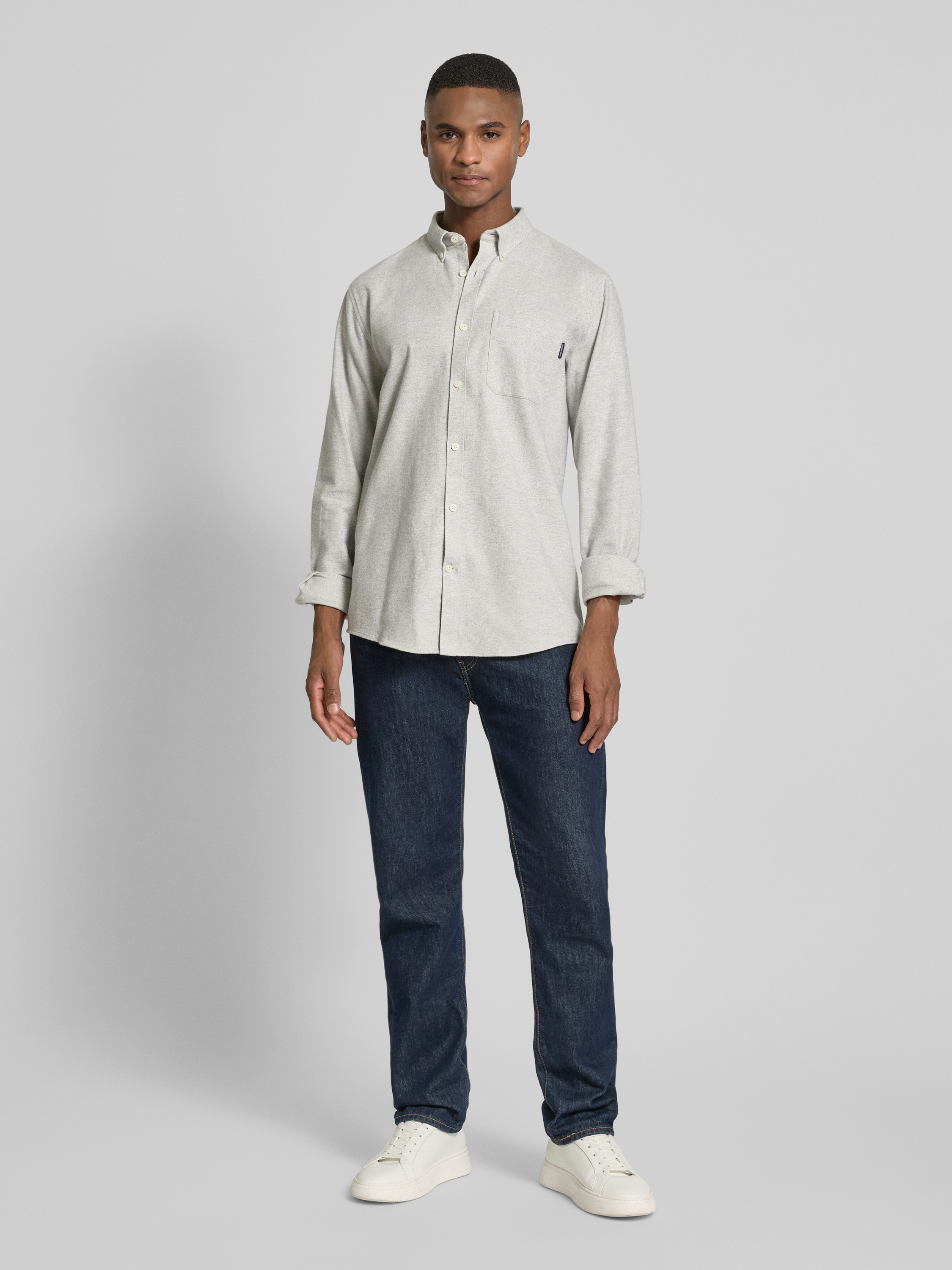 LindberghSlim Fit Freizeithemd mit Brusttasche Modell 'Brushed' in hellgrau