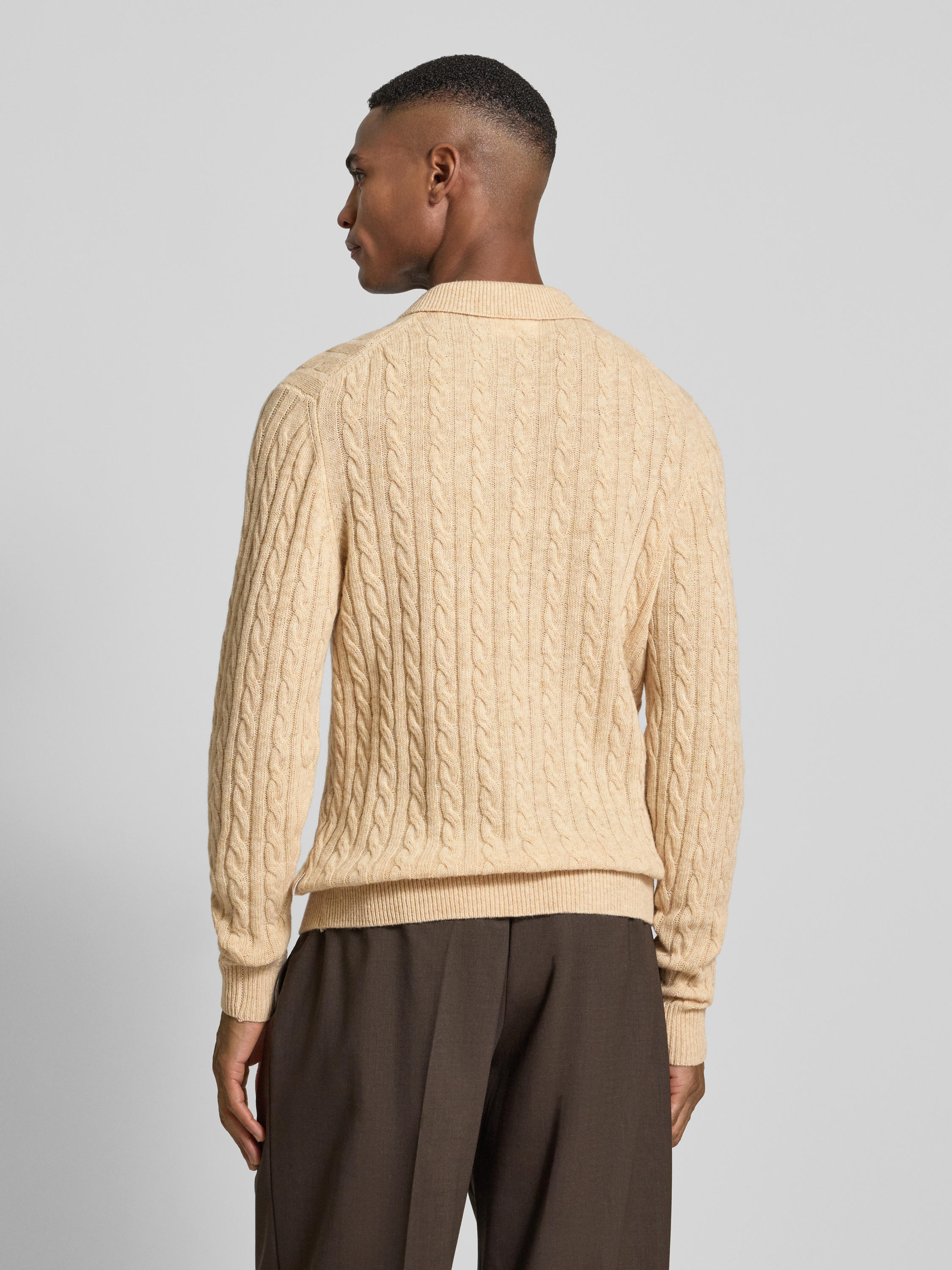 Der Herren Strickpullover von Lindbergh im Slim Fit sitzt angenehm körpernah und erhält durch das markante Zopfmuster eine klassische Note. Der leichte Leinen-Mix sorgt an wärmeren Tagen für ein angenehmes Tragegefühl und unterstützt ein luftiges Hautklima. Durch den Polokragen mit Knopfleiste lässt sich das Modell unkompliziert kombinieren und rundet verschiedenste Outfits harmonisch ab.