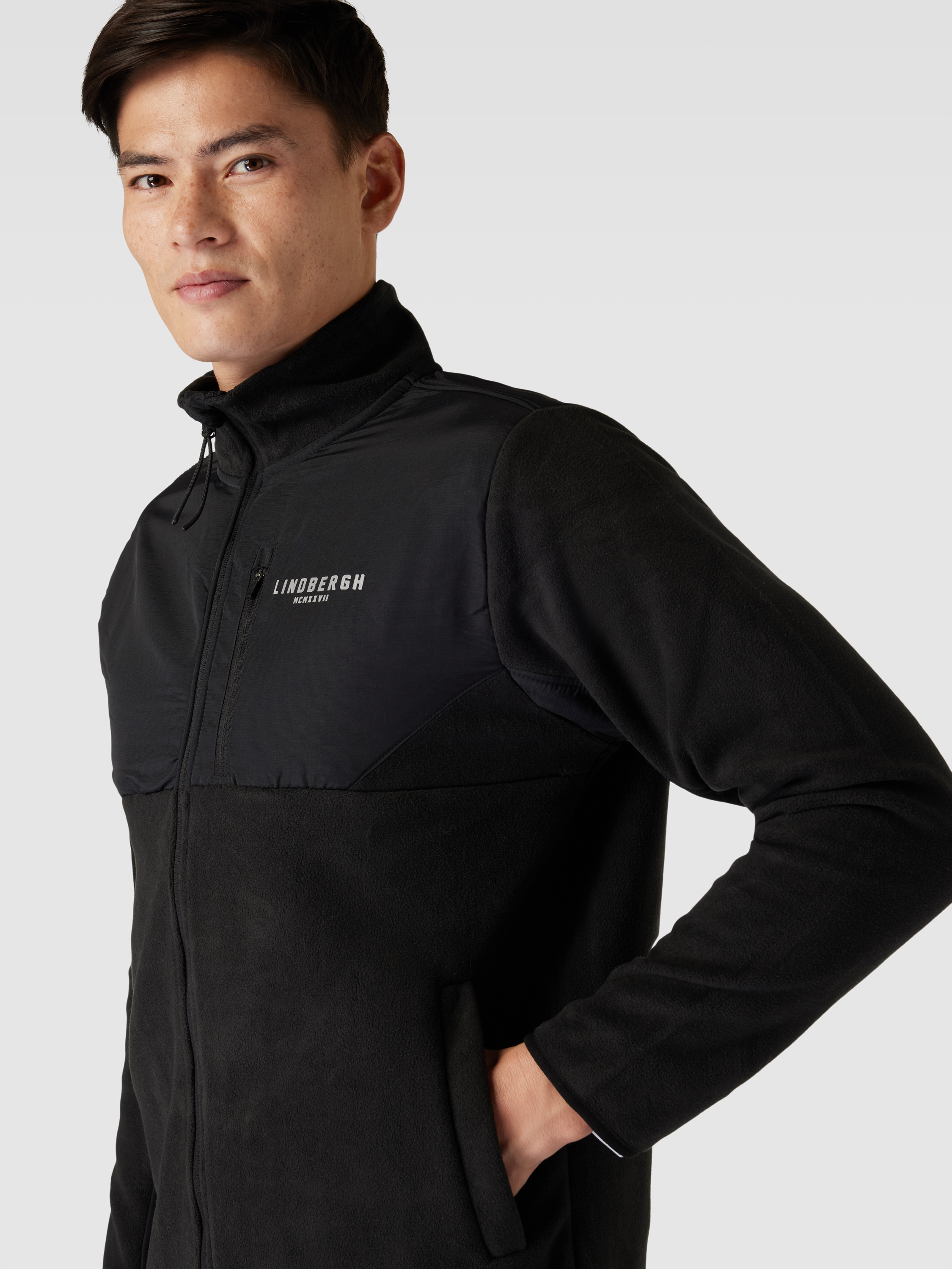 Die Lindbergh Sweatjacke punktet mit einem Regular Fit, der Bewegungsfreiheit gewährt, und einem praktischen Stehkragen, der dezenten Schutz bietet. Das unifarbene Design mit dezenten Label-Prints sorgt für einen lässigen Look, während Eingrifftaschen Funktionalität ermöglichen. Ideal für entspannte Alltagsmomente.