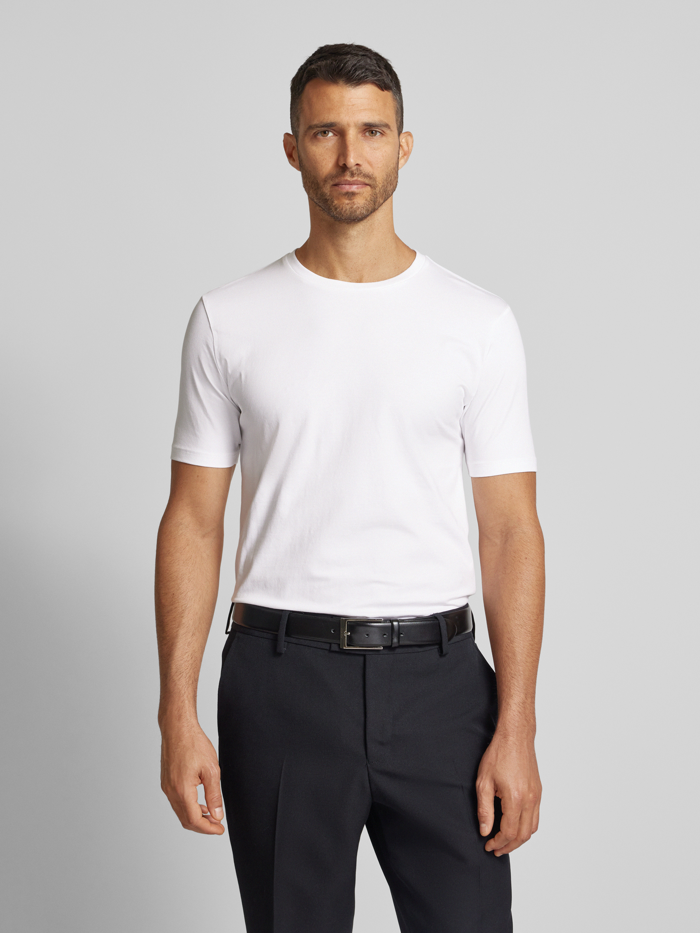T-Shirt mit geripptem Rundhalsausschnitt in offwhite