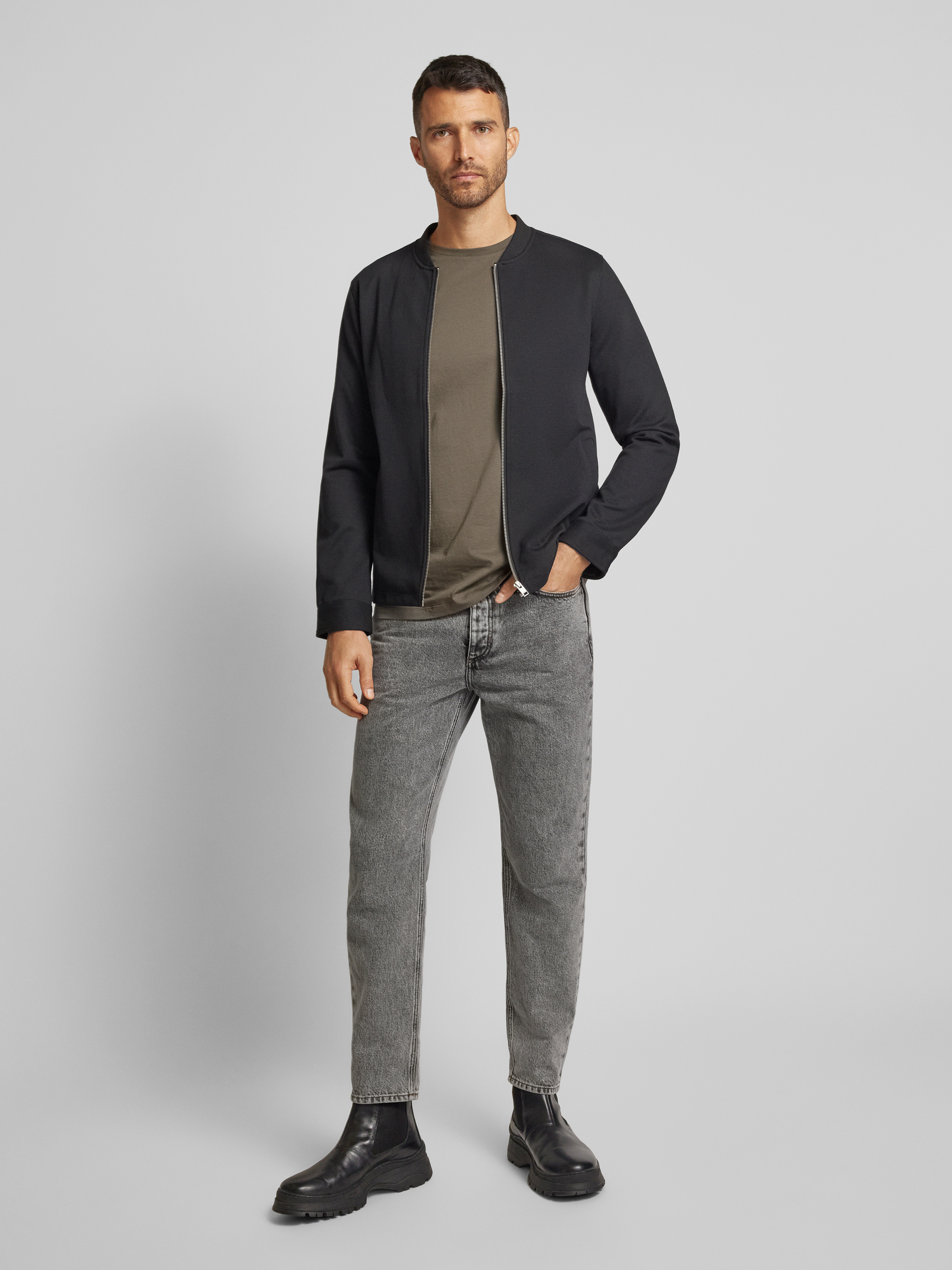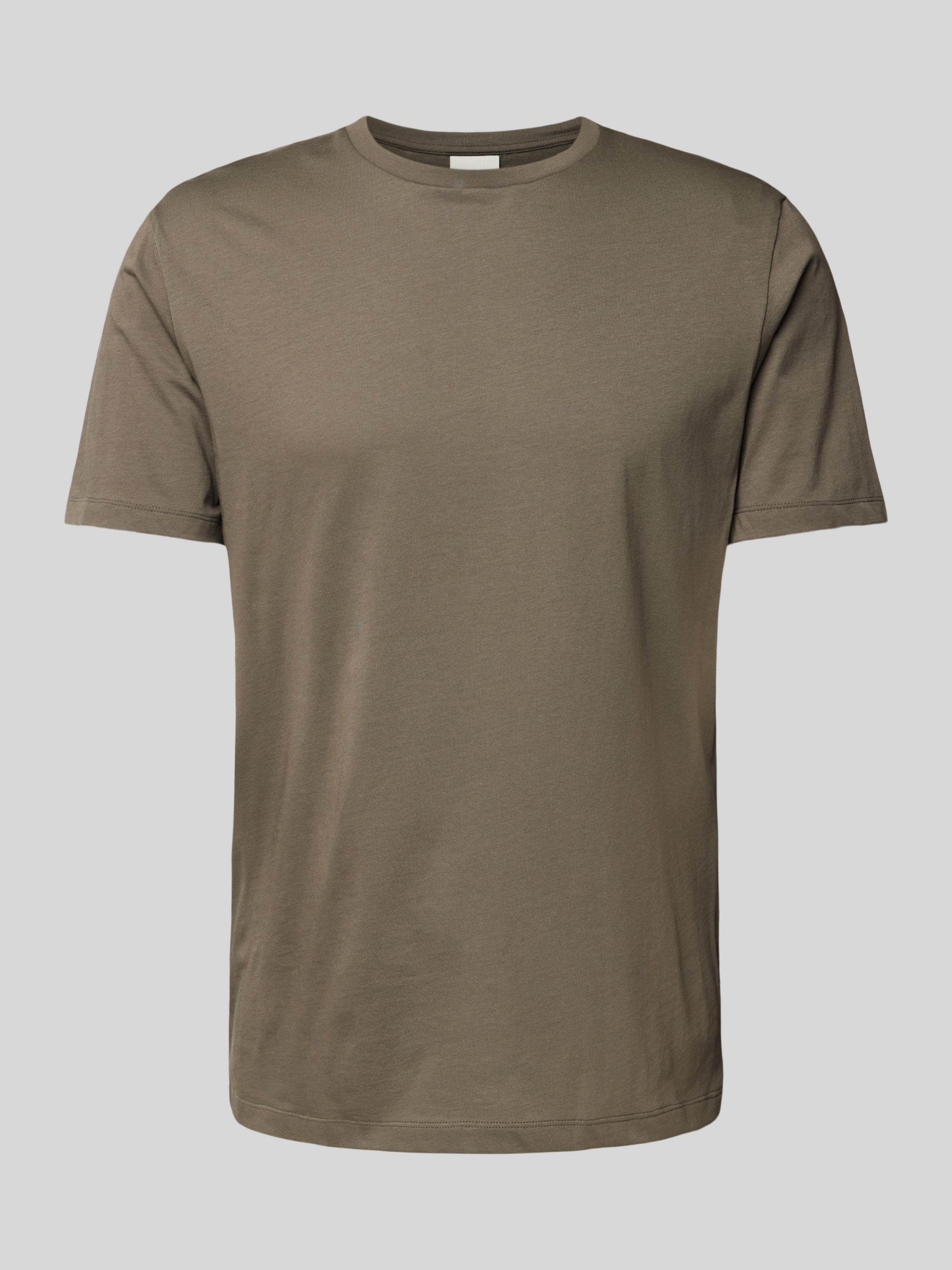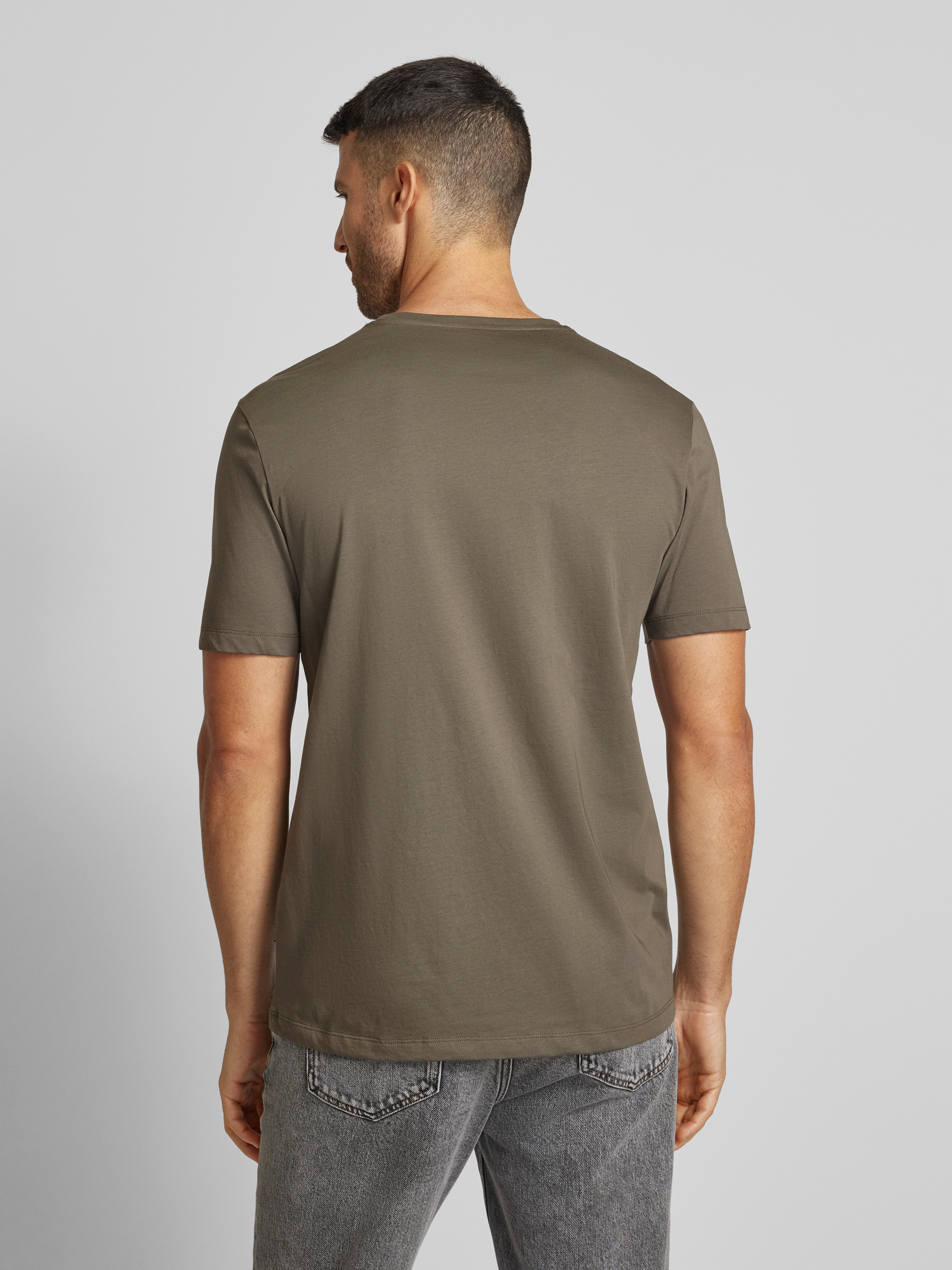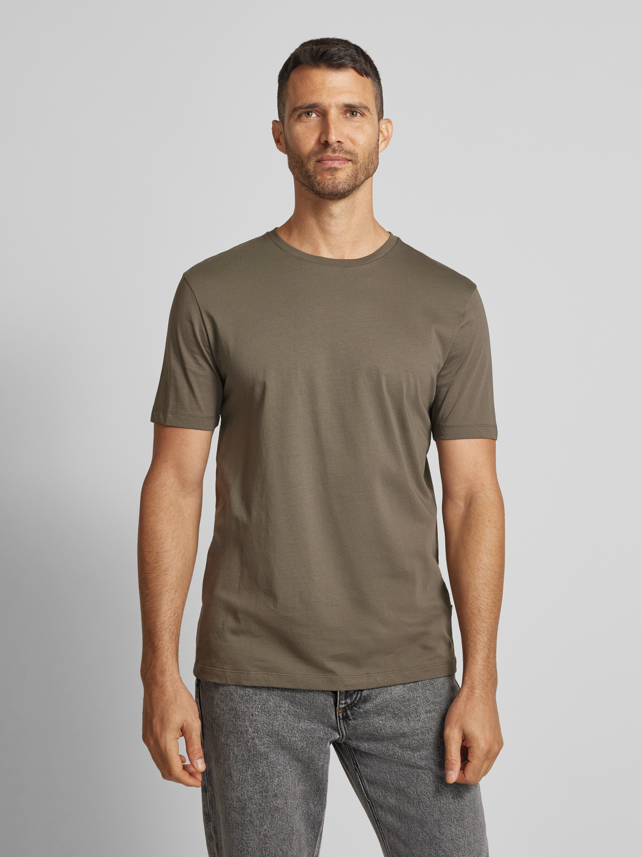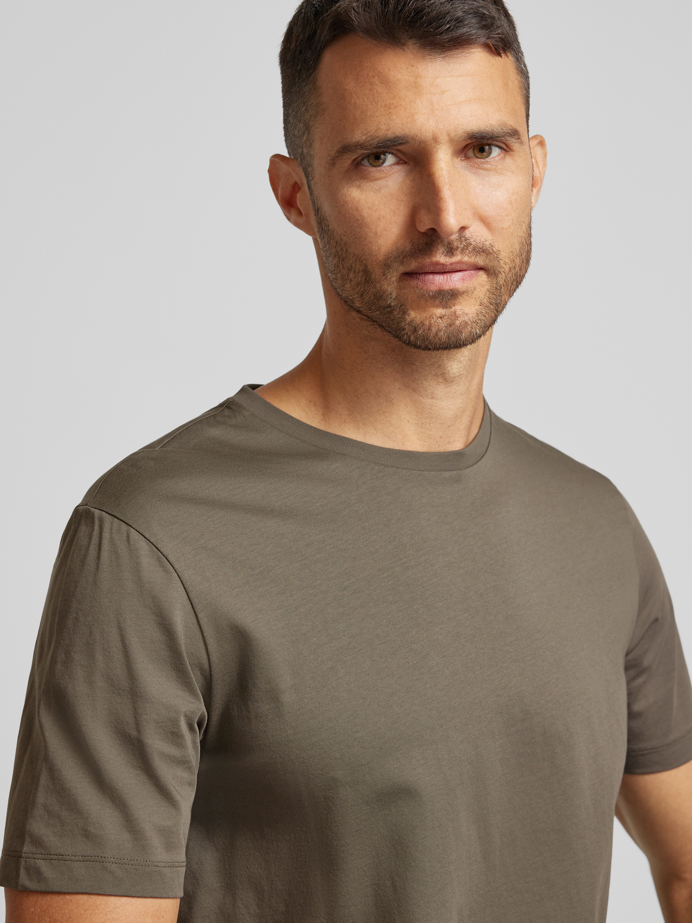 T-Shirt mit geripptem Rundhalsausschnitt in oliv