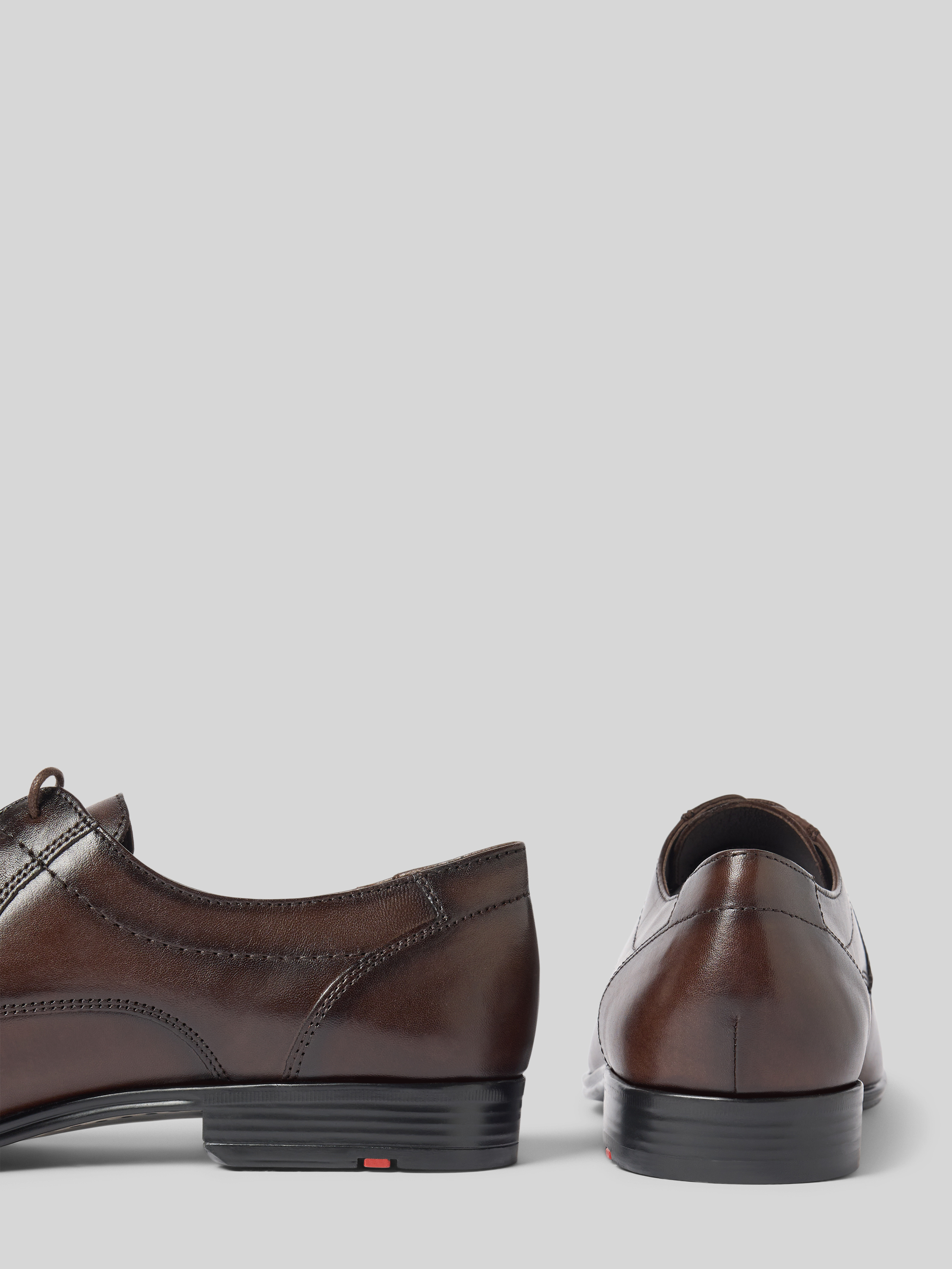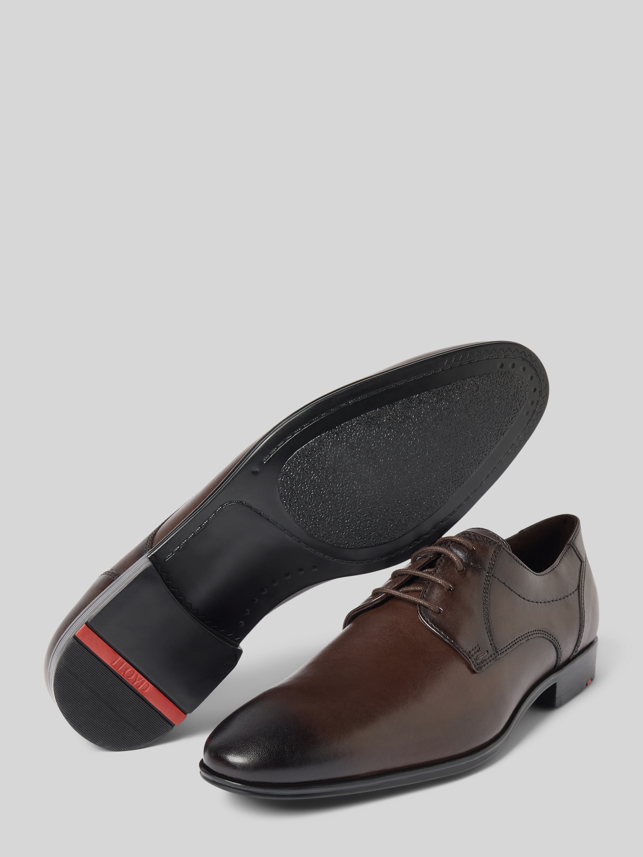 Der Herrenschuh Lederderby von Lloyd Modell 'CORE' präsentiert sich mit einer abgerundeten Form, die angenehm am Fuß liegt und vielseitig kombinierbar wirkt. Echtes Leder sorgt für einen wertigen Eindruck und unterstützt ein komfortables Tragegefühl über den Tag hinweg. Dezente Ziernähte und eine leicht strukturierte Sohle runden das Design unaufdringlich ab.