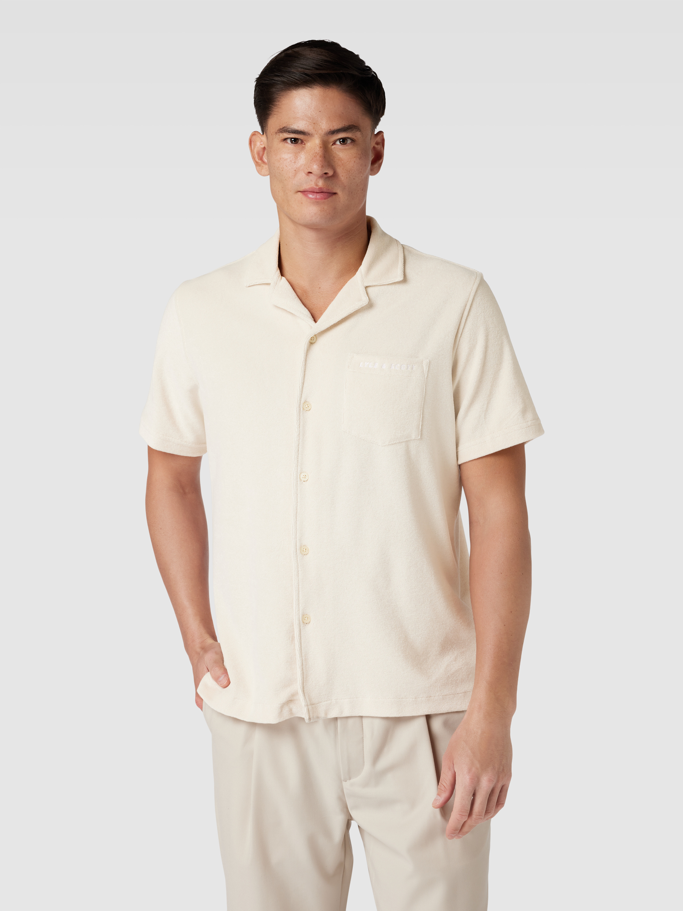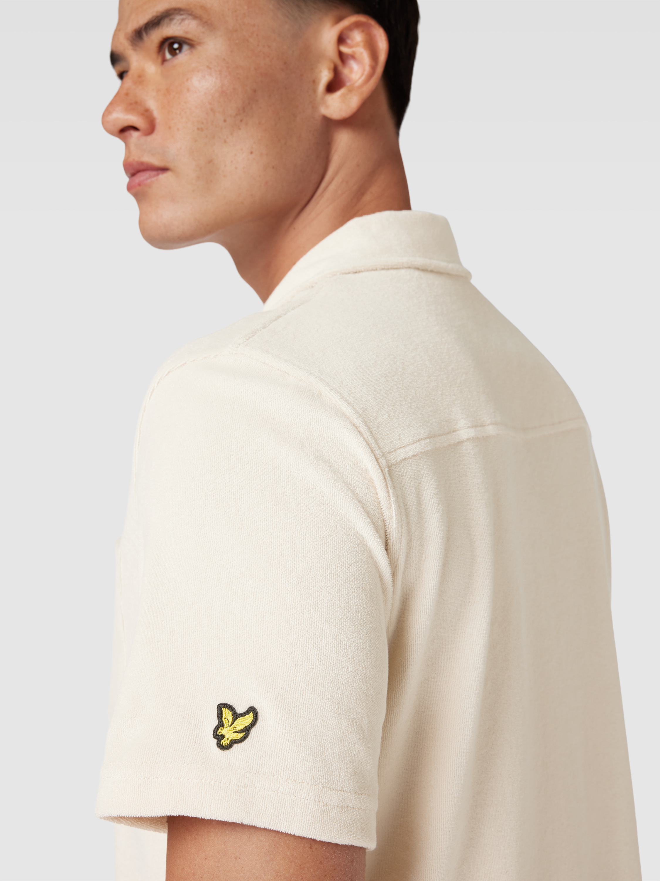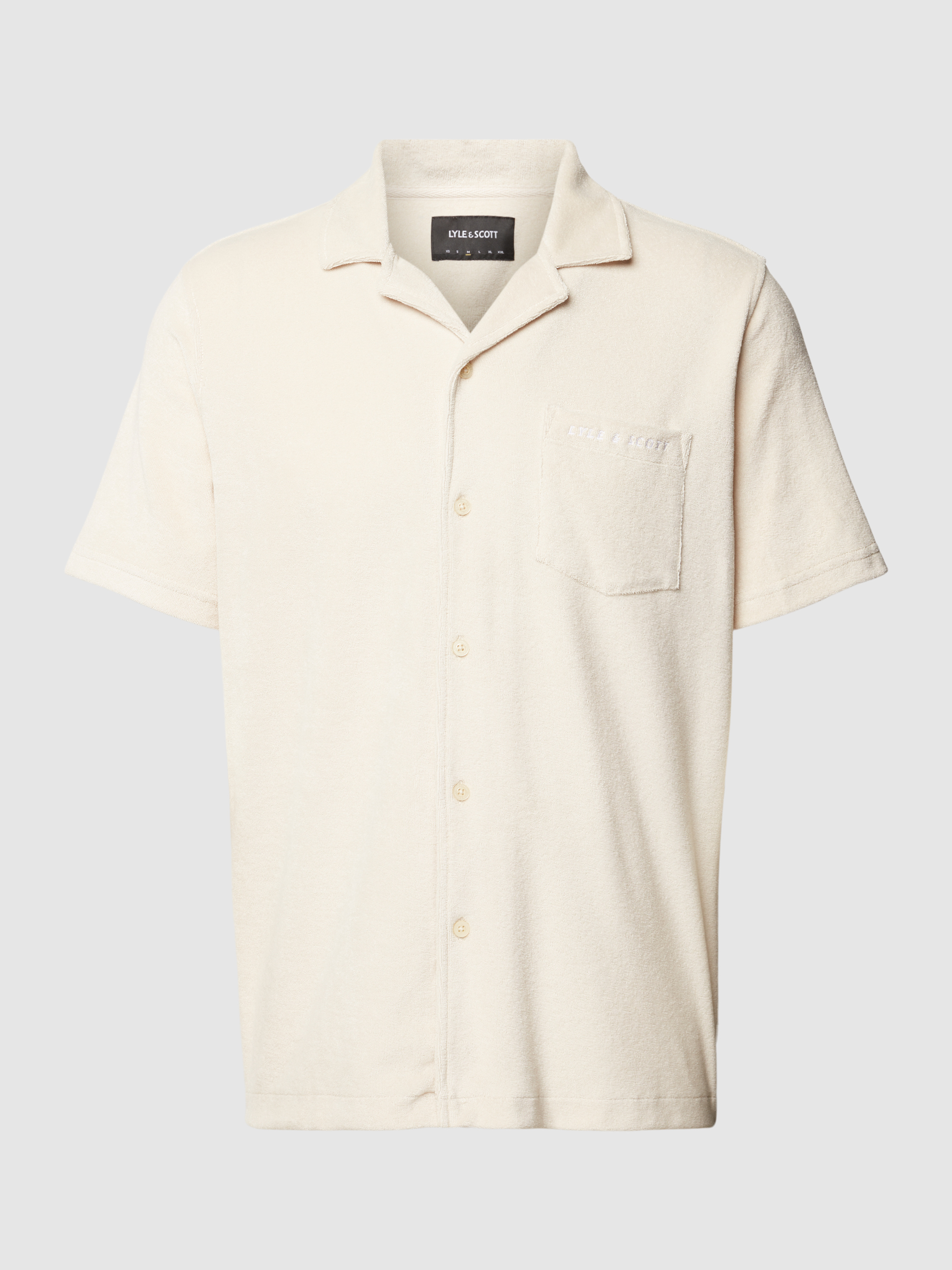 Das Herren Freizeithemd von Lyle & Scott, Modell 'Towelling Resort', beeindruckt durch seinen lässigen Regular Fit und den angenehmen Baumwoll-Mix. Der Reverskragen verleiht dem unifarbenen Design eine besondere Note, während die praktische Brusttasche dezenten Stauraum bietet. Ideal für entspannte Tage.